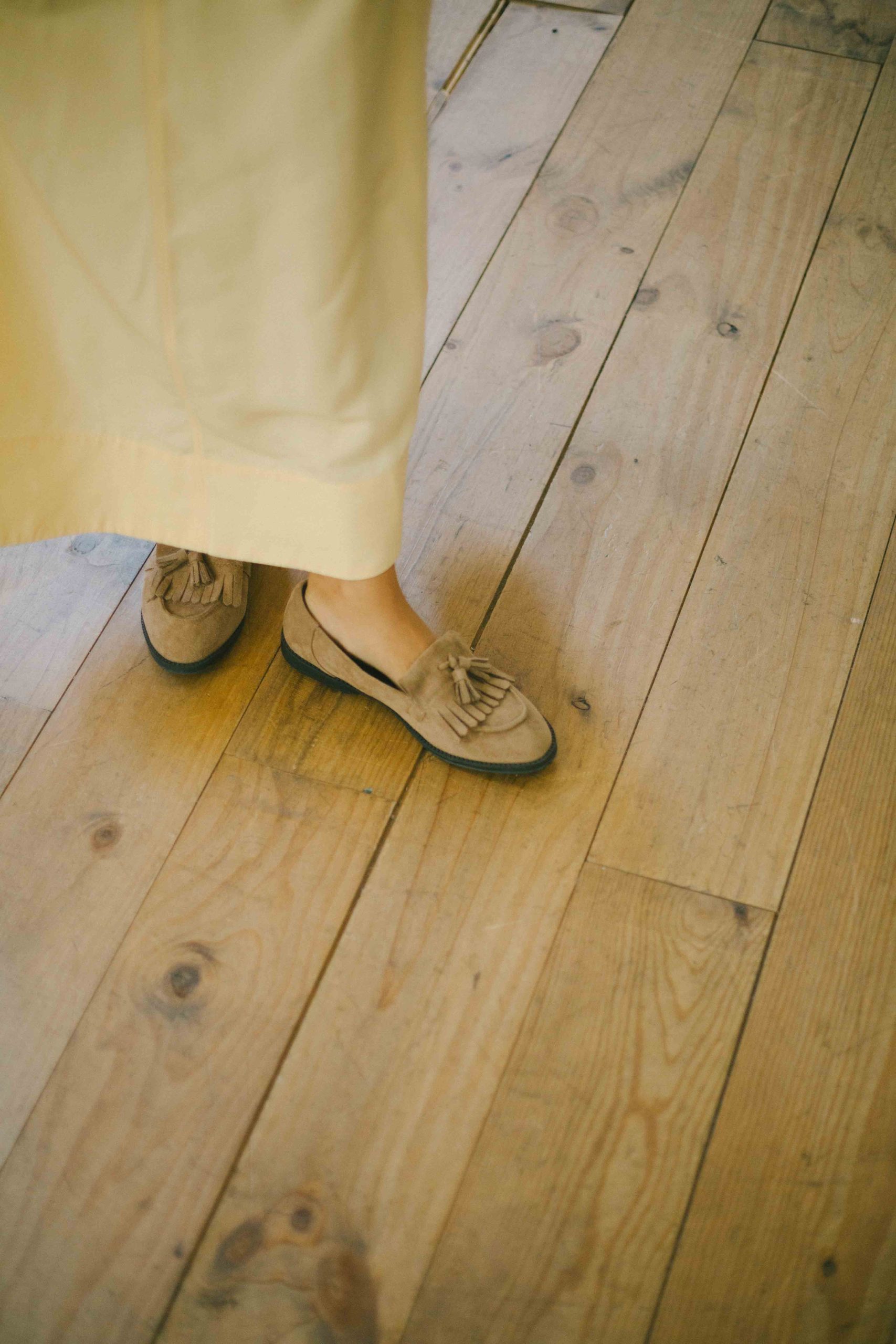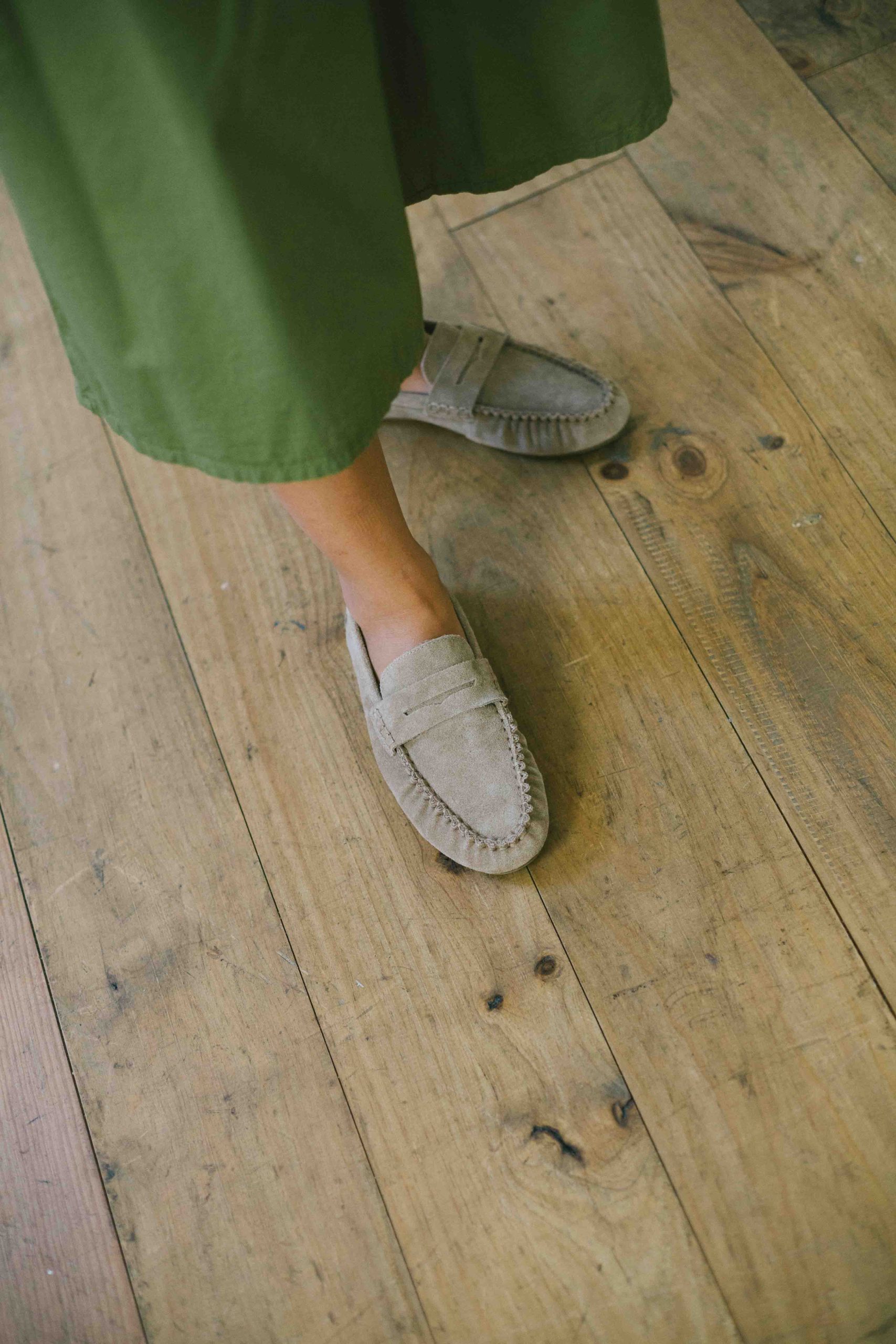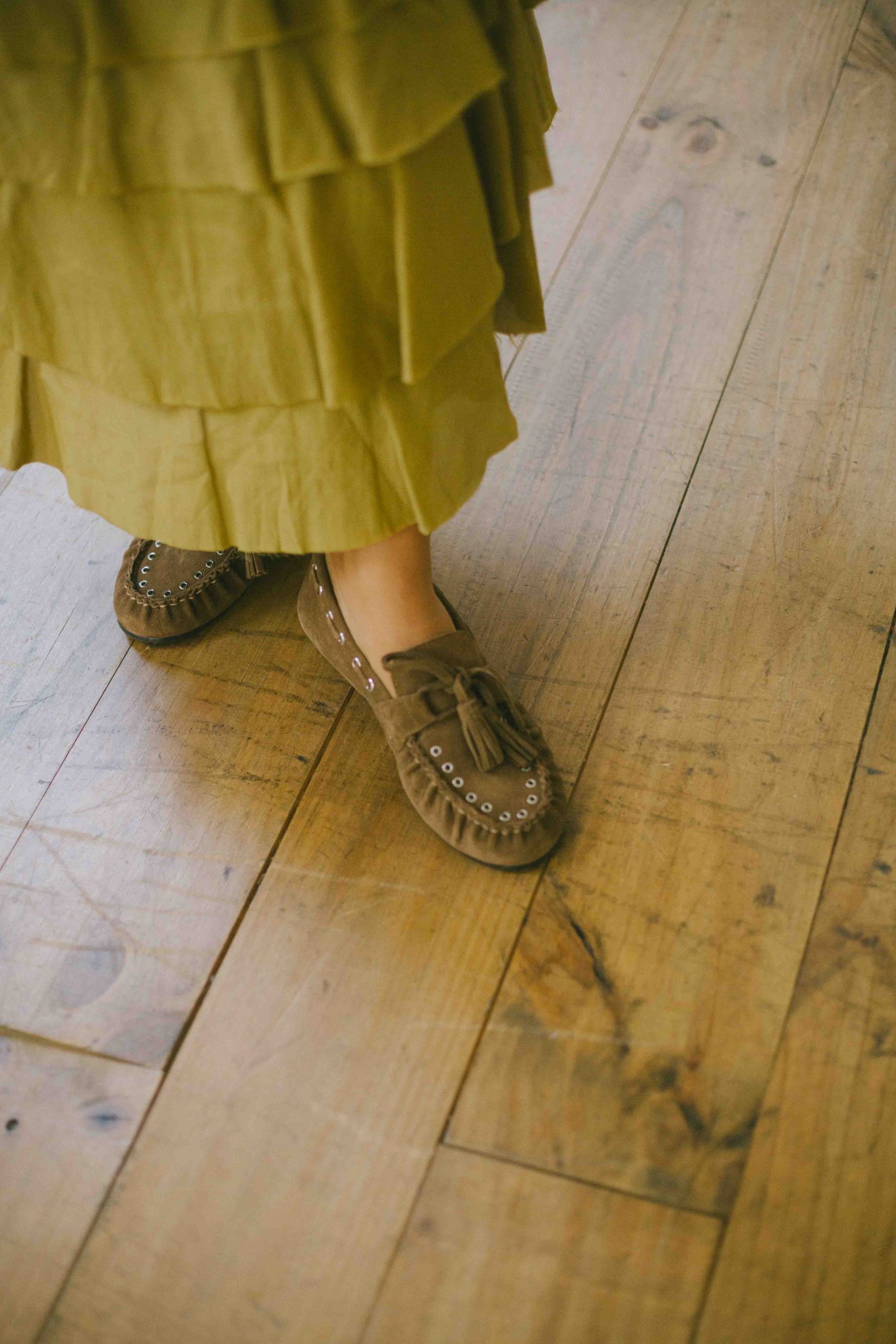 Mocasines ante marrón con tachuelas y pompon Brownie t.38