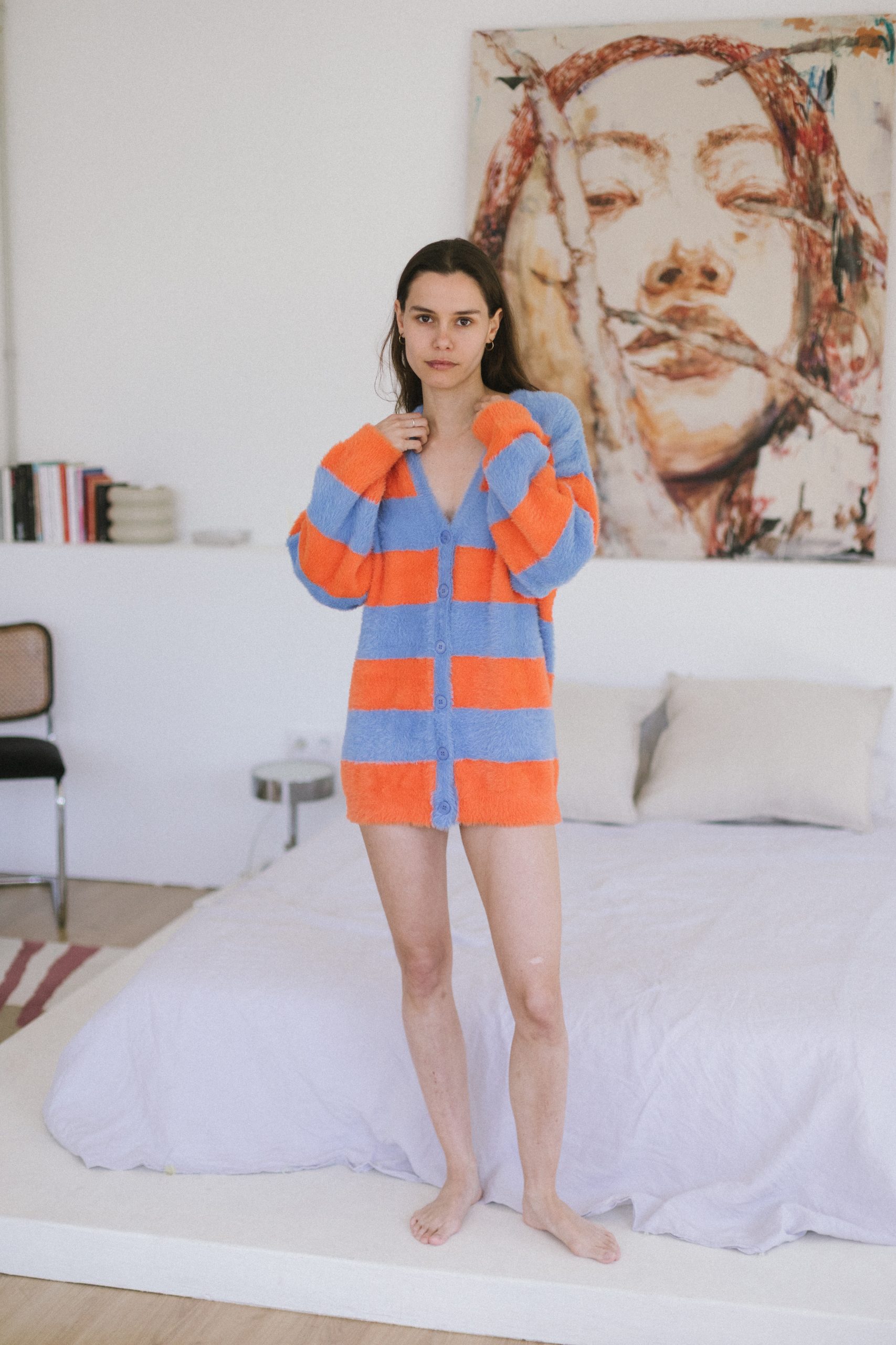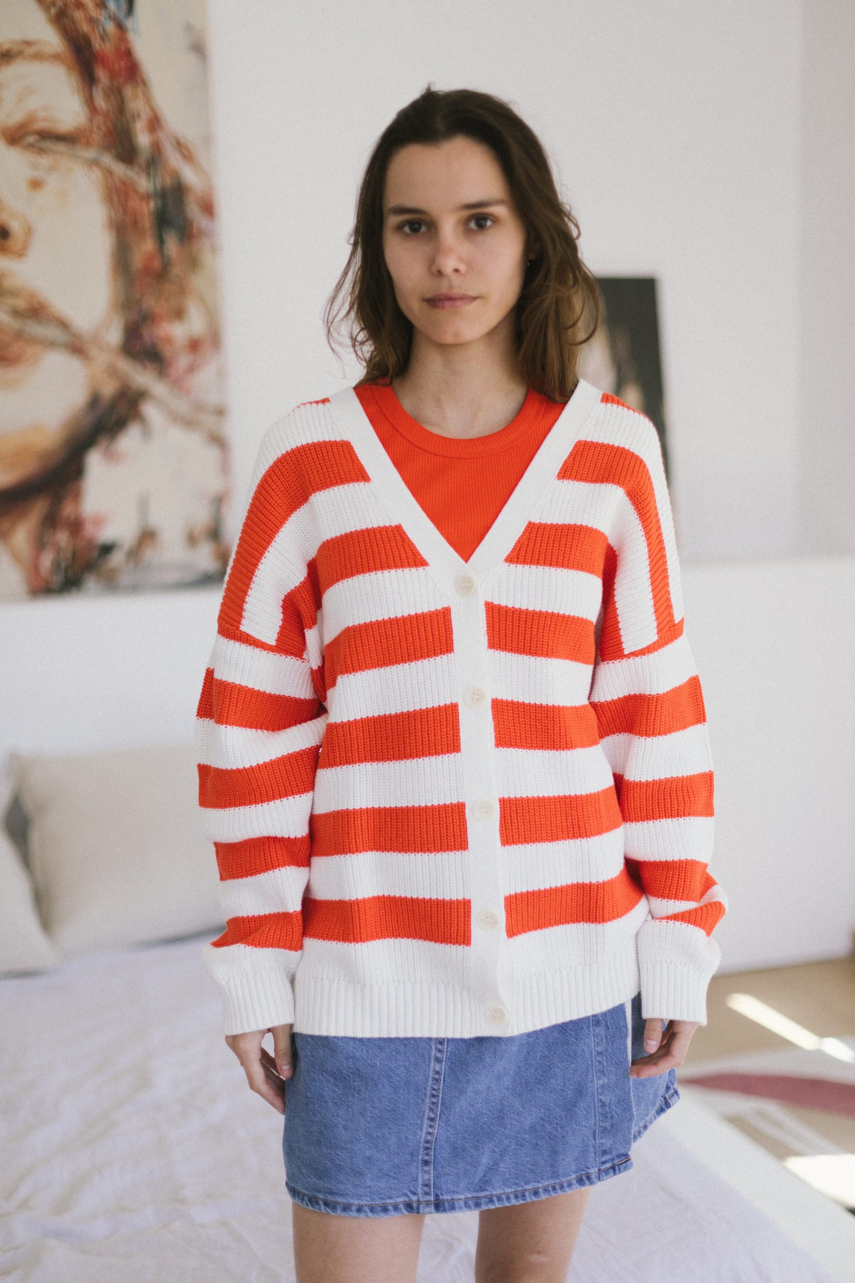 CÁRDIGAN CON TEXTURA Y A RALLAS CON COLORES