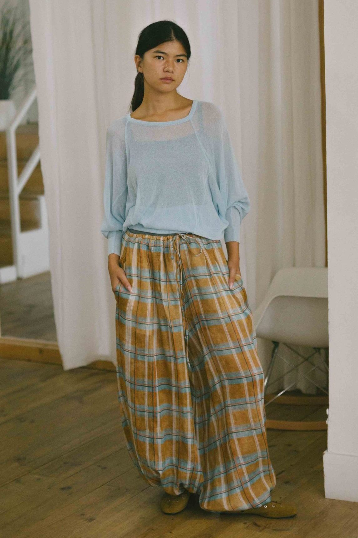 - Siluetas esculturales: cortes o drapeados acompañados de polos Britpop, demostrando que la falda de cuadros trasciende estaciones.