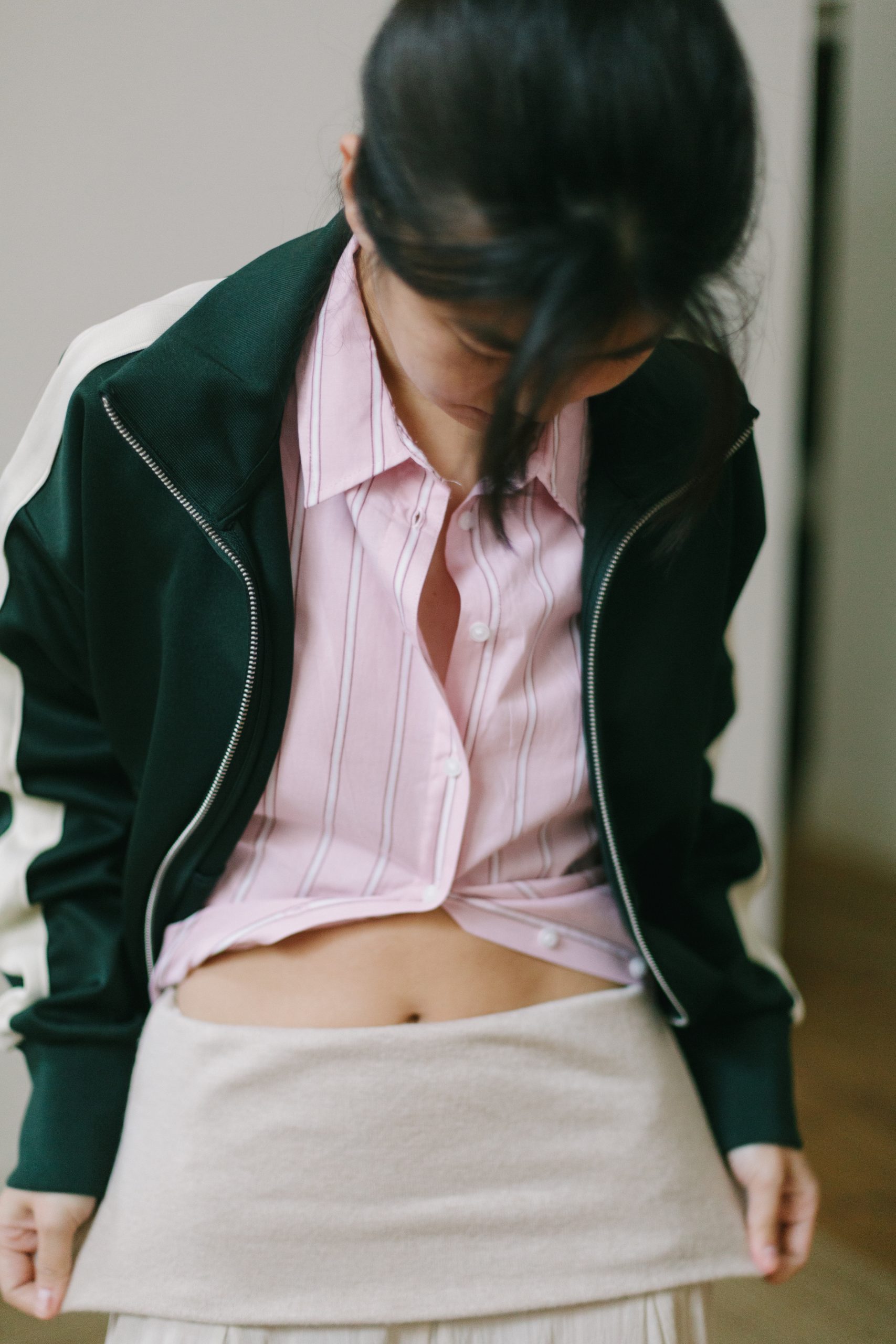 sudadera tricolor con cuello volantes