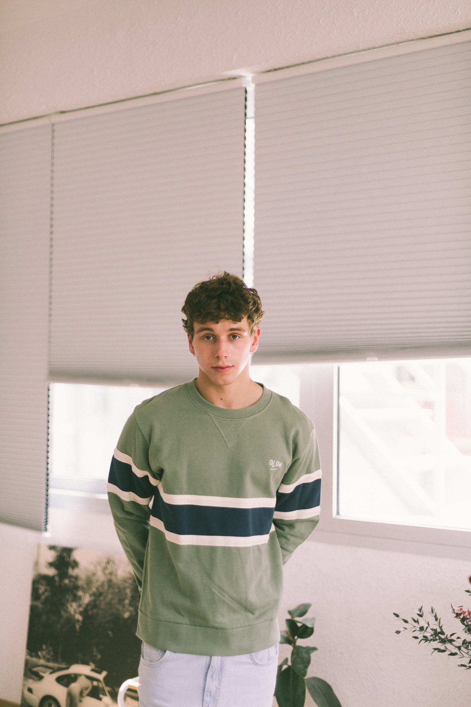 SUDADERA VERDE CON DETALLE RALLAS HORIZONTALES TALLA M. OLOW