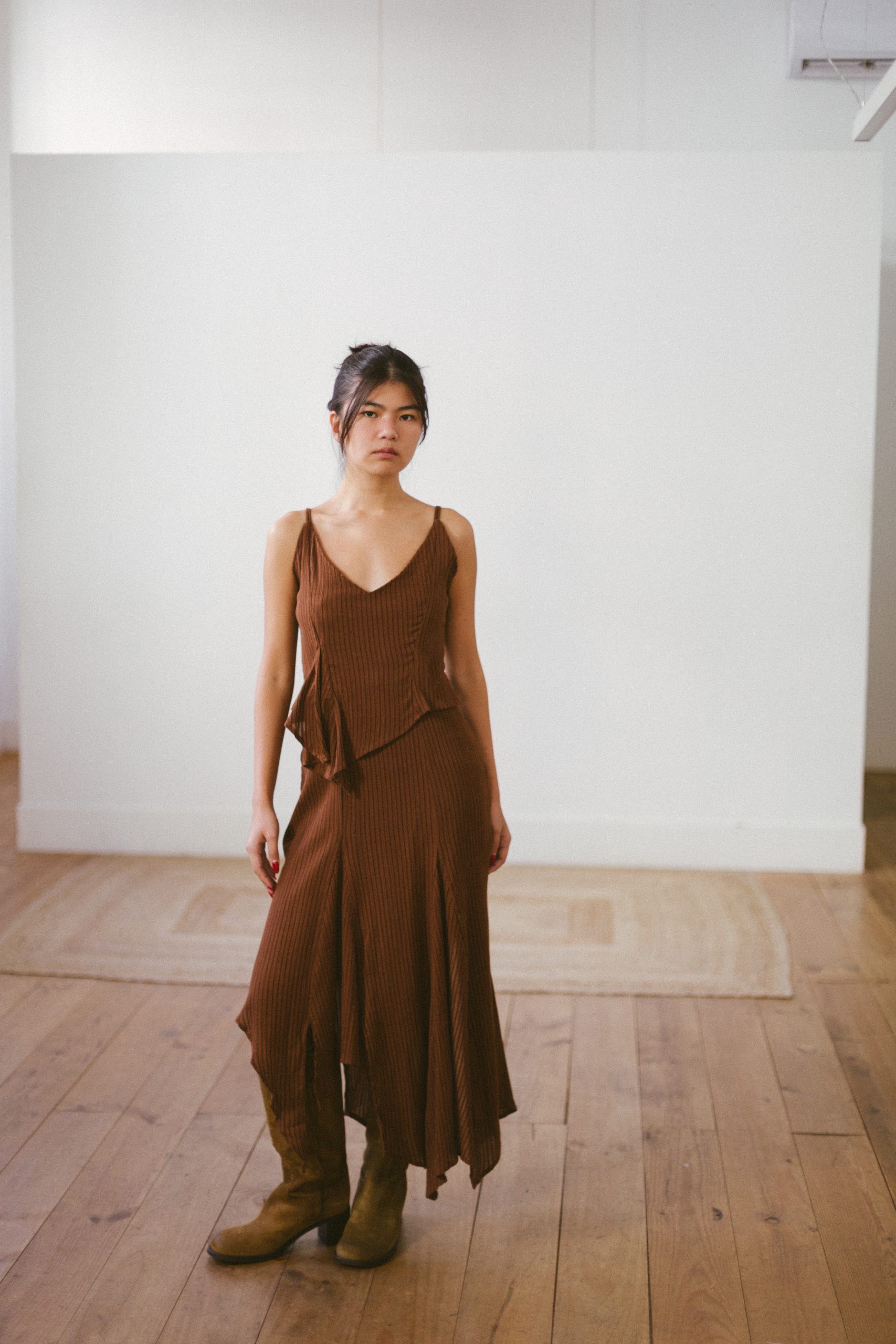 Vestido marrón asímetrico de LAAGAM