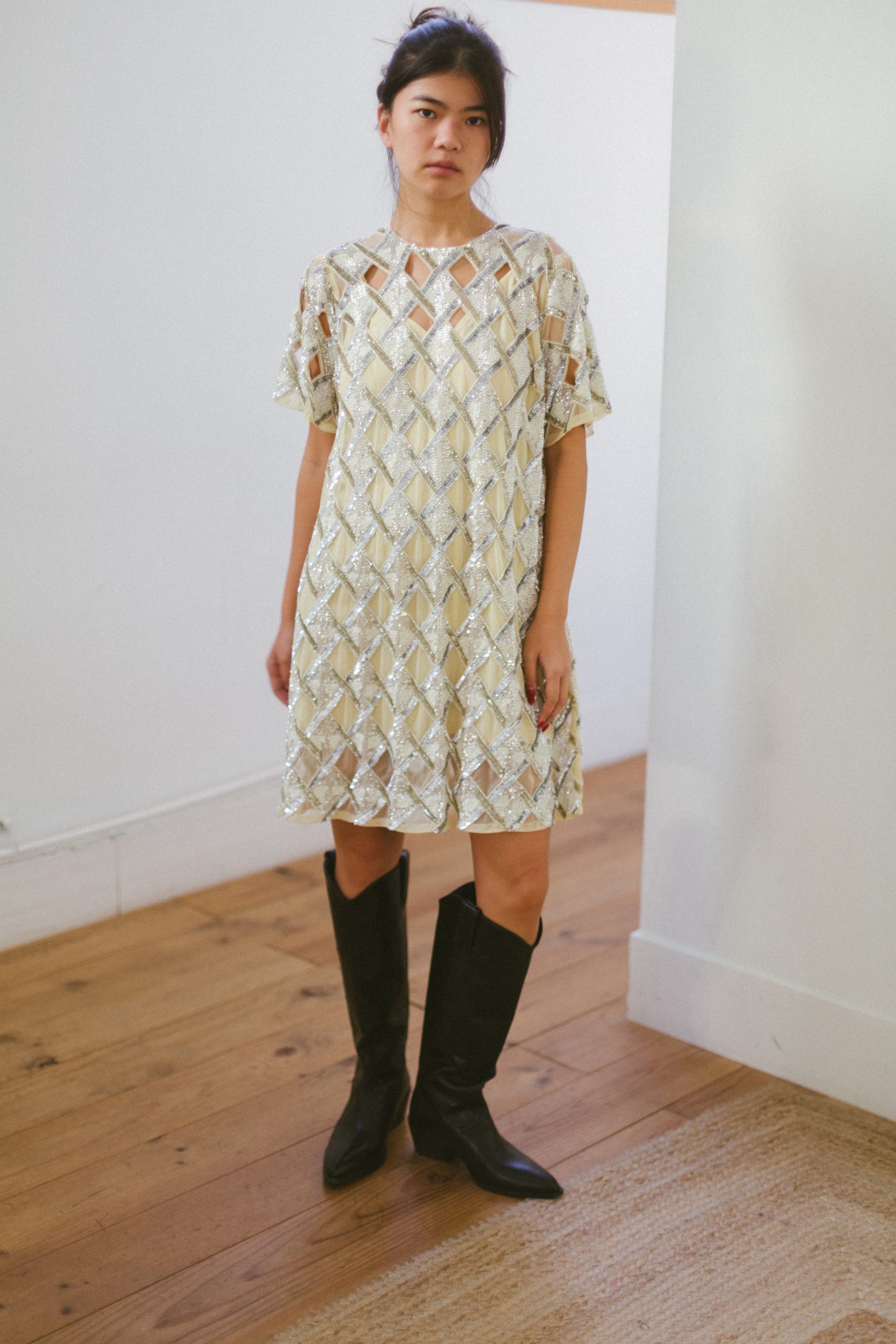 Vestido corto pailette de estilo camisero con cinturón- XS- & Other Stories