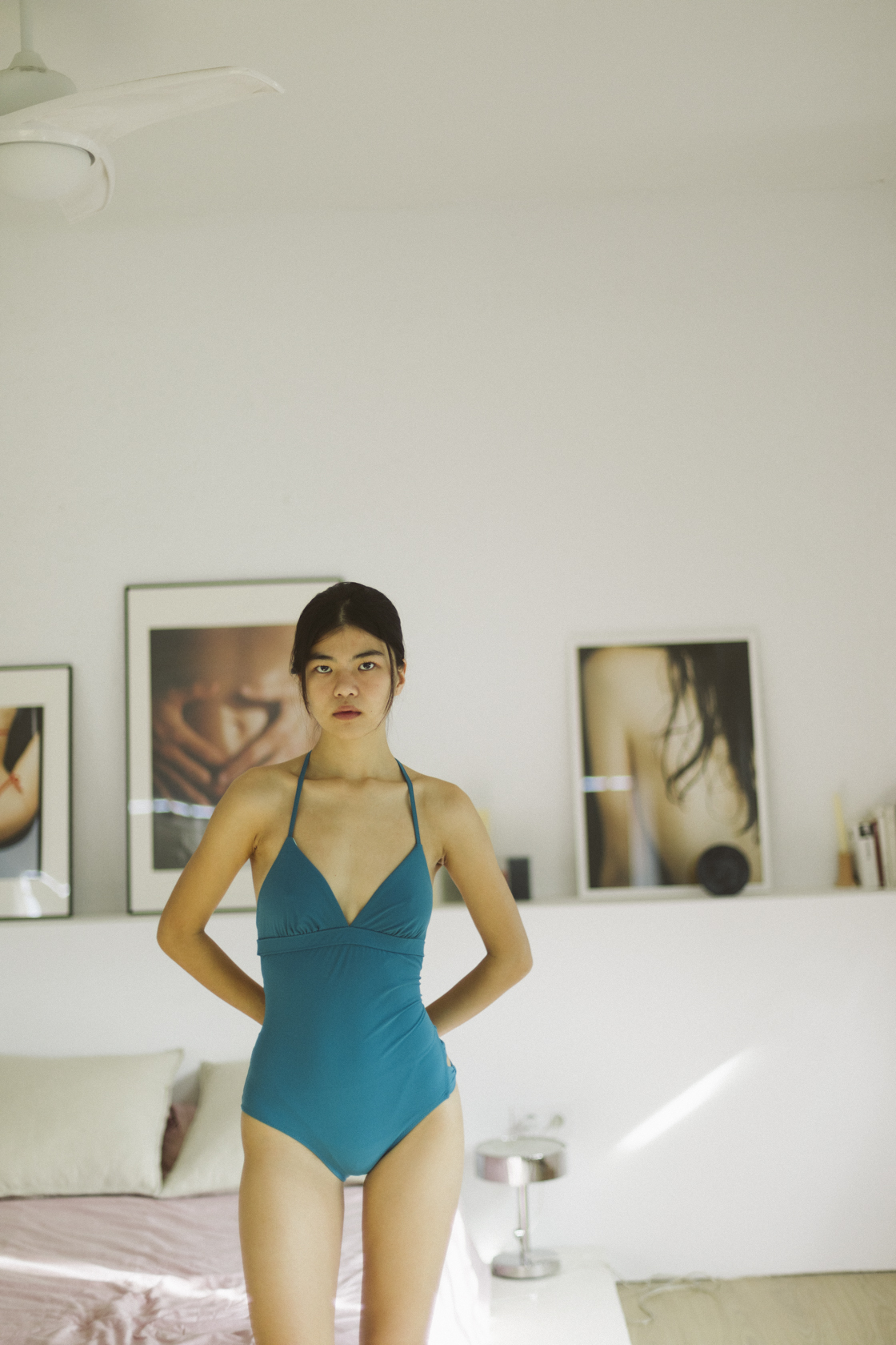 Bañador azul abierto por la espalda