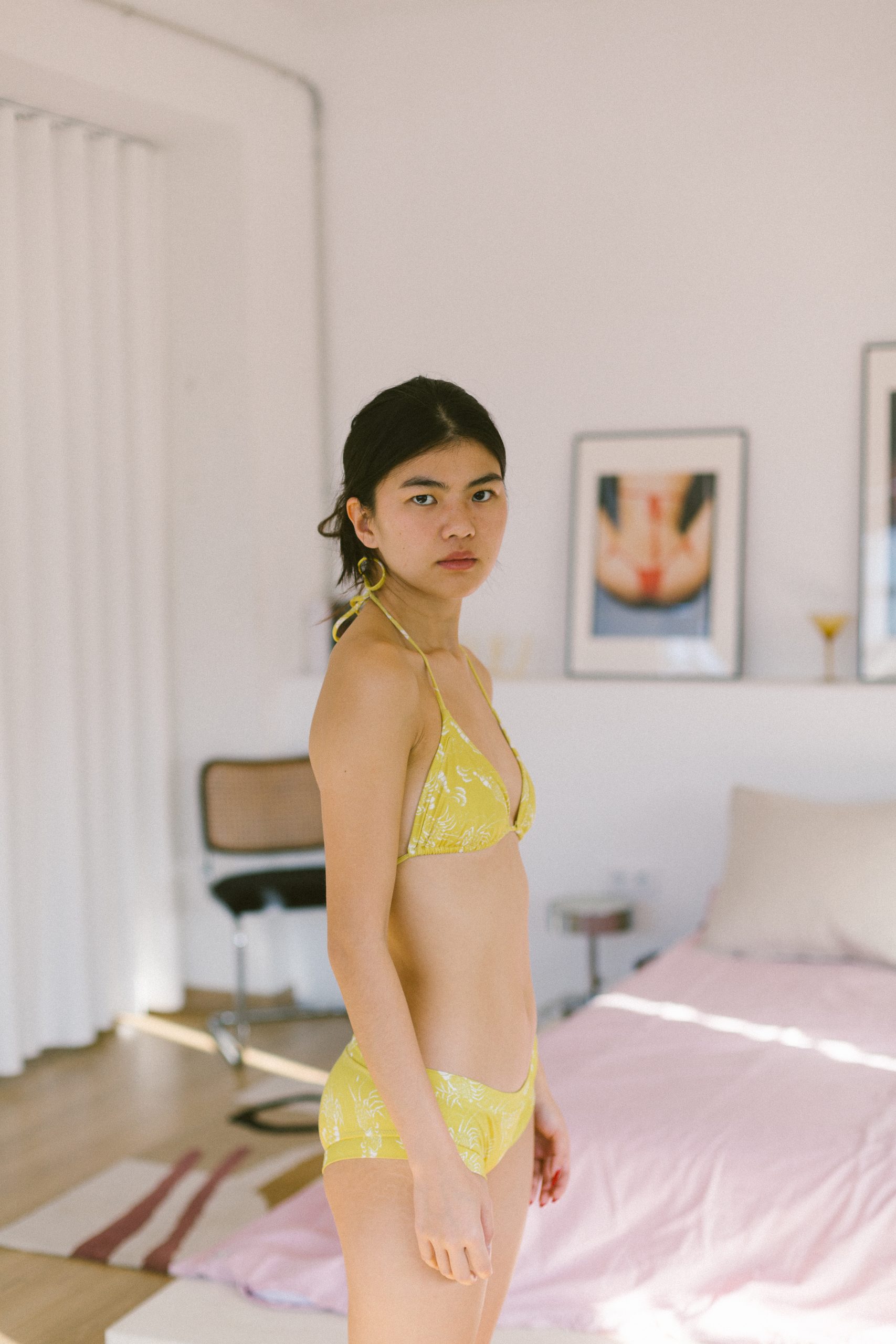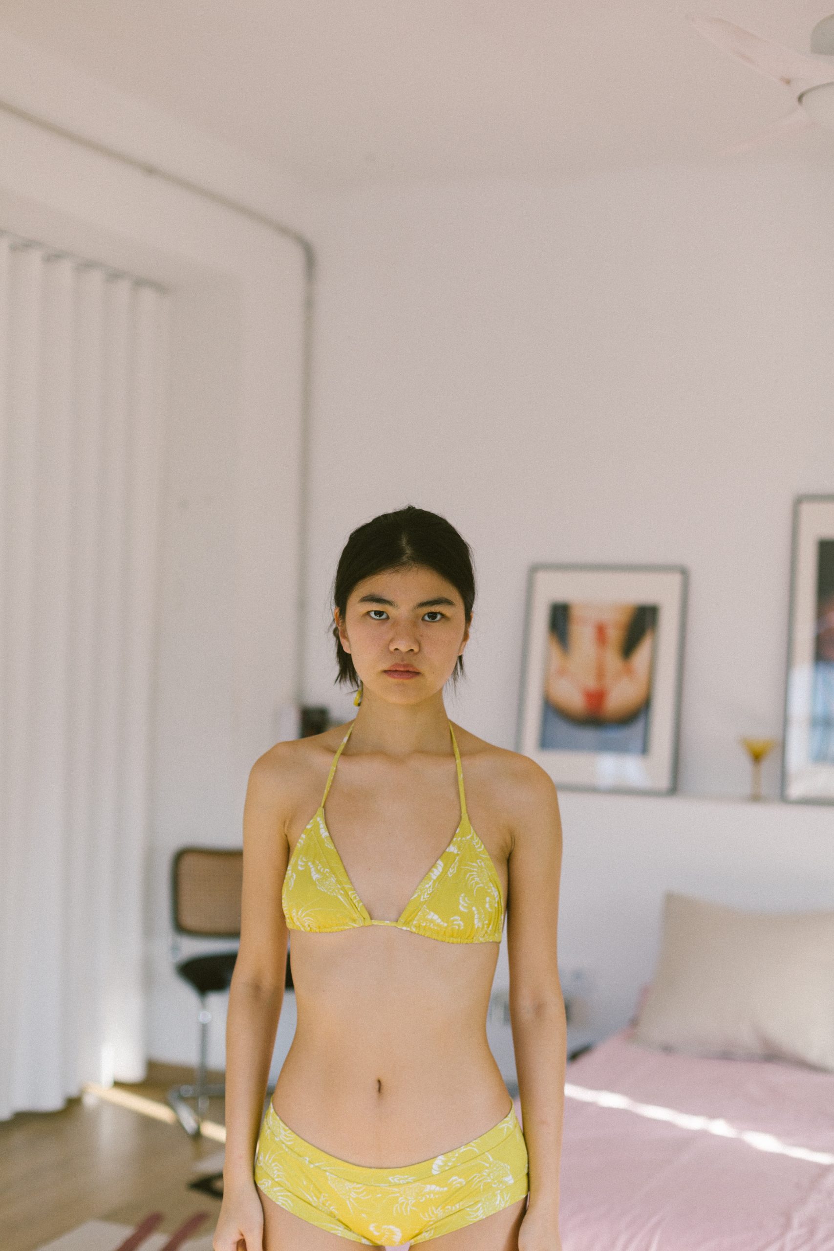 Bikini amarillo con braga ancha y estampado blanco – Dos Mares