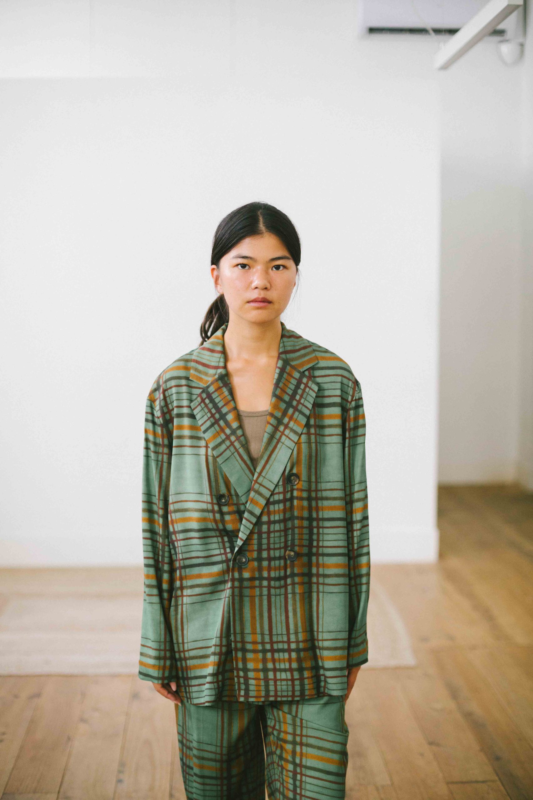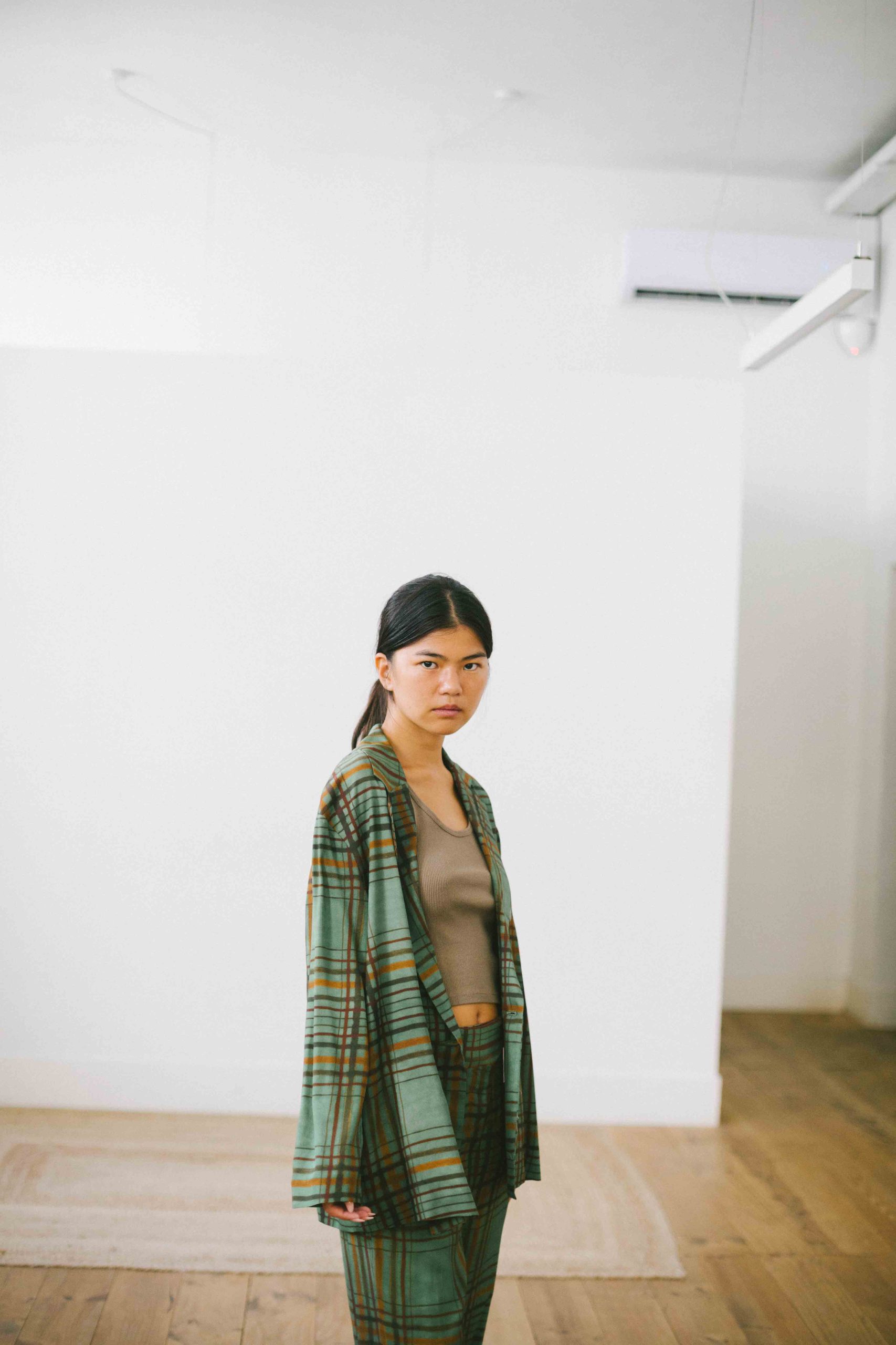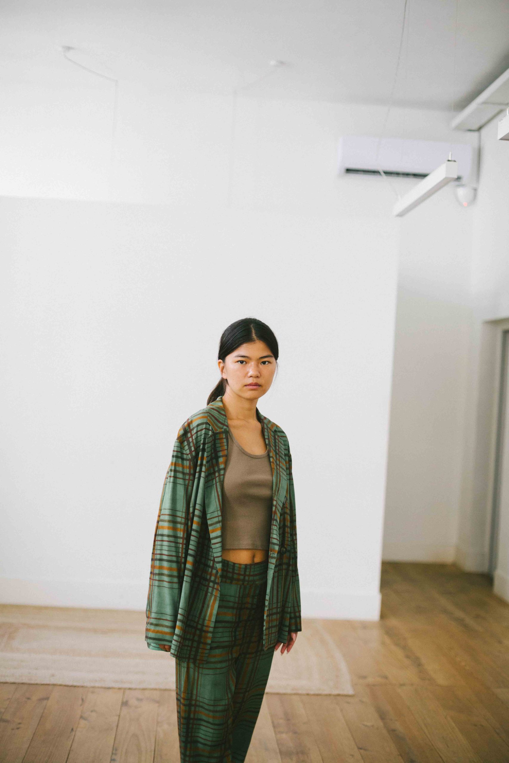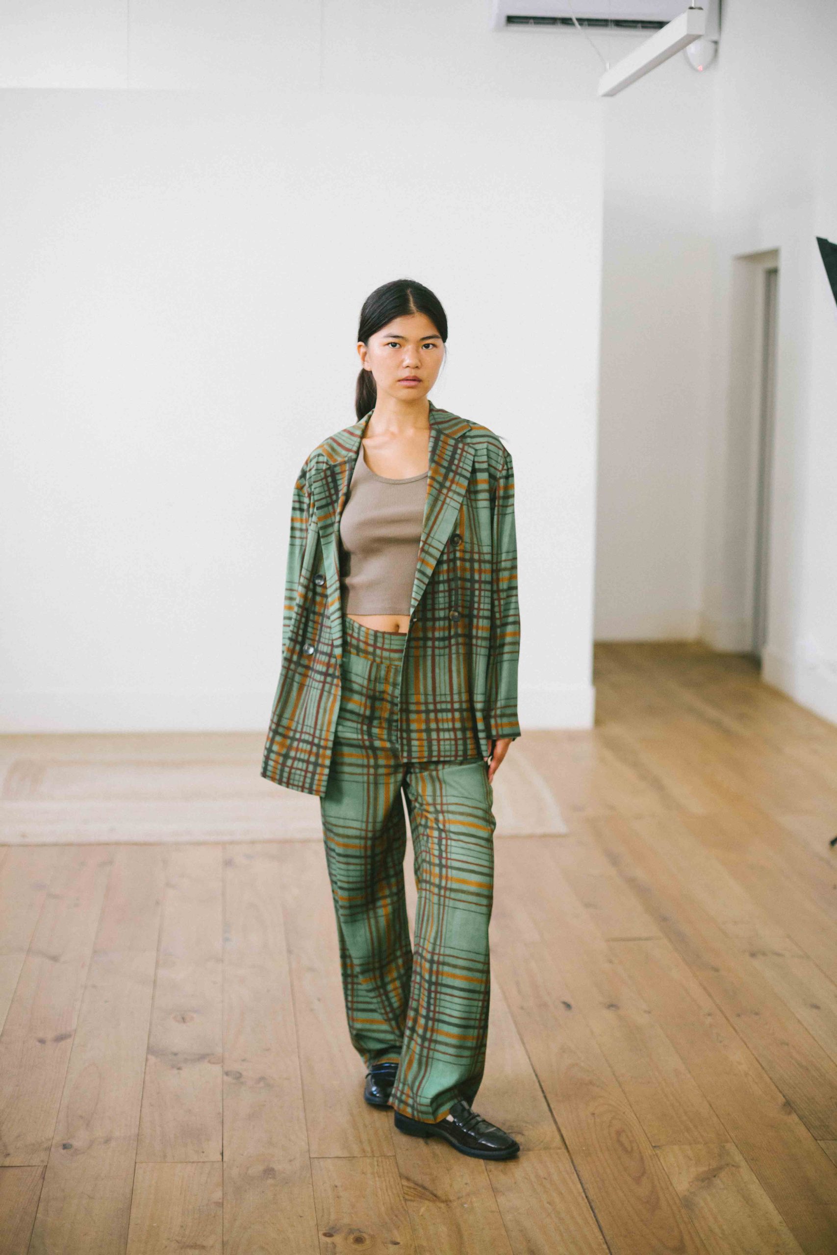 Blazer fluída cuadros verdes parte de un conjunto t.S