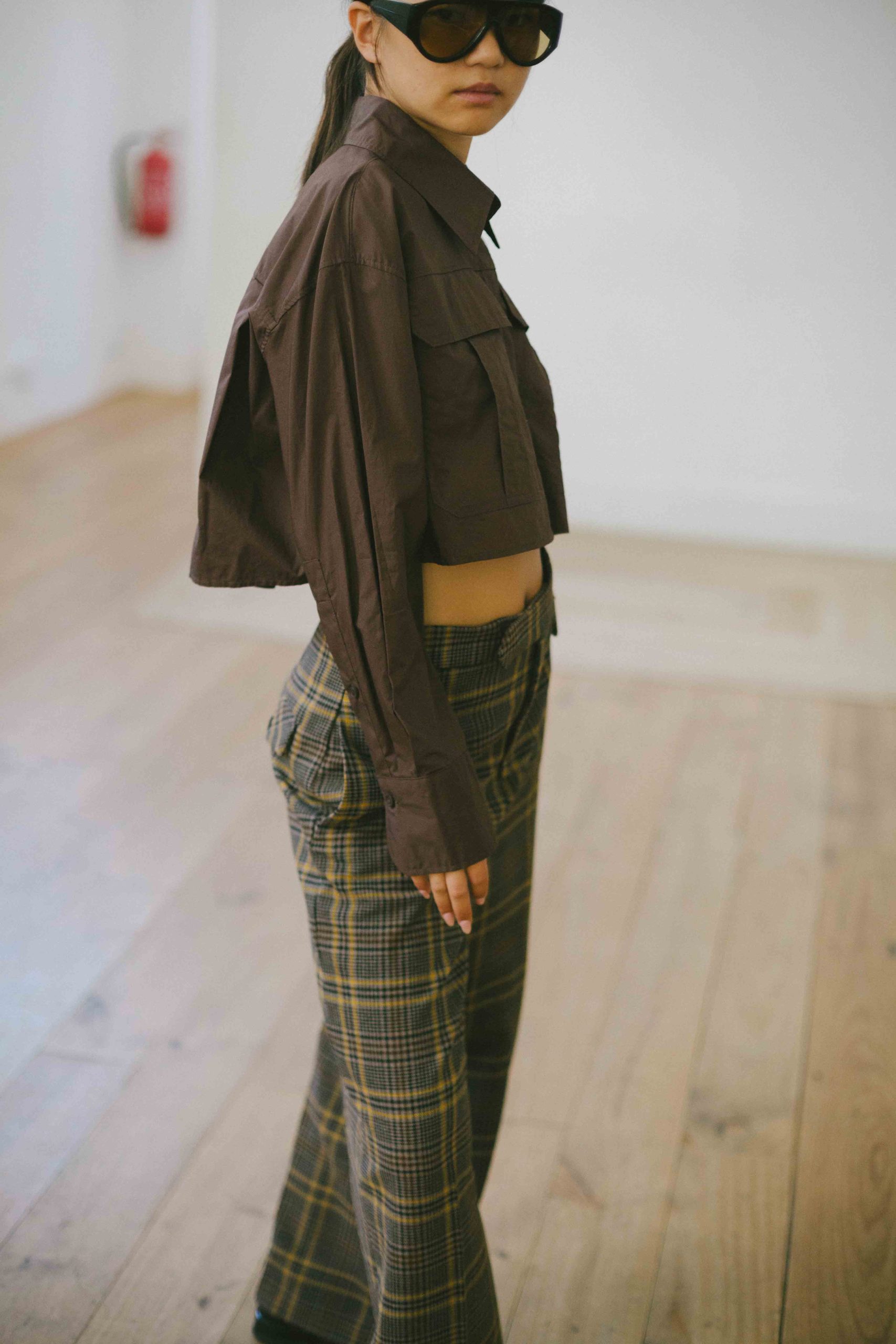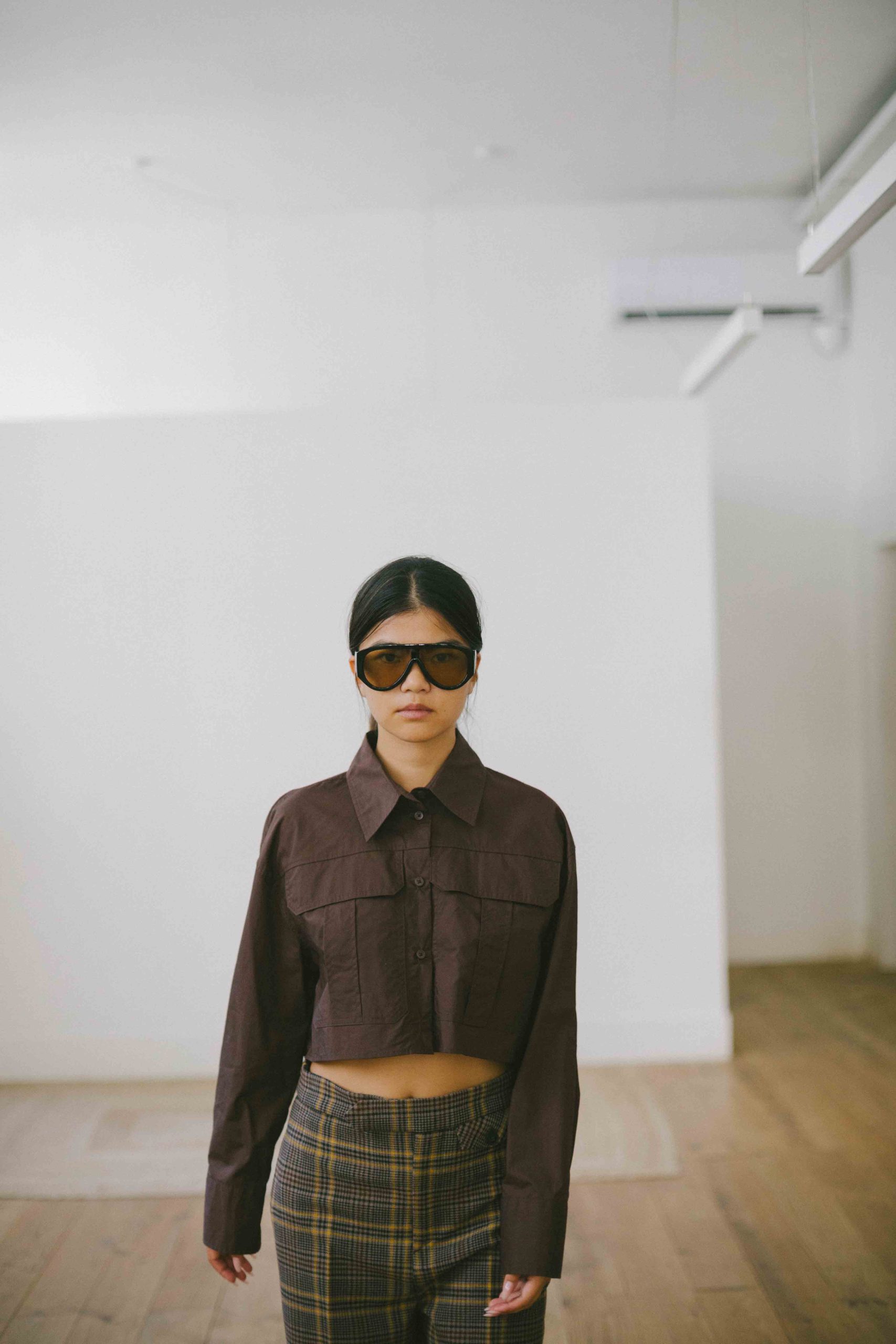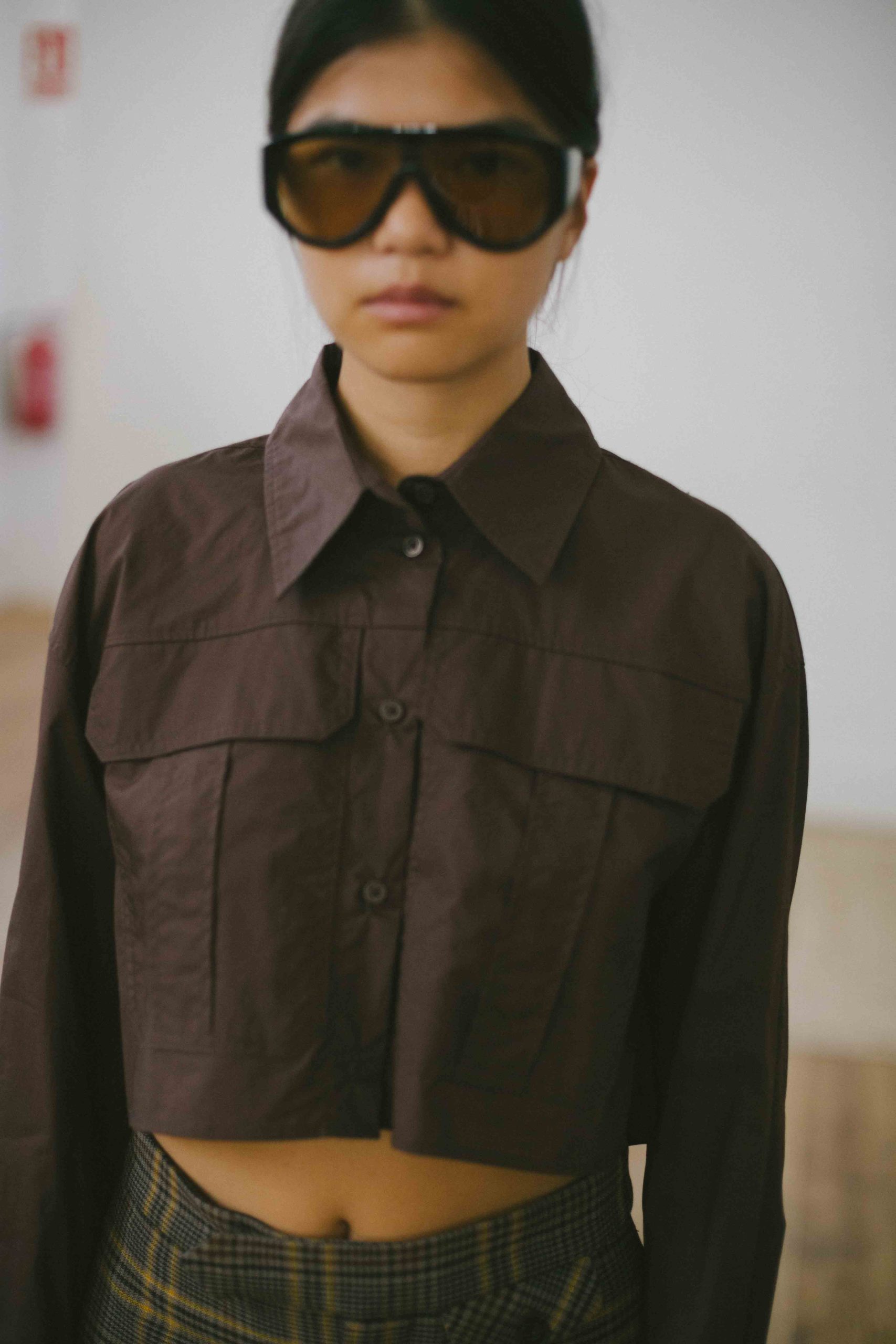 camisa crop con bolsillos chocolate