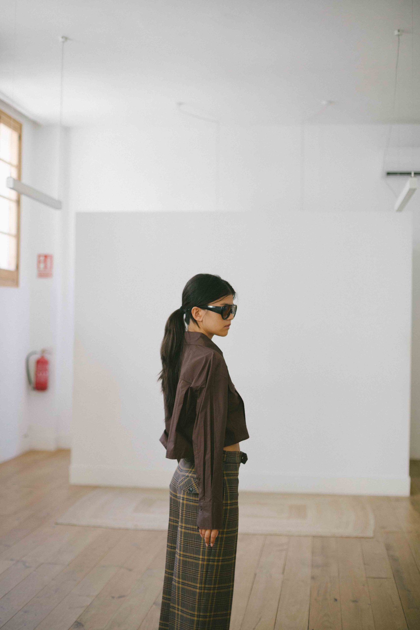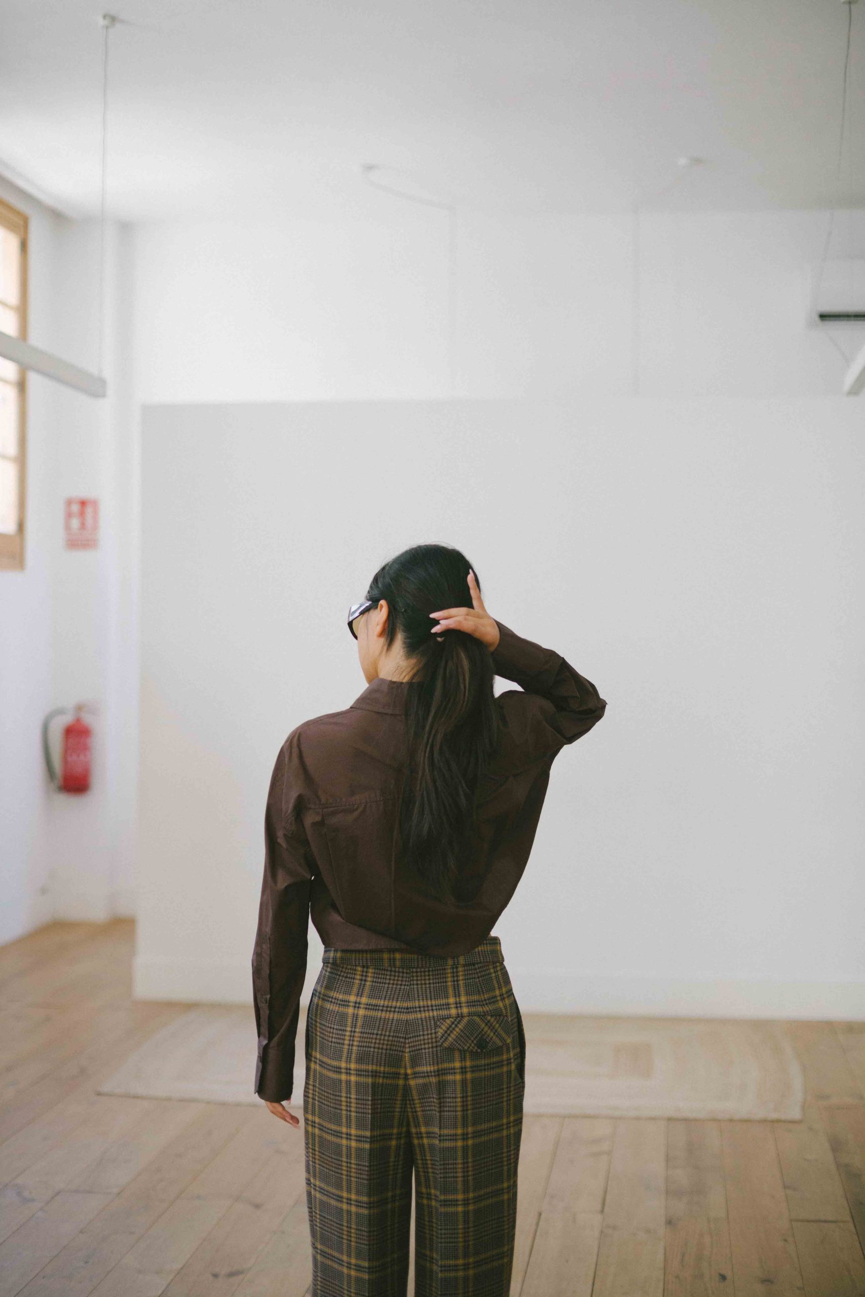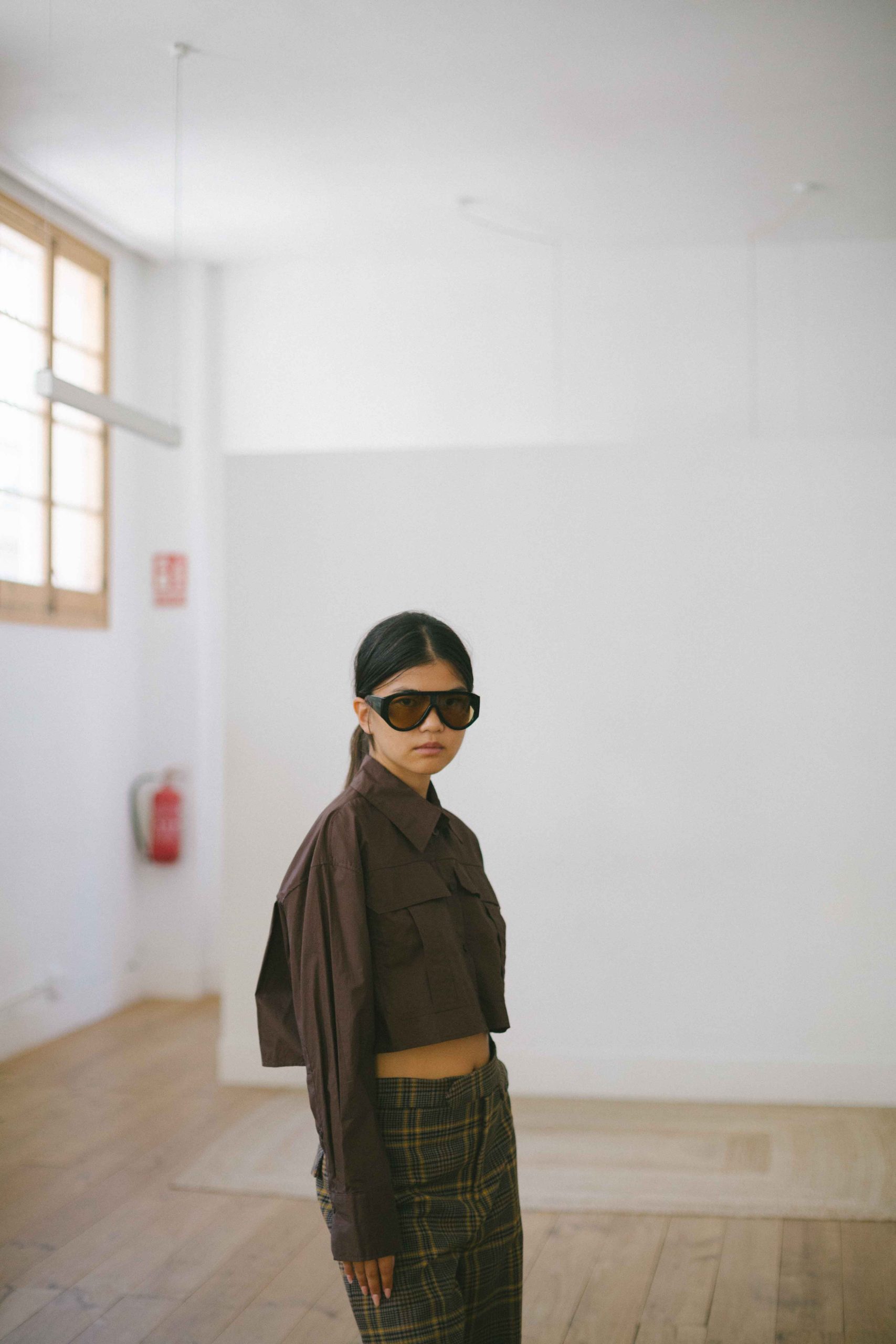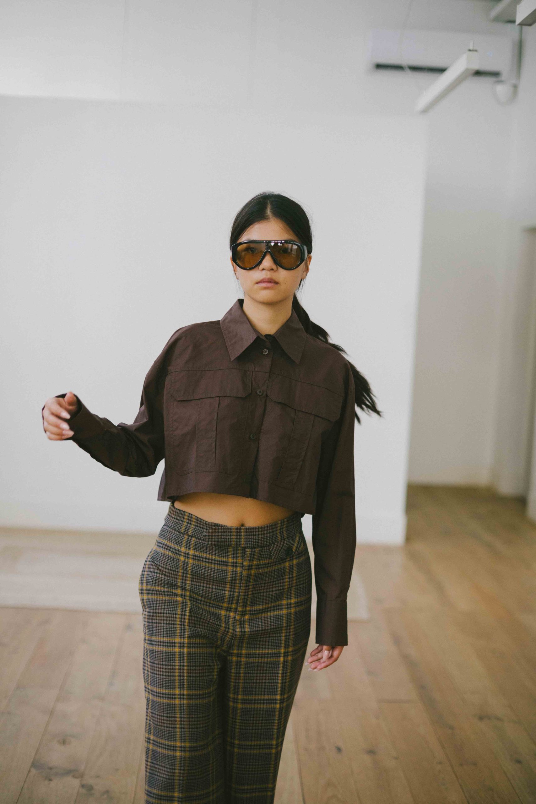 camisa crop con bolsillos chocolate