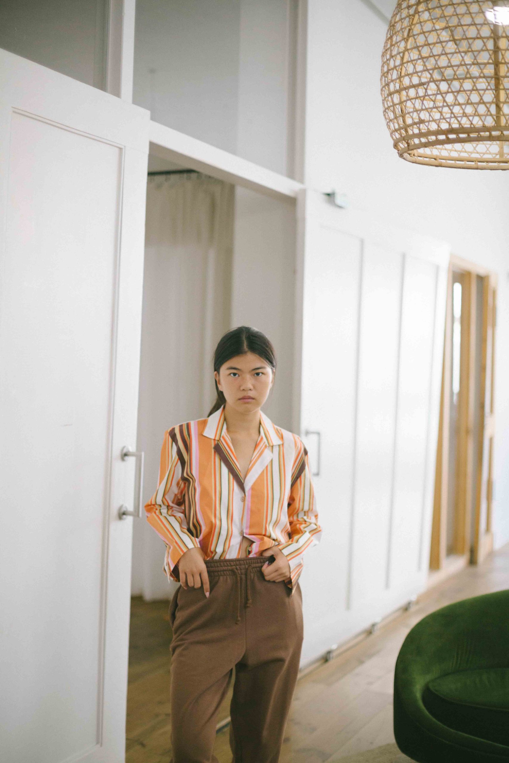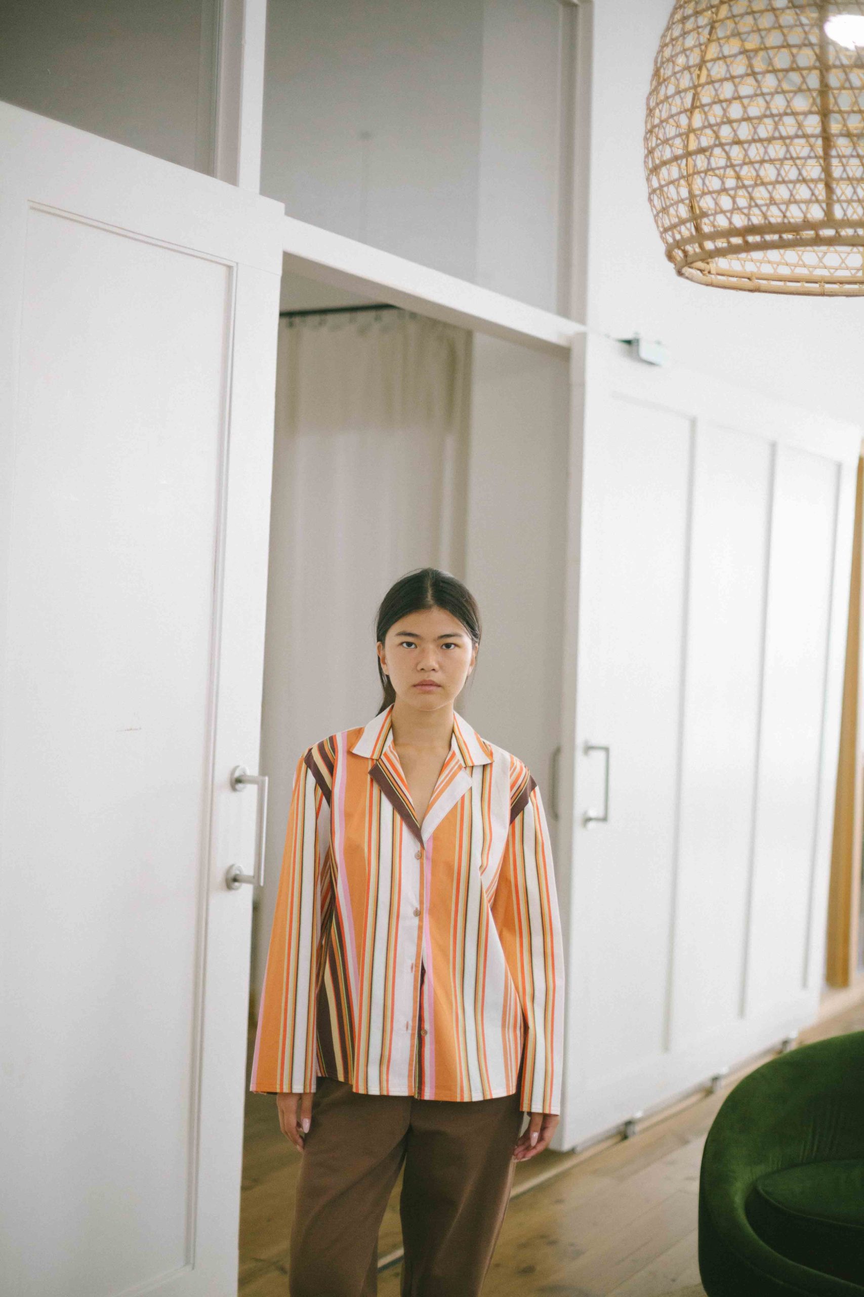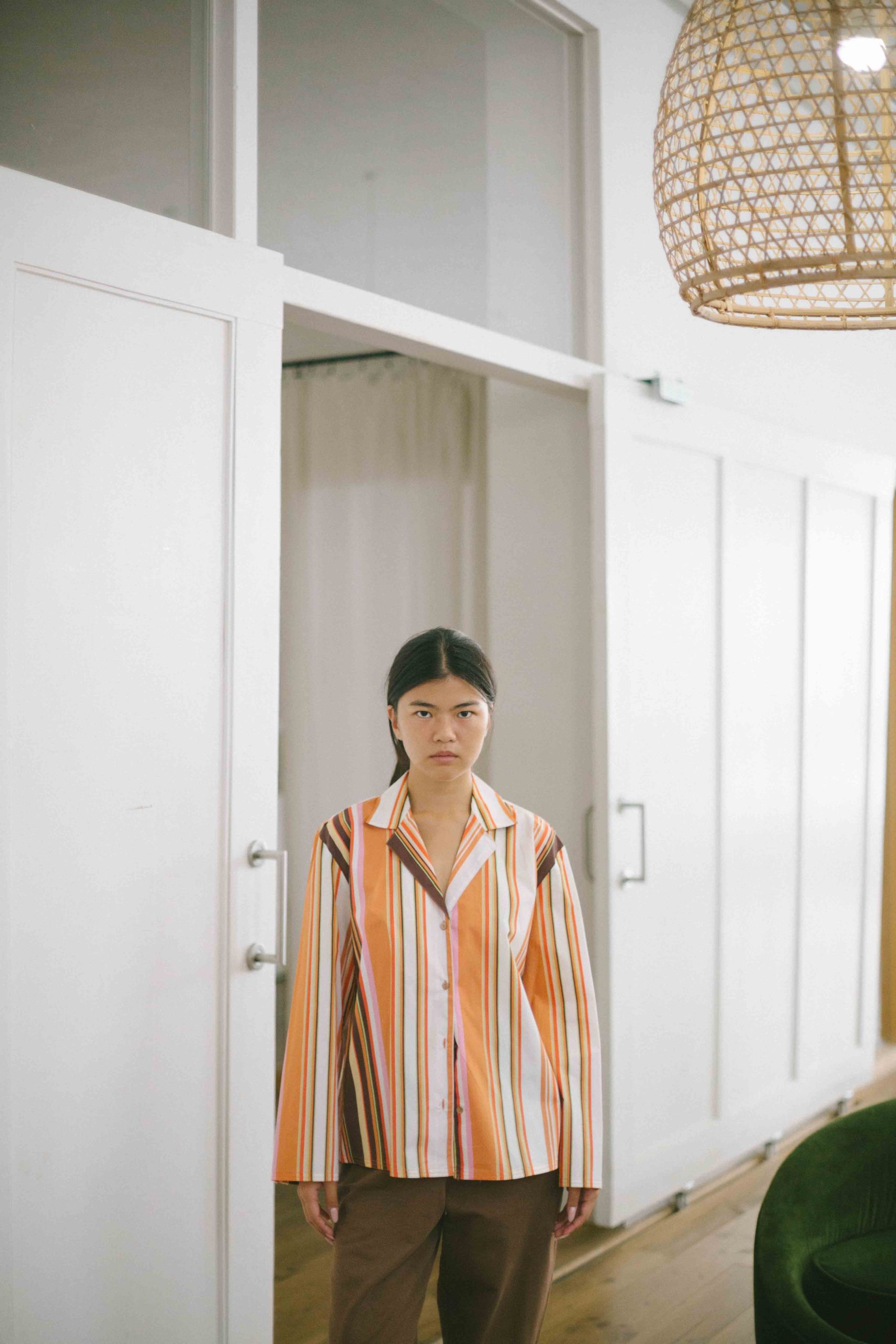 camisa rayas verticales tonos naranjas parte de un conjunto t.S