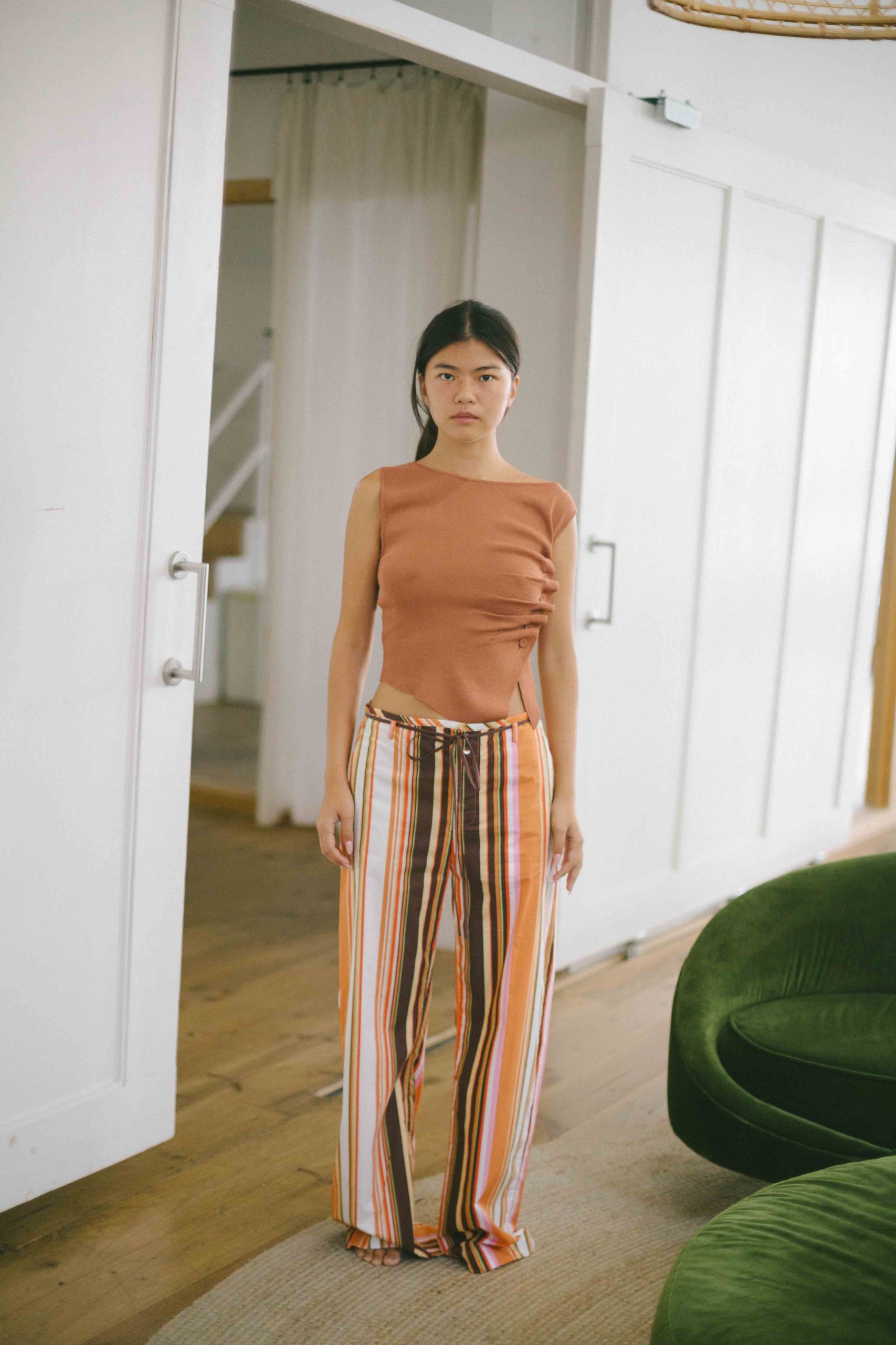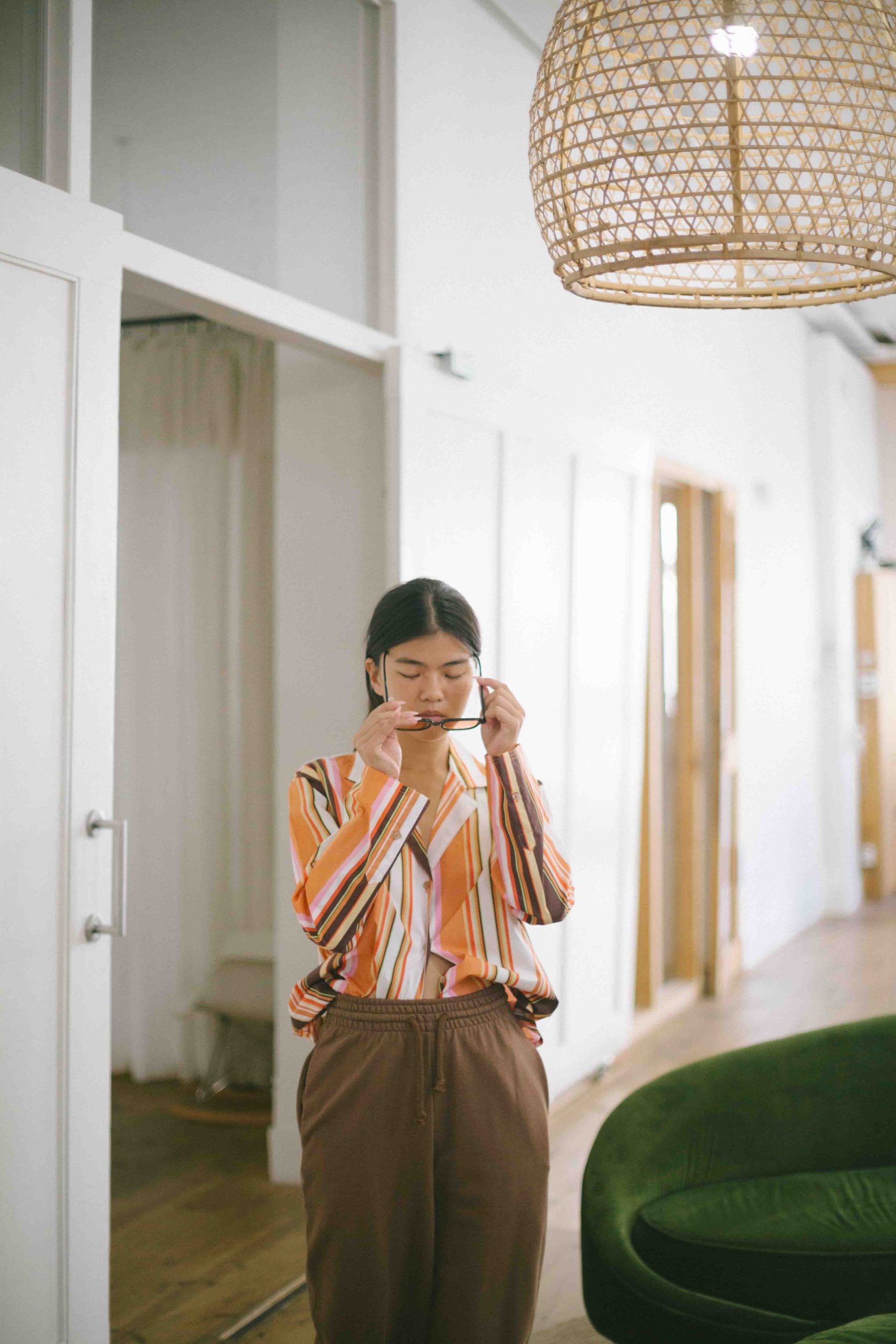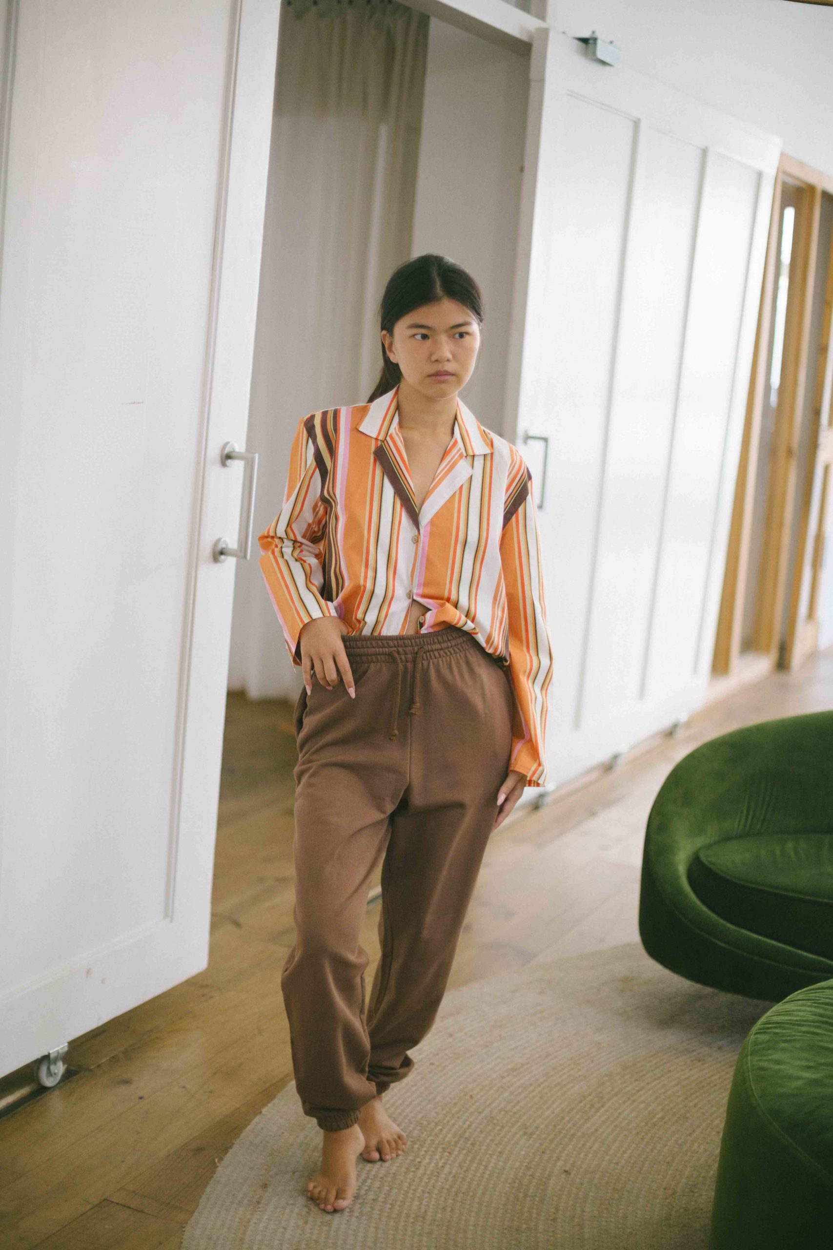 camisa rayas verticales tonos naranjas parte de un conjunto t.S