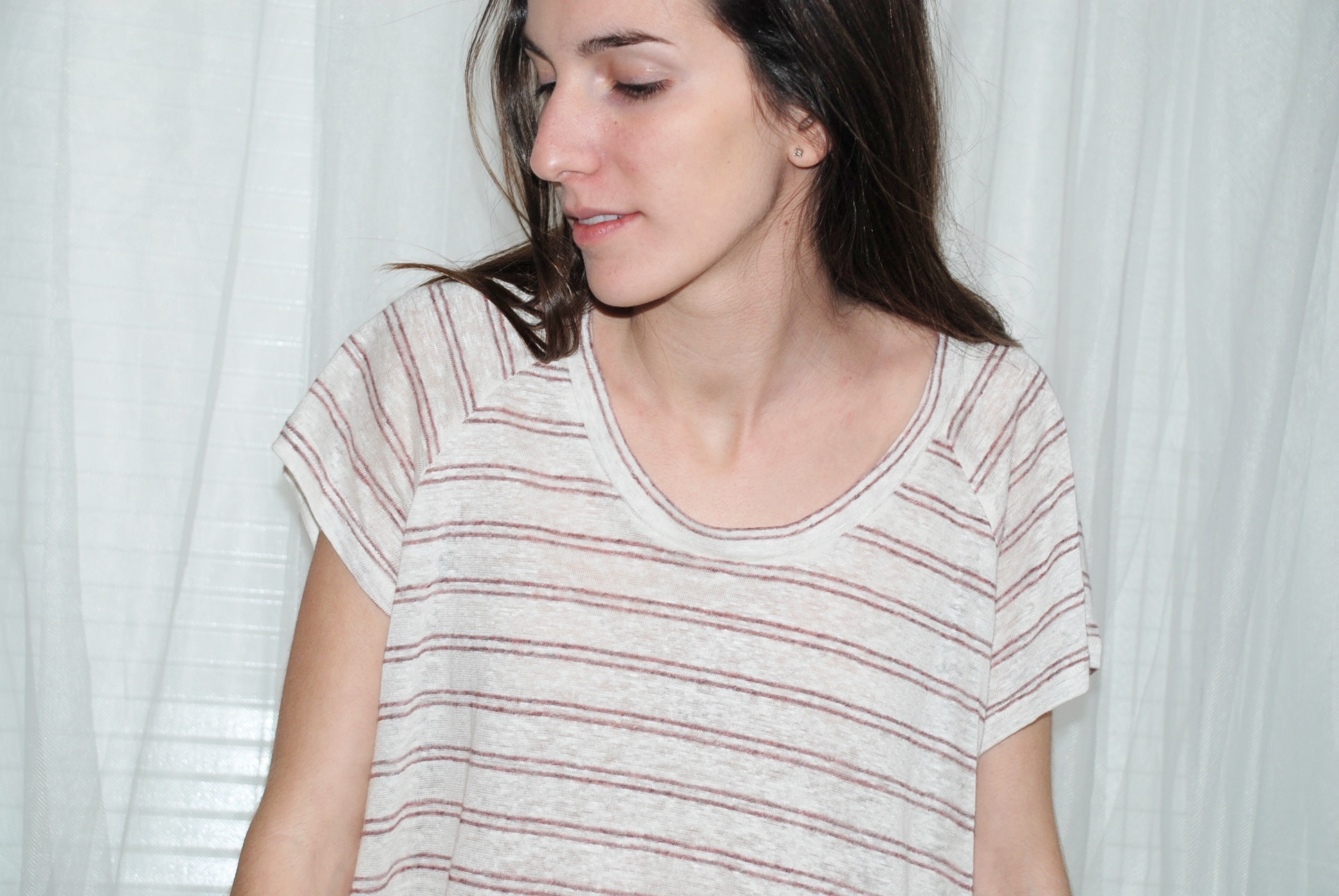 Camiseta blanca rayas nude Yerse