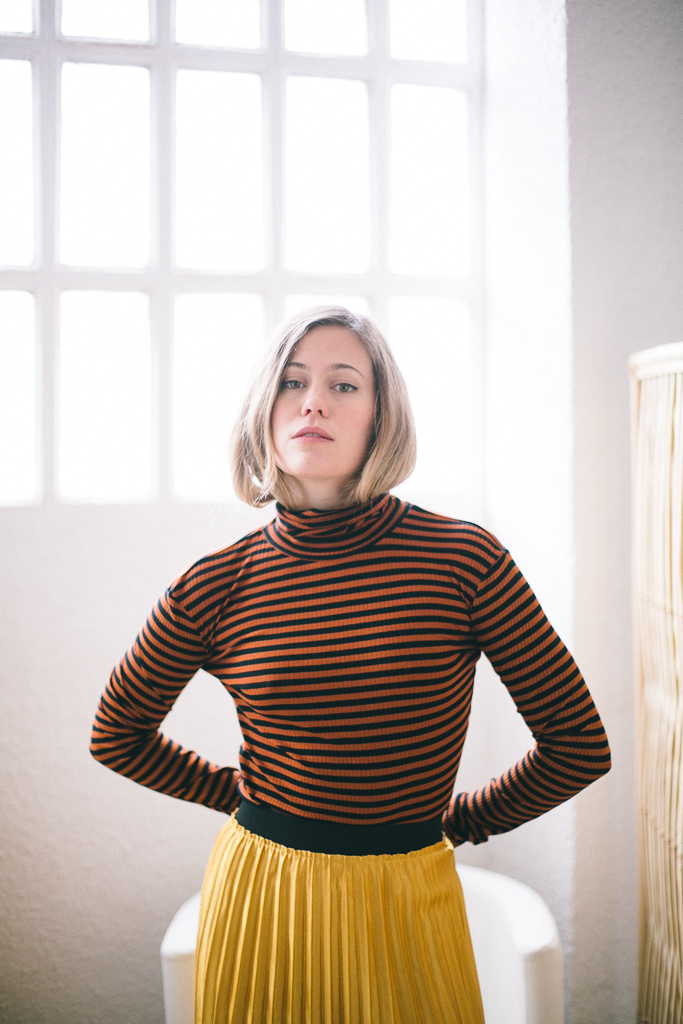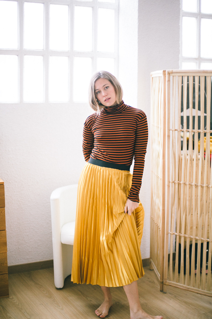 Camiseta cuello vuelto de canalé y rayas