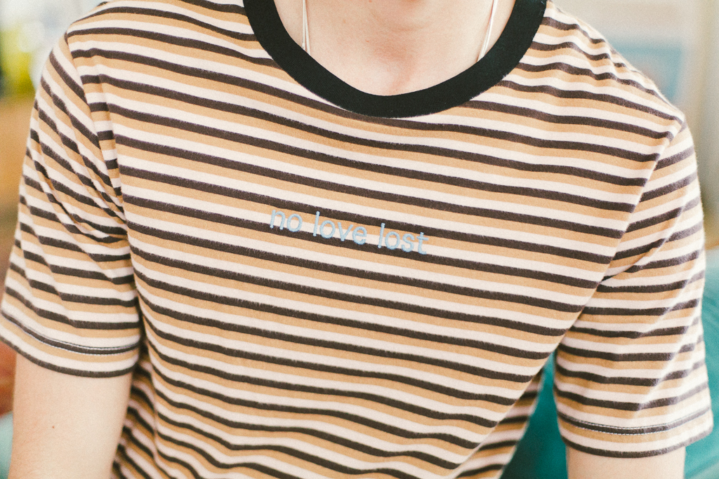 camiseta rayas marrón no love lost de URBAN OUTFITTERS