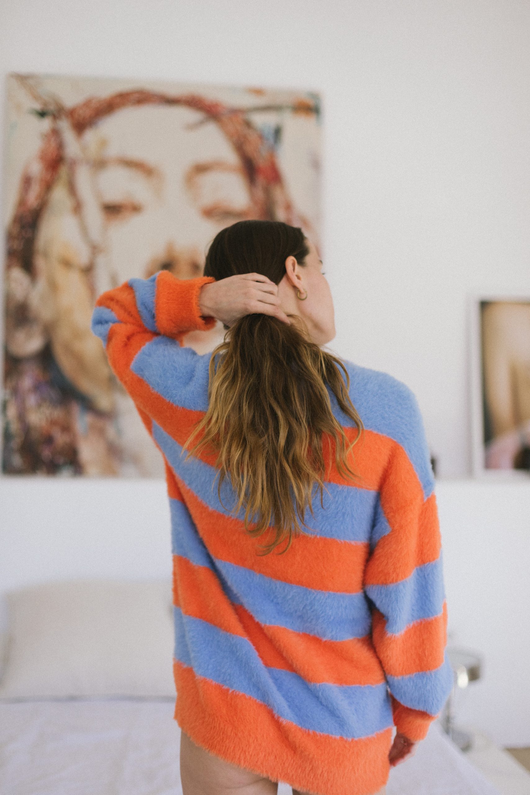 CÁRDIGAN CON TEXTURA Y A RALLAS CON COLORES