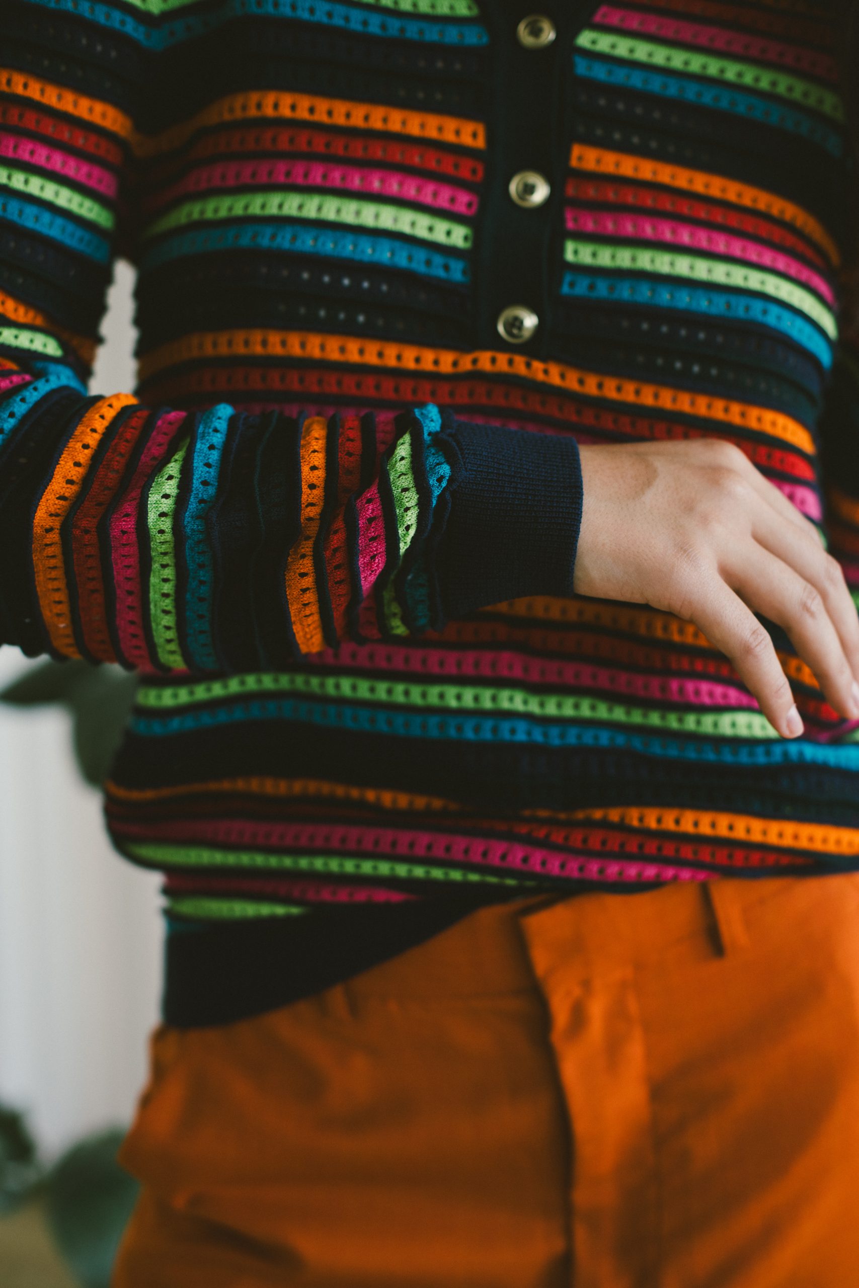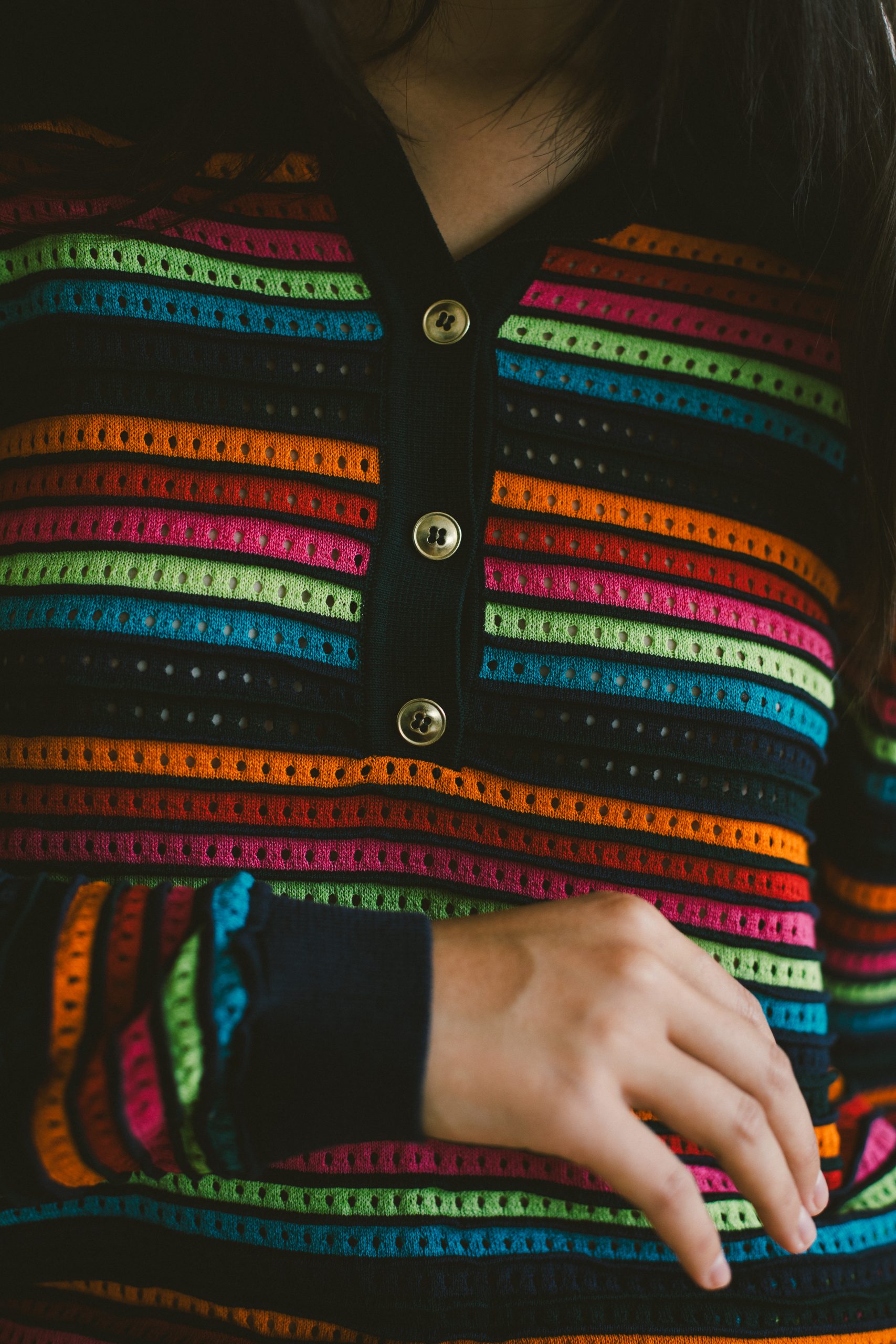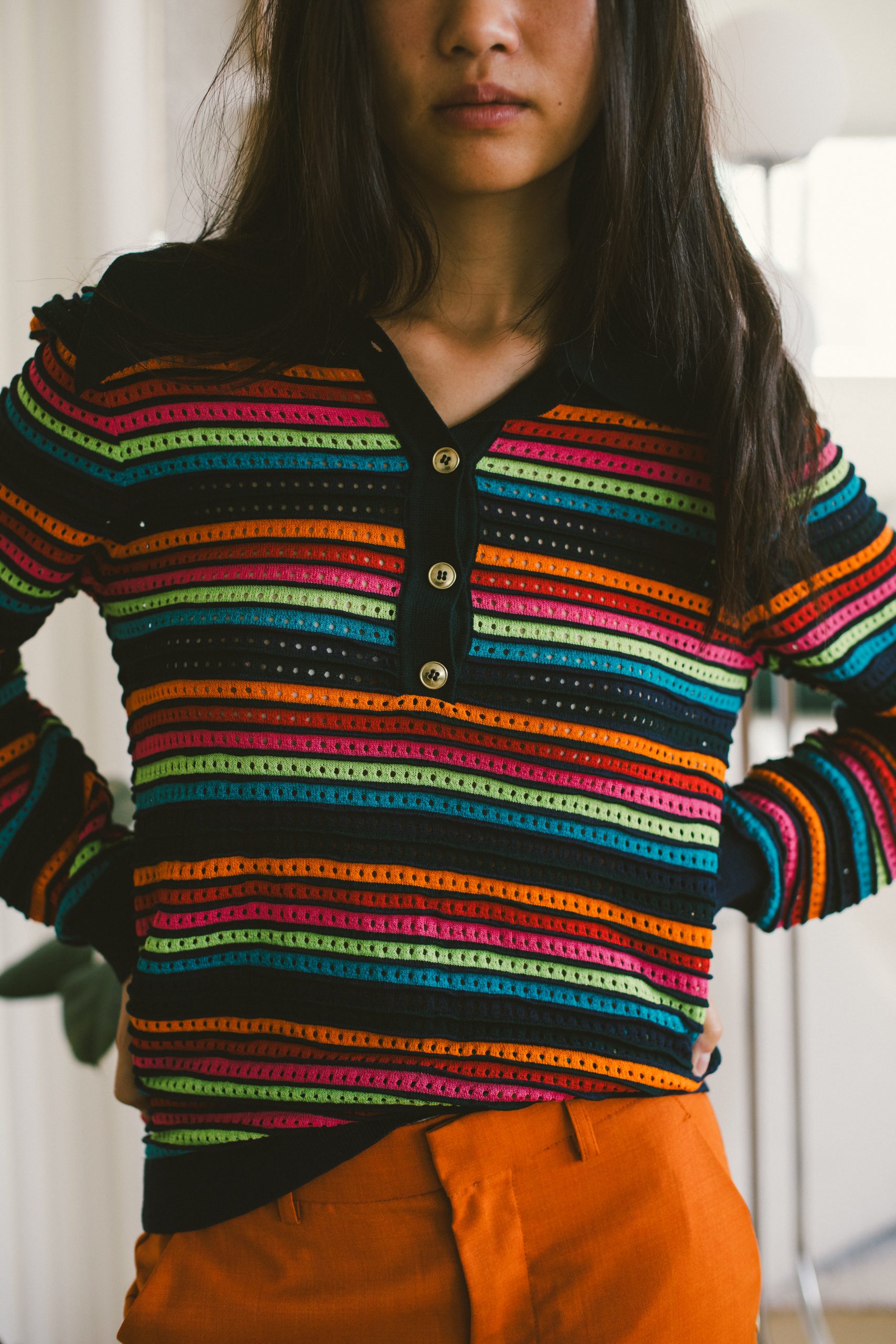 Jersey rallas multicolor con cuello de polo con botones