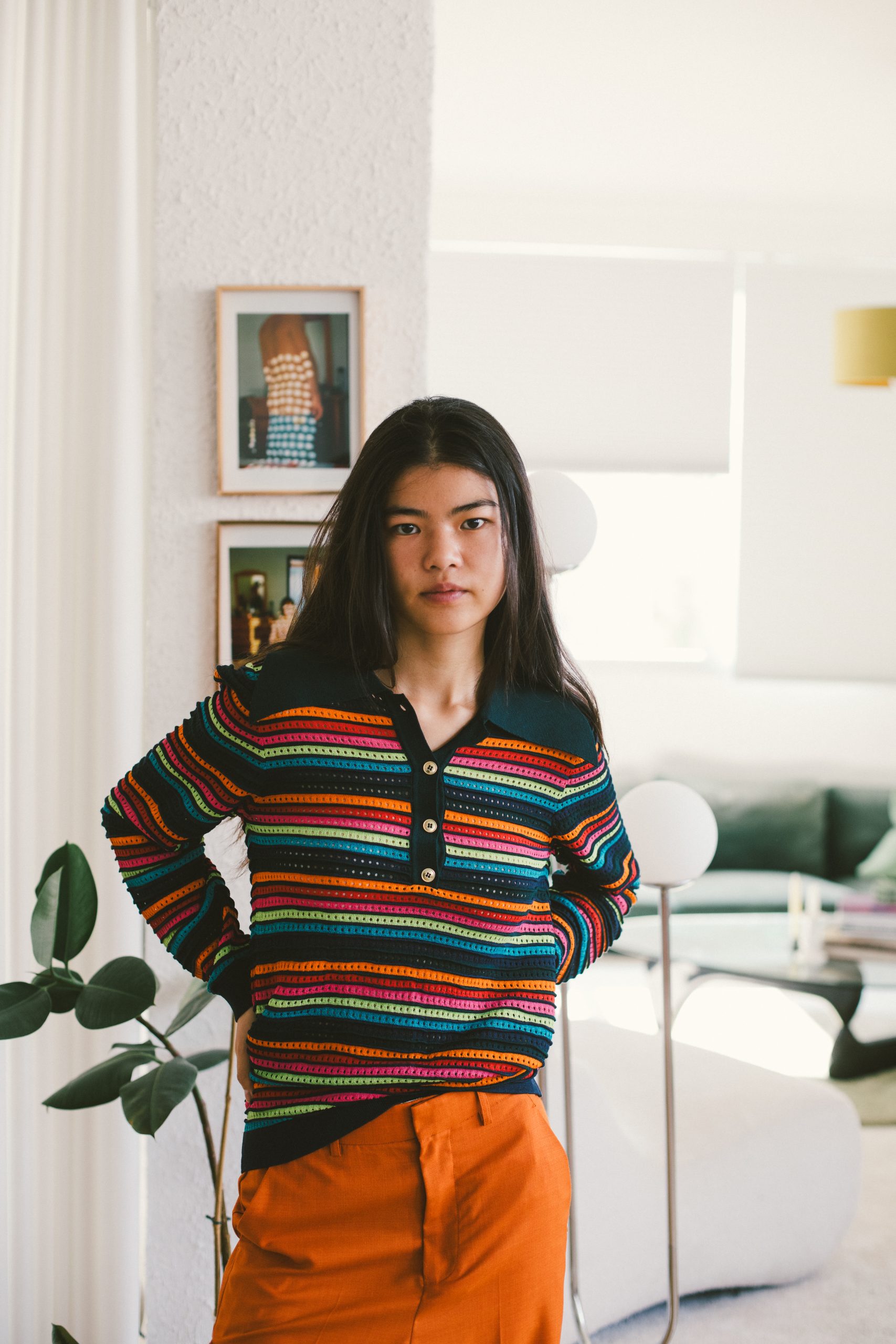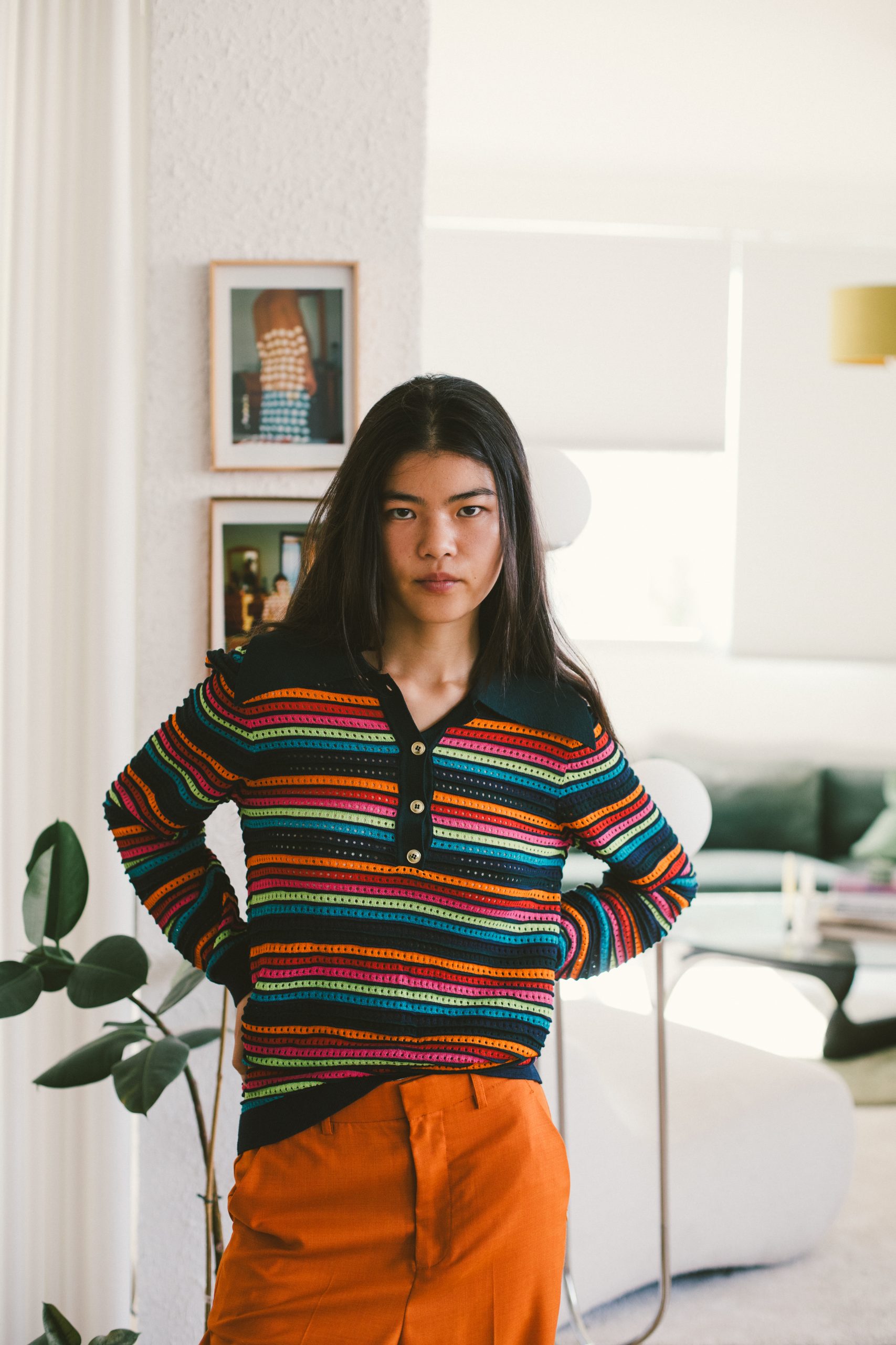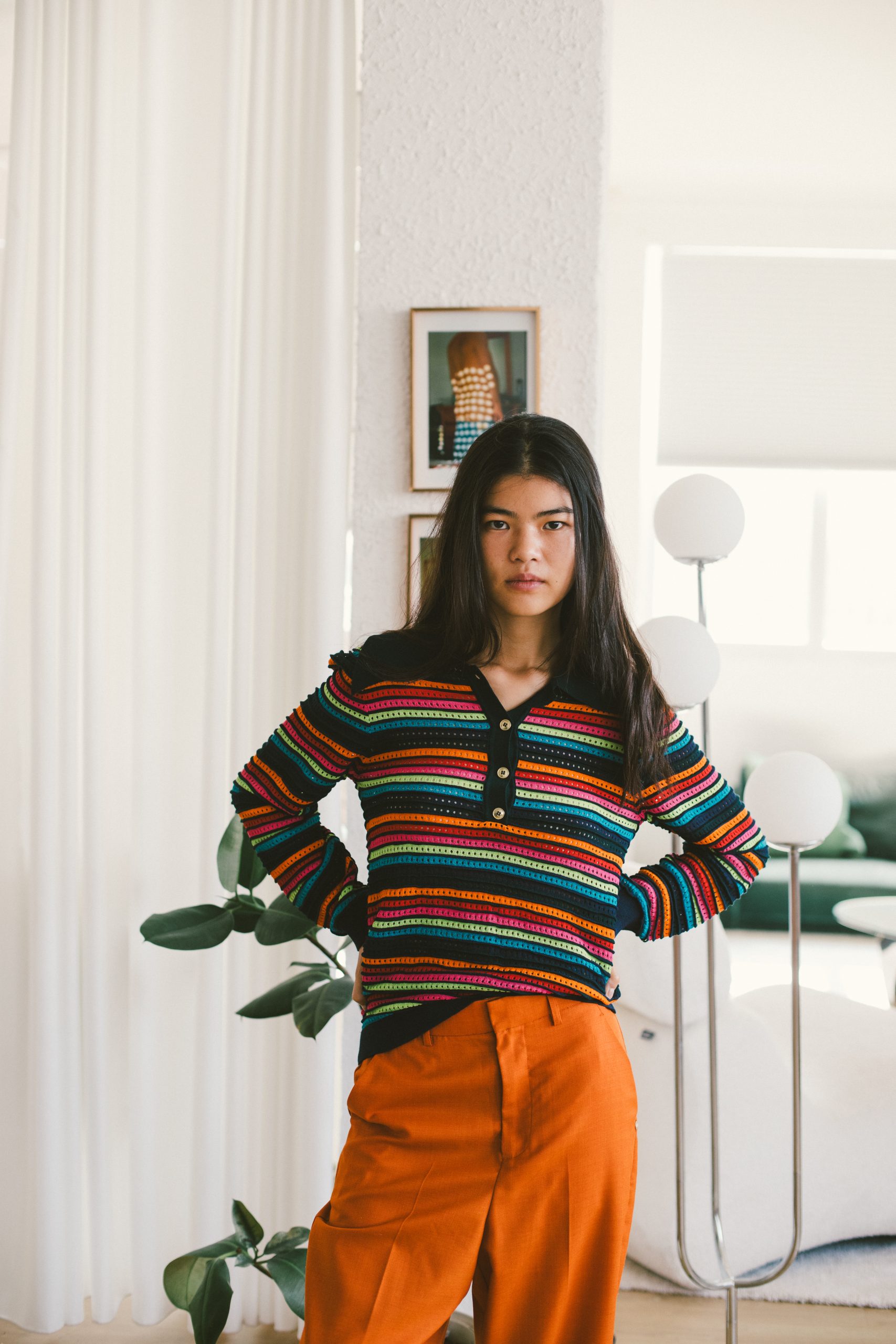 Jersey rallas multicolor con cuello de polo con botones