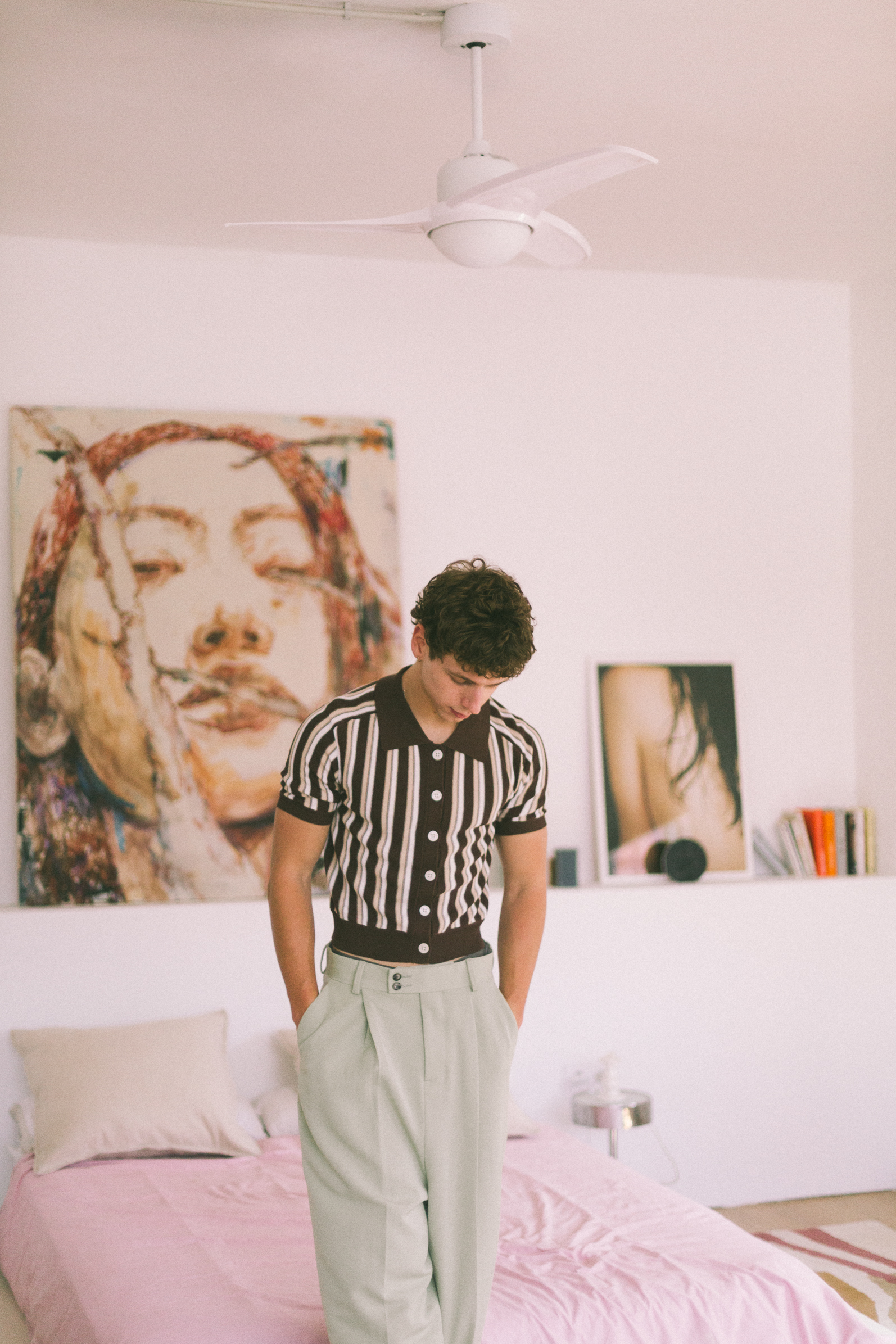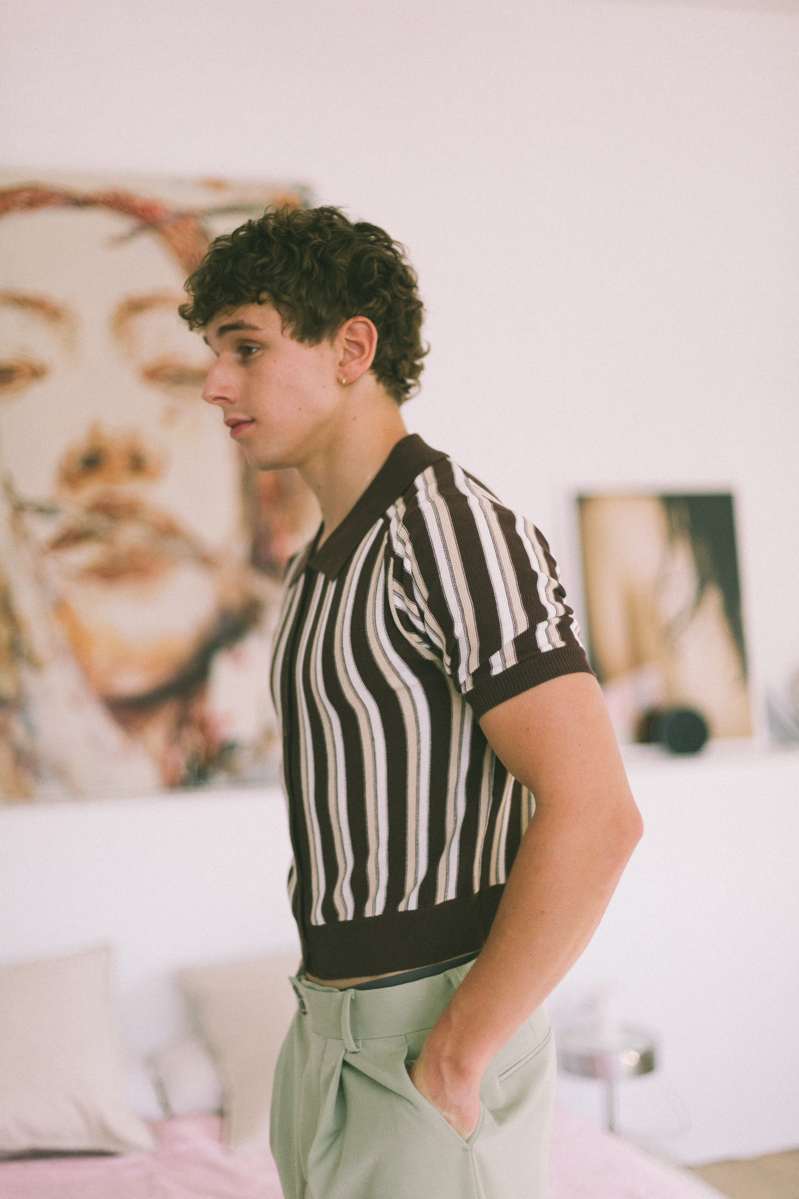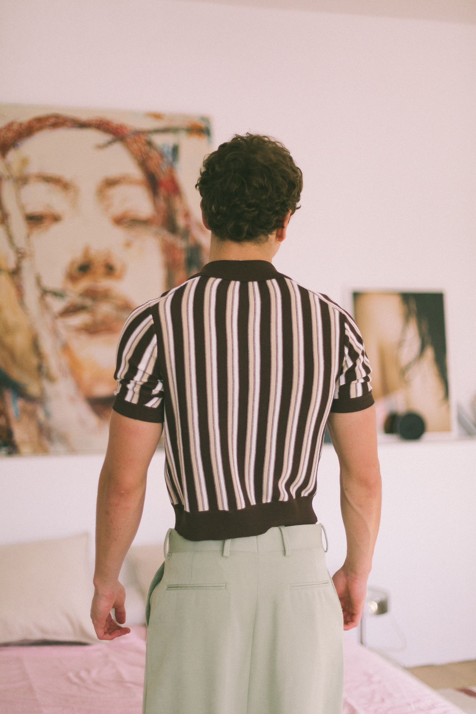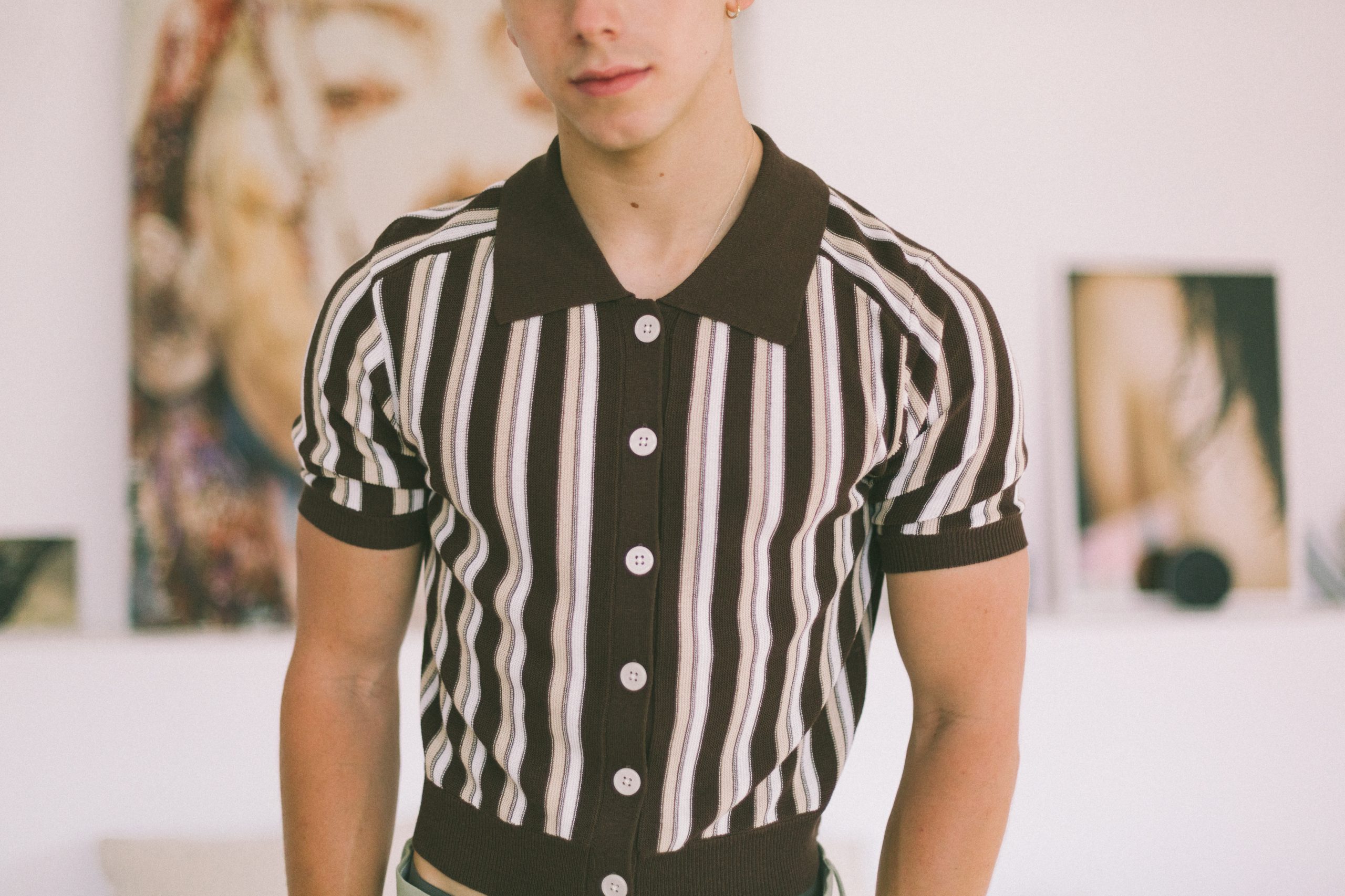 POLO CORTO MARRON RALLAS TALLA XS. ZARA