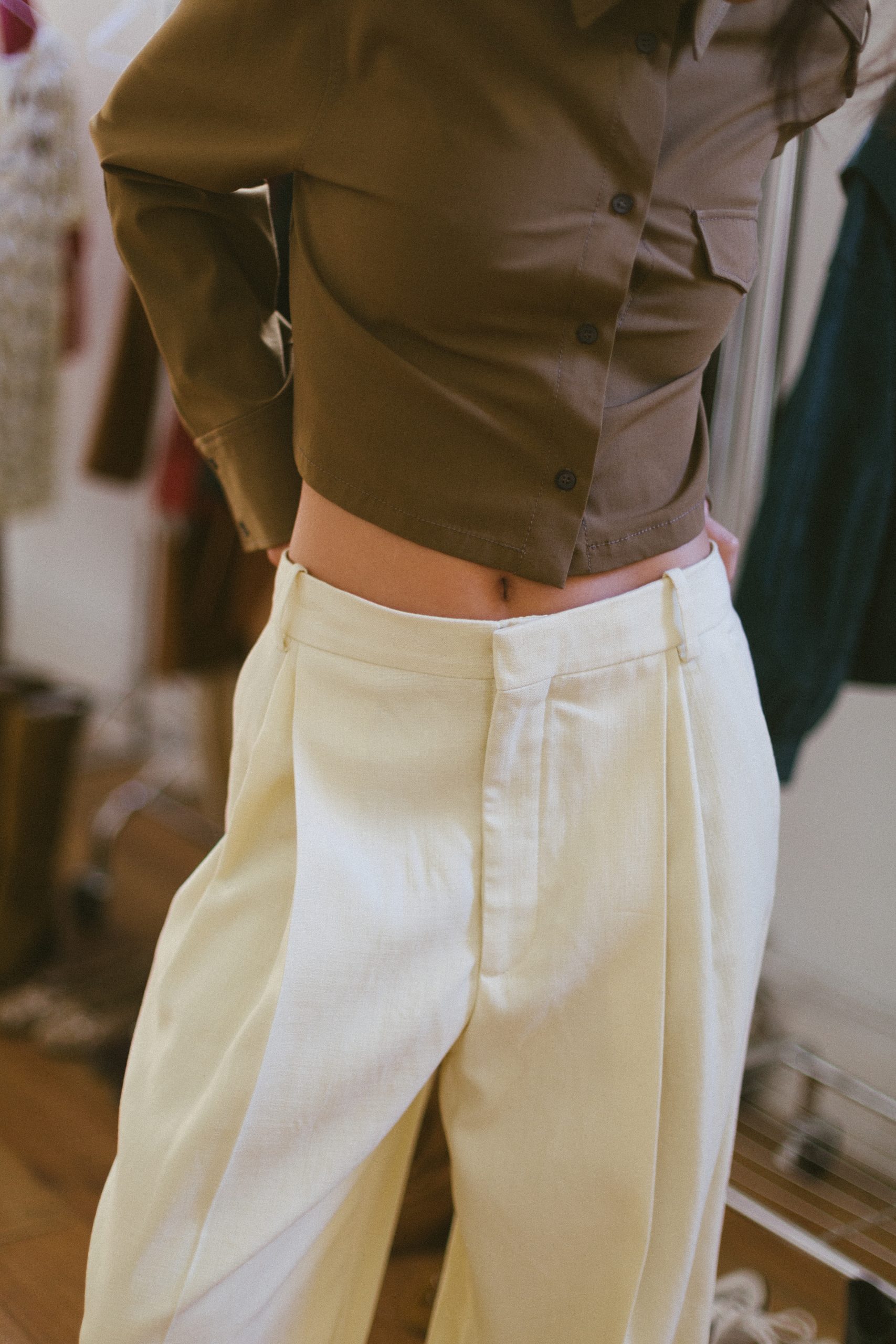 Pantalón pinzas ancho crudo