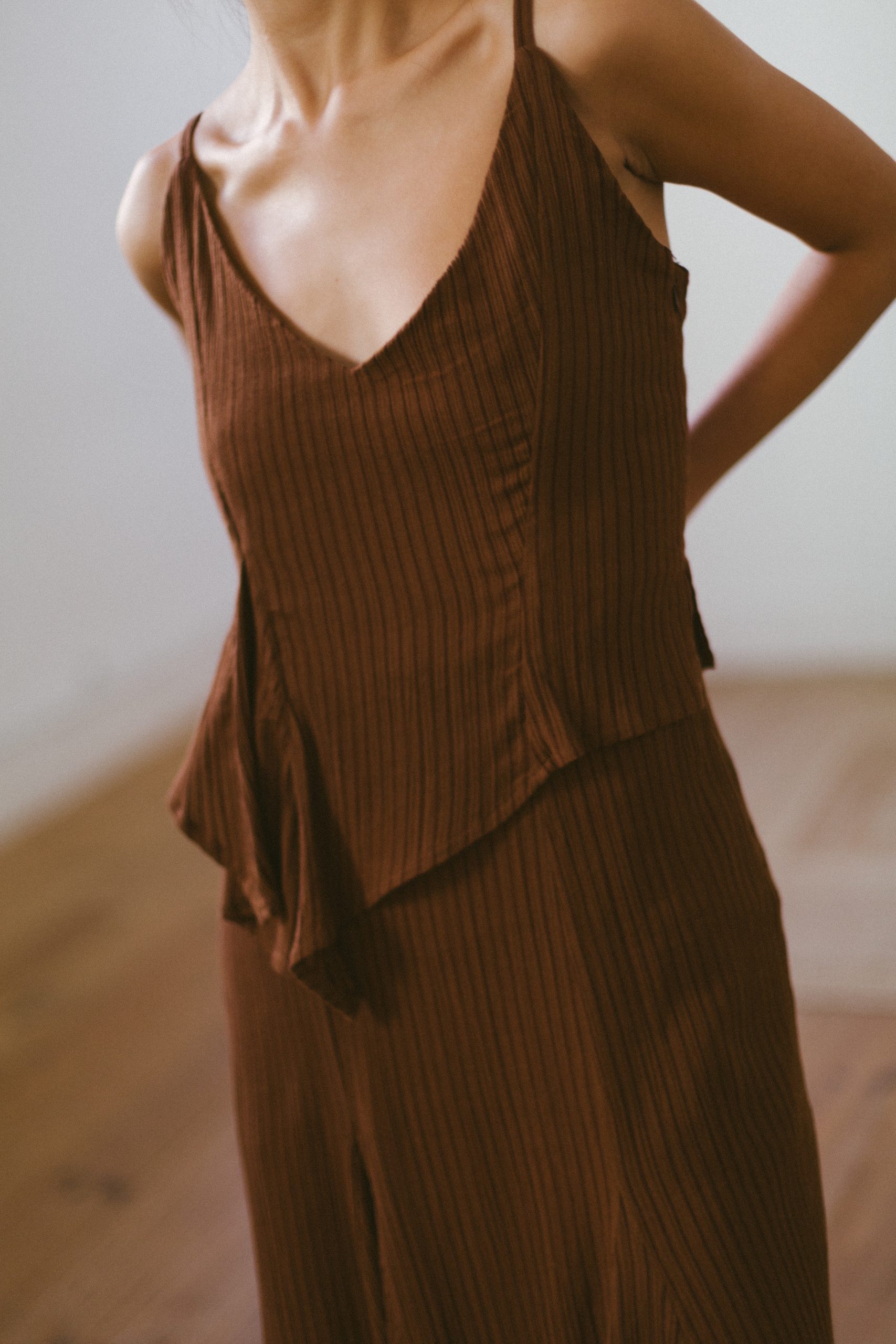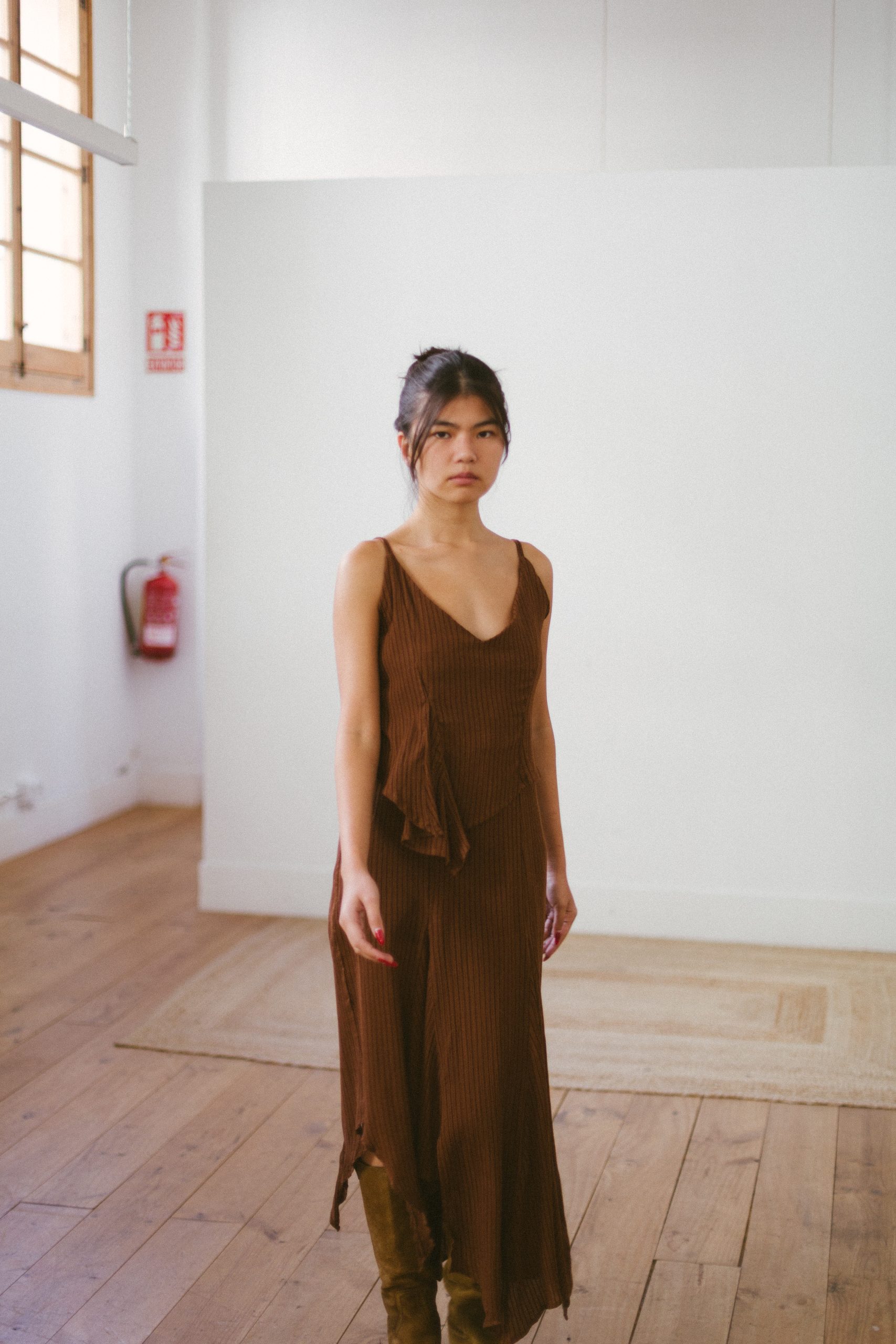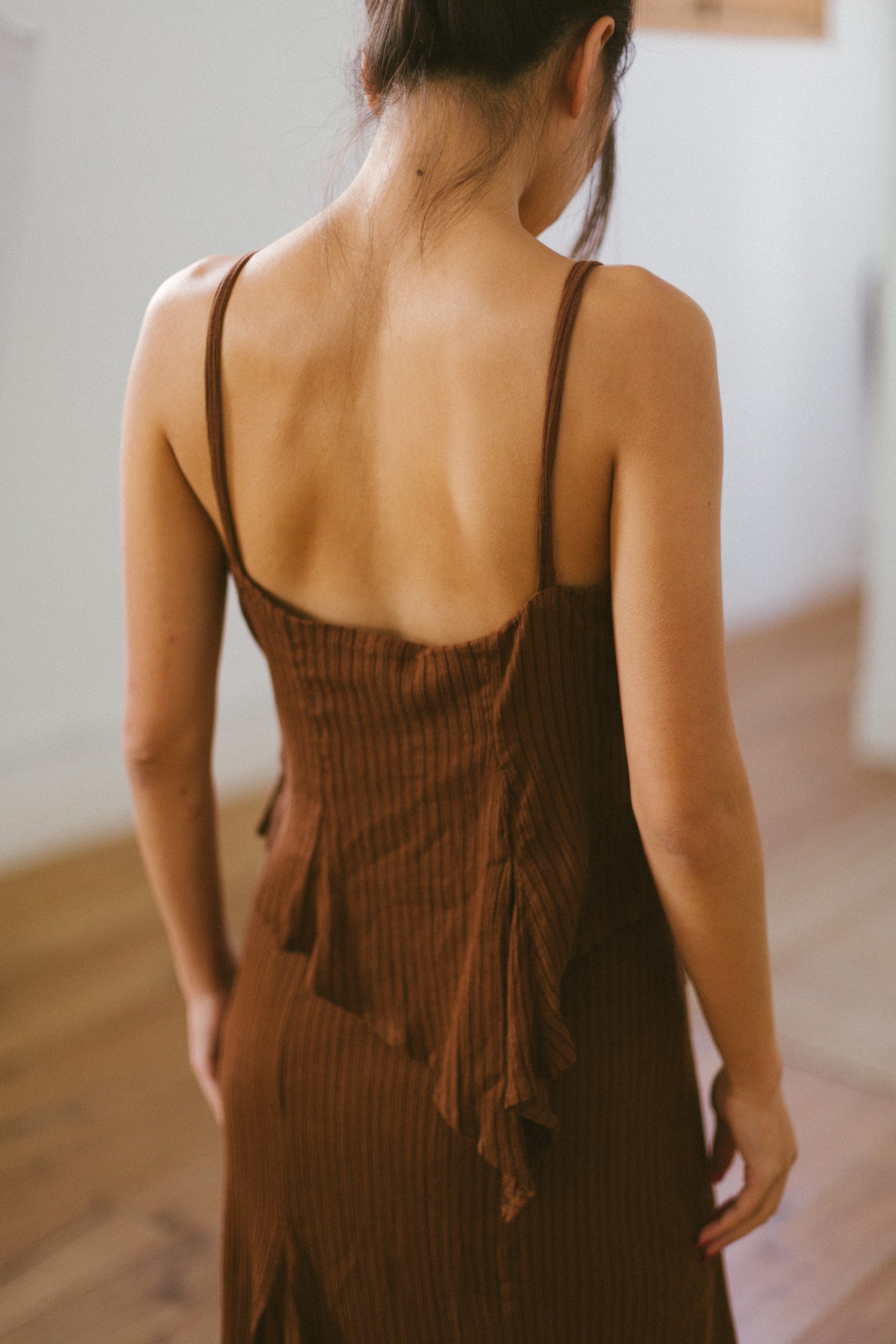 Vestido marrón asímetrico de LAAGAM