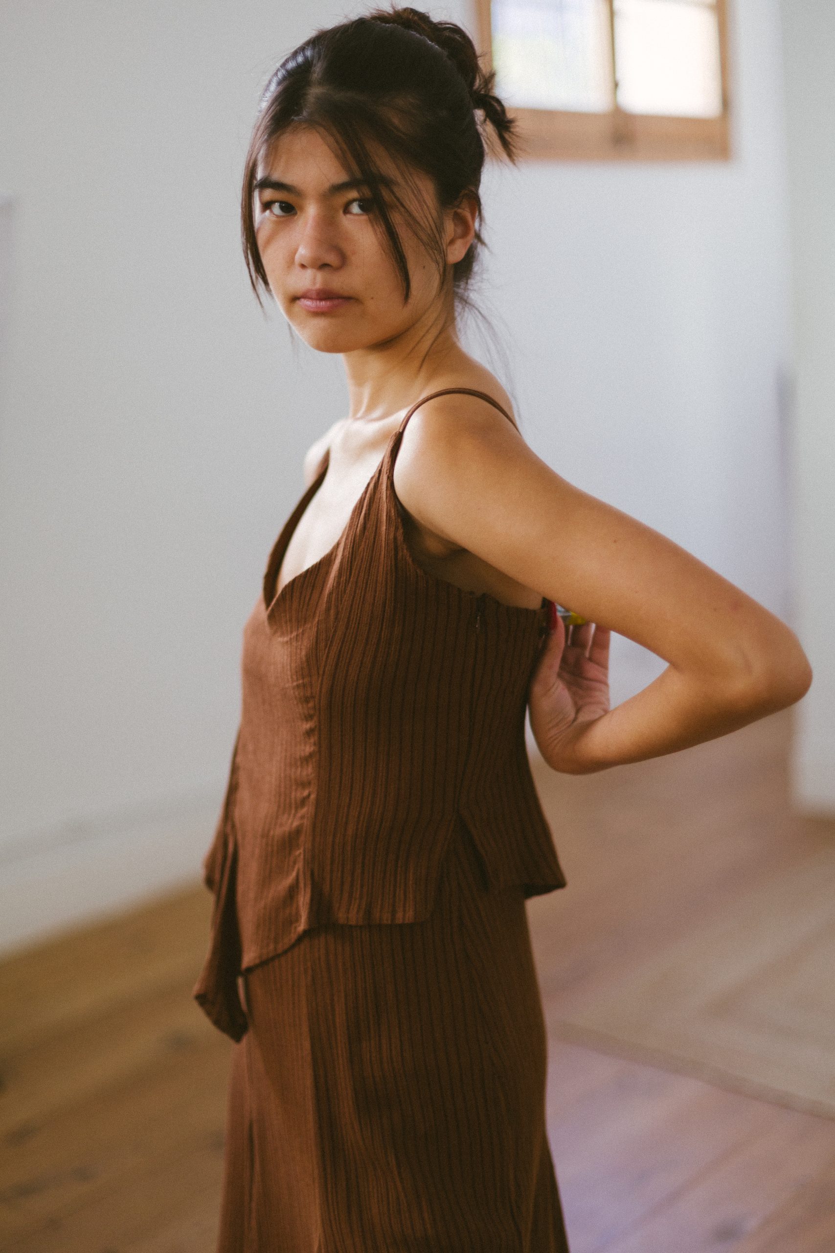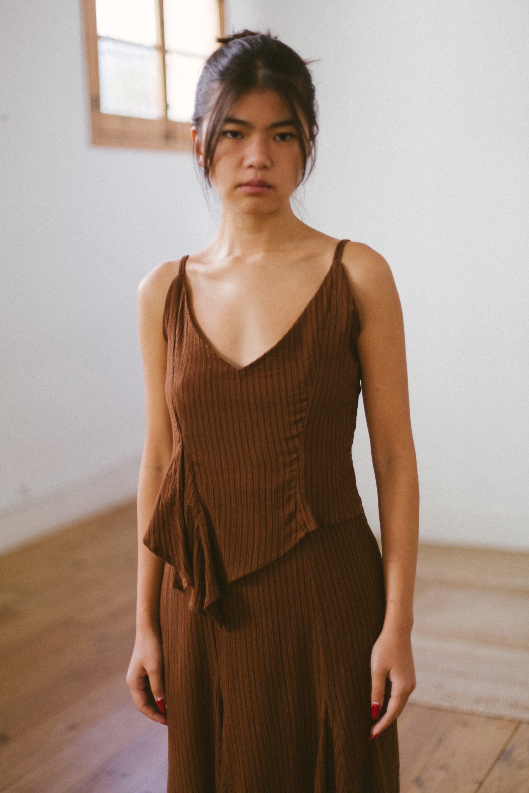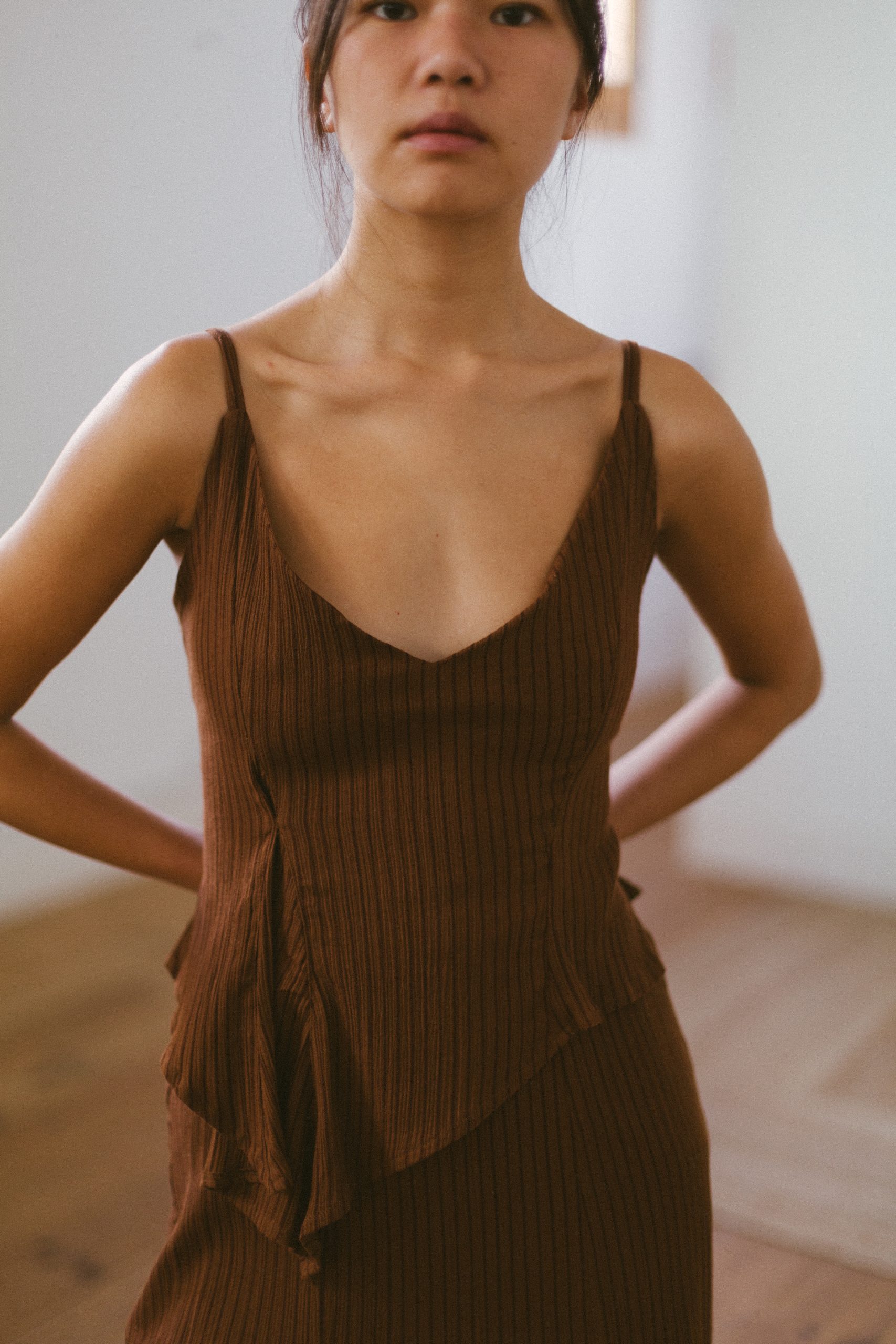 Vestido marrón asímetrico de LAAGAM