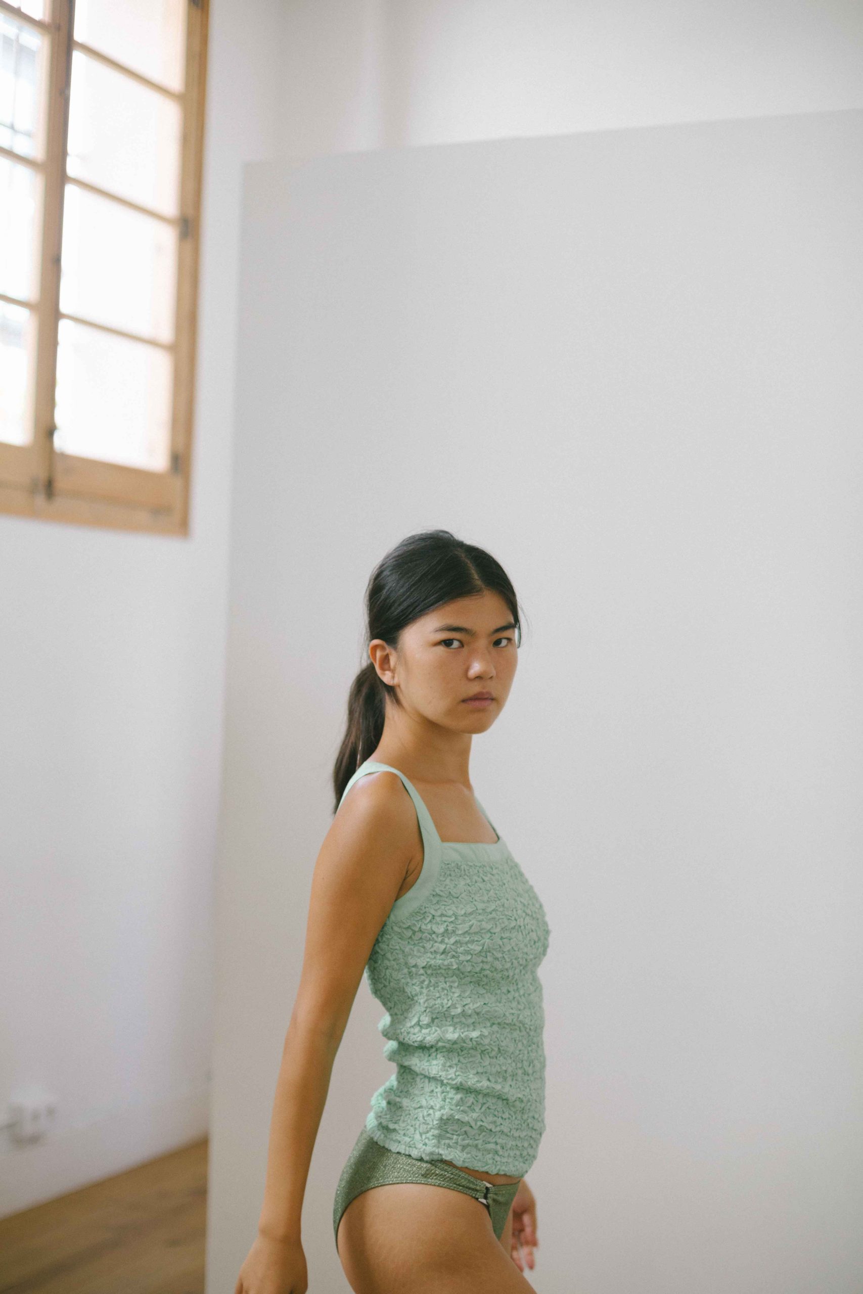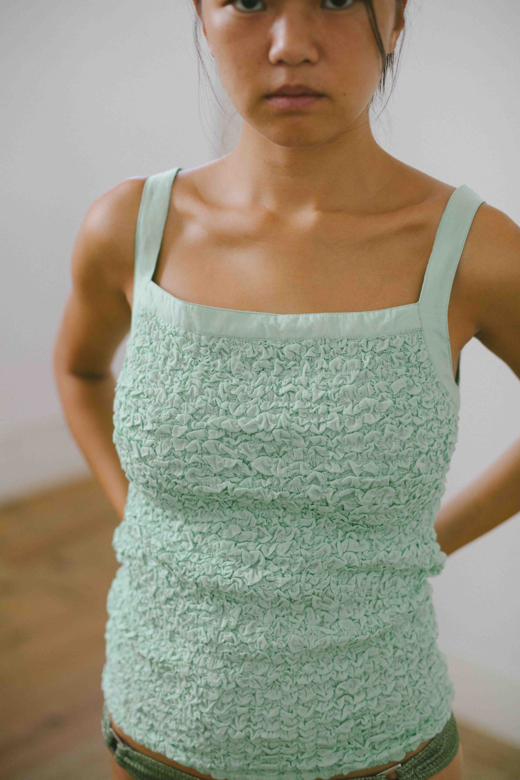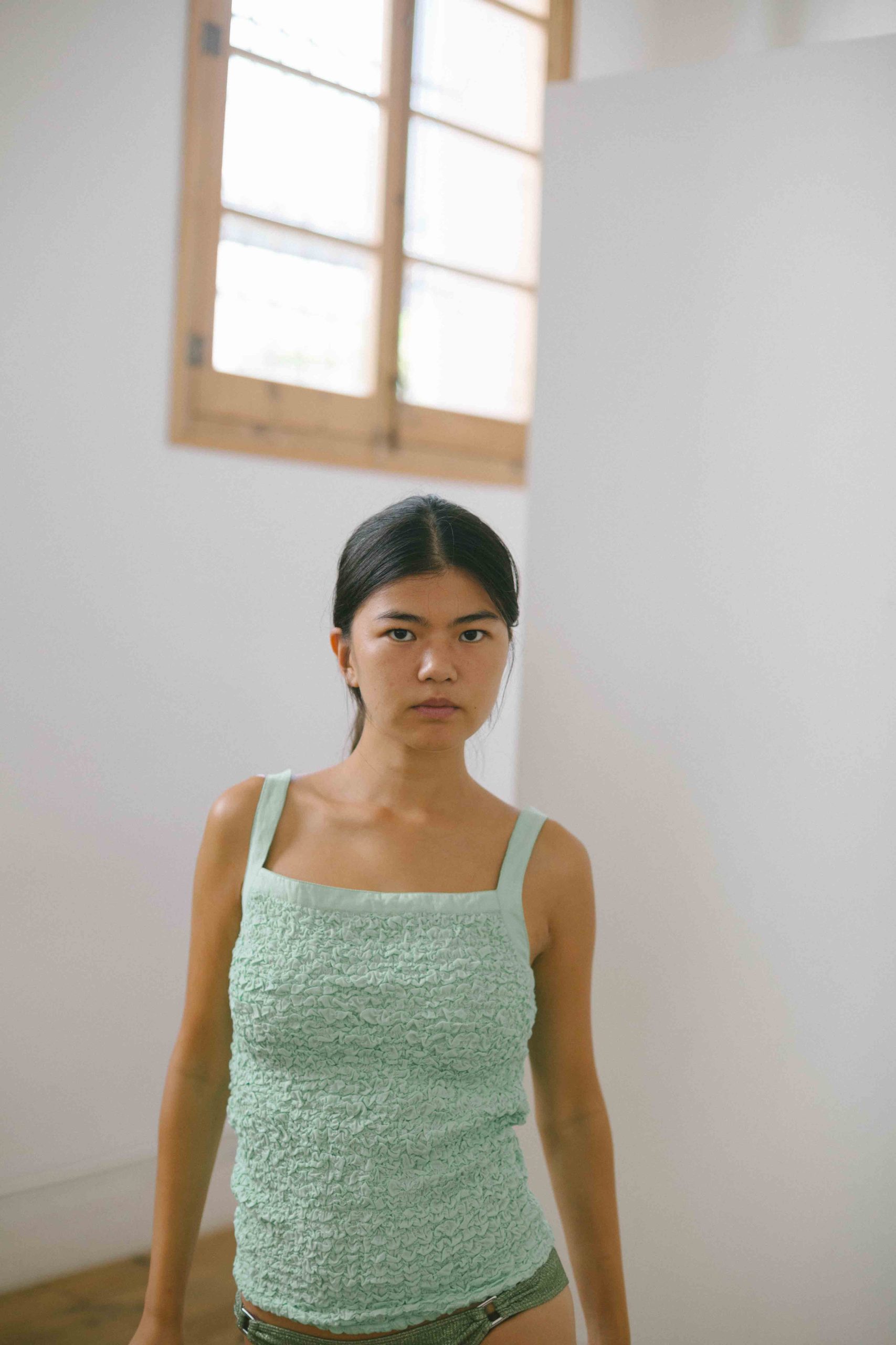 top verde agua tirantes de nido de abeja GIMAGUAS