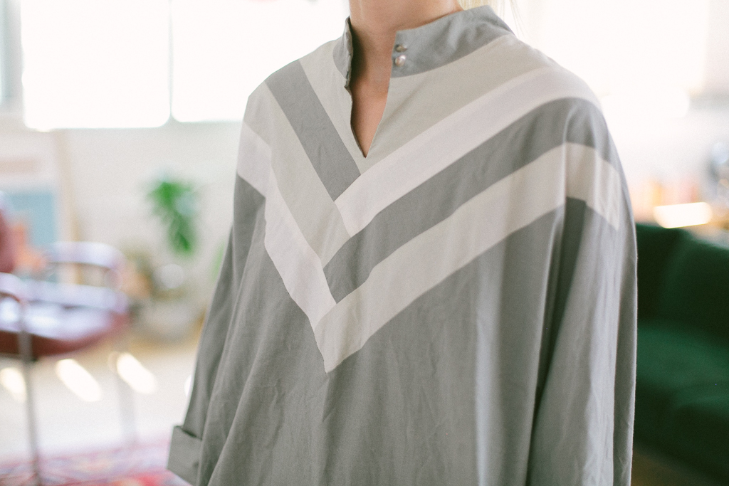 vestido años 80 estampado geométrico en v