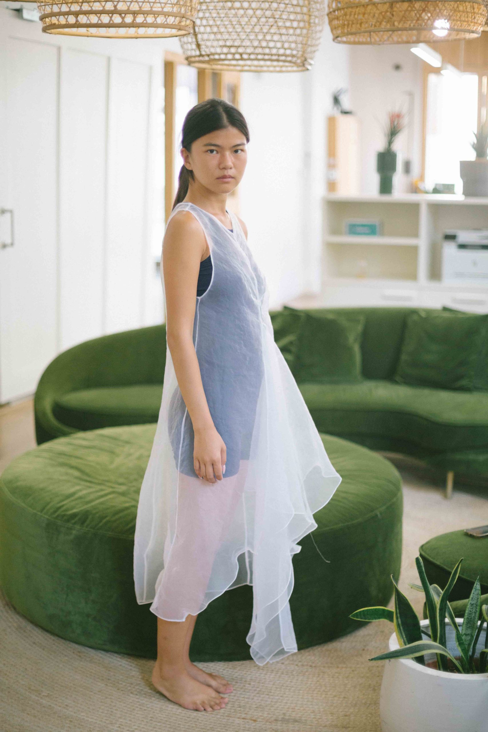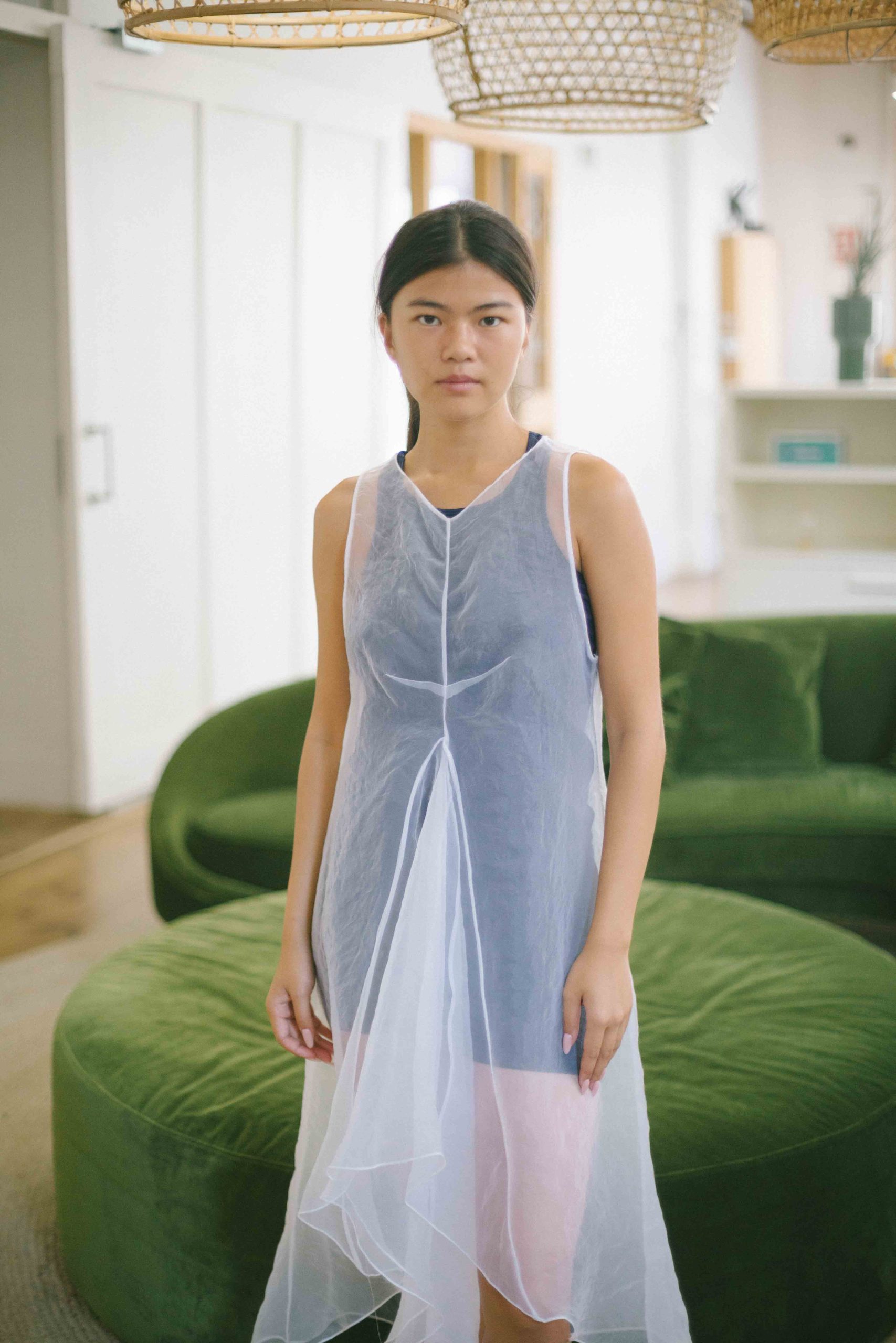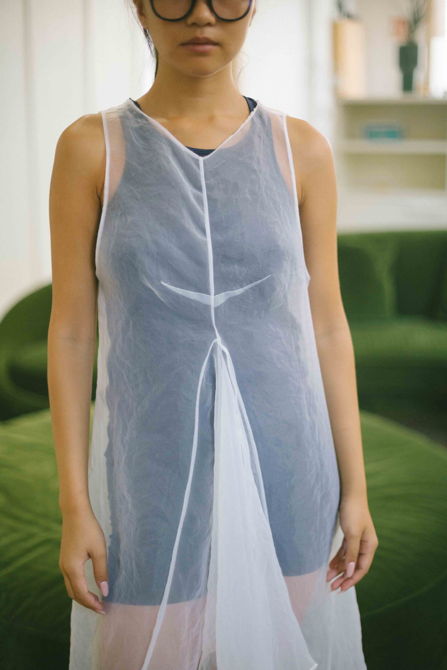 vestido blanco gasa transparente