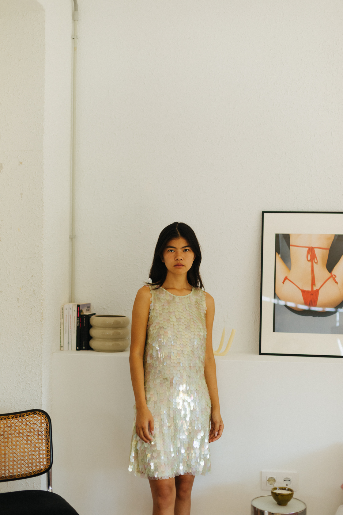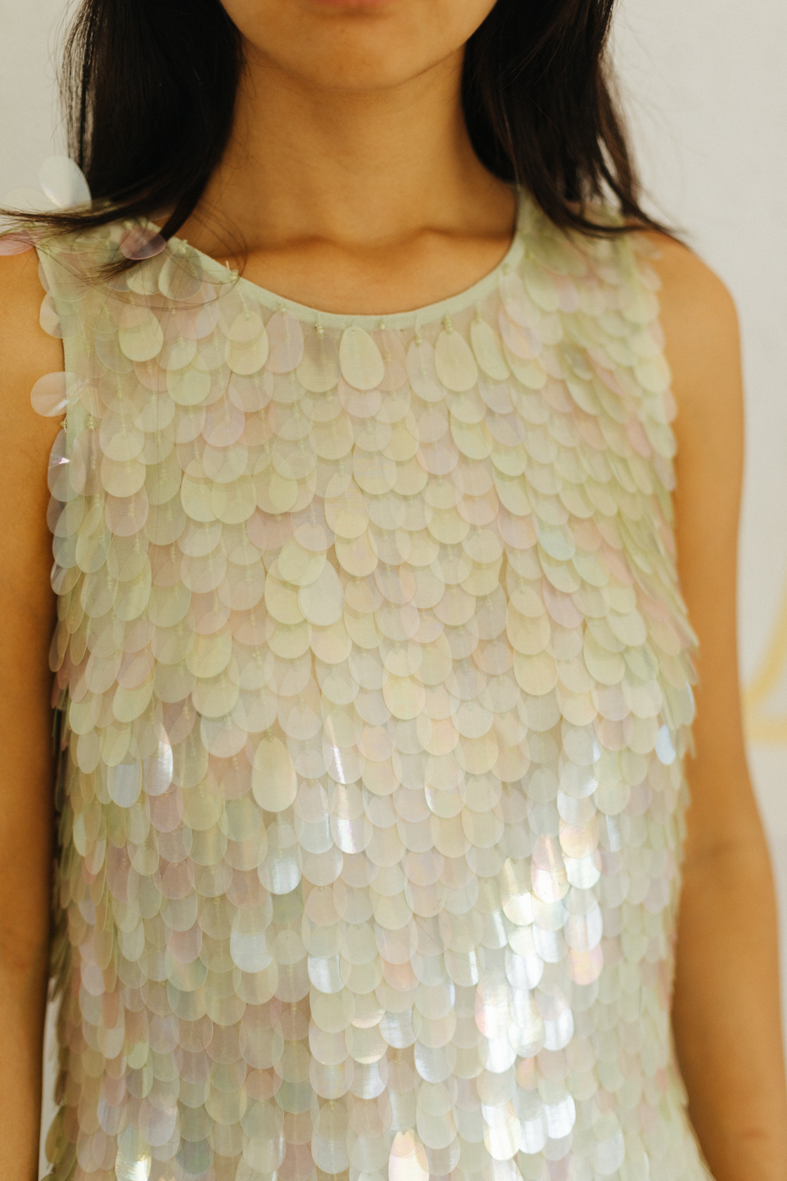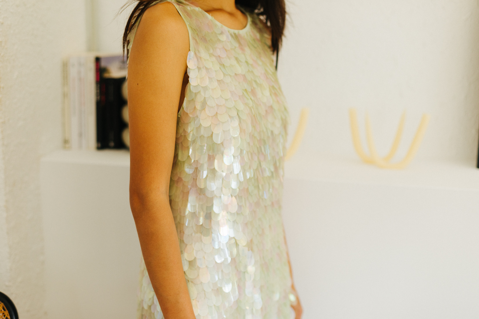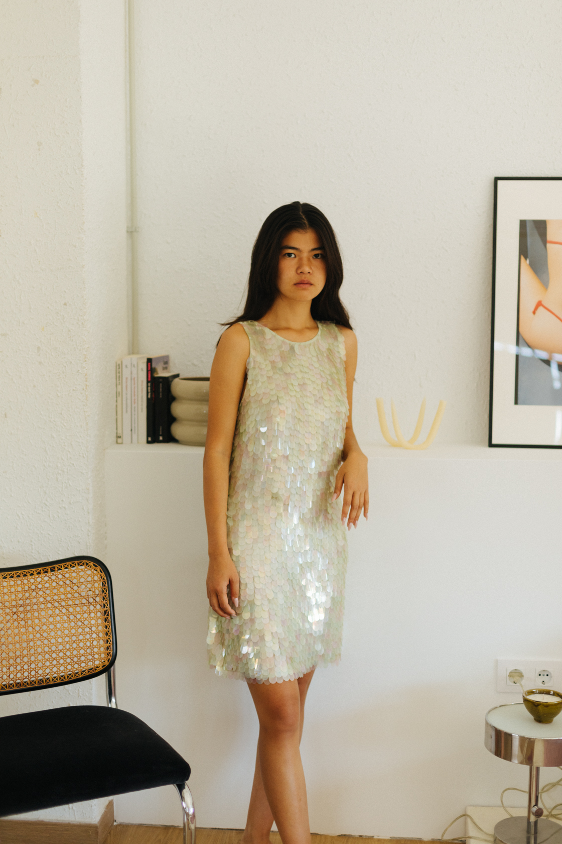 Vestido corto recto de lentejuelas grandes sin mangas- S – Miss selfridge