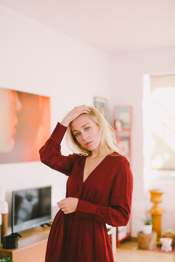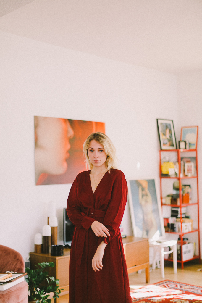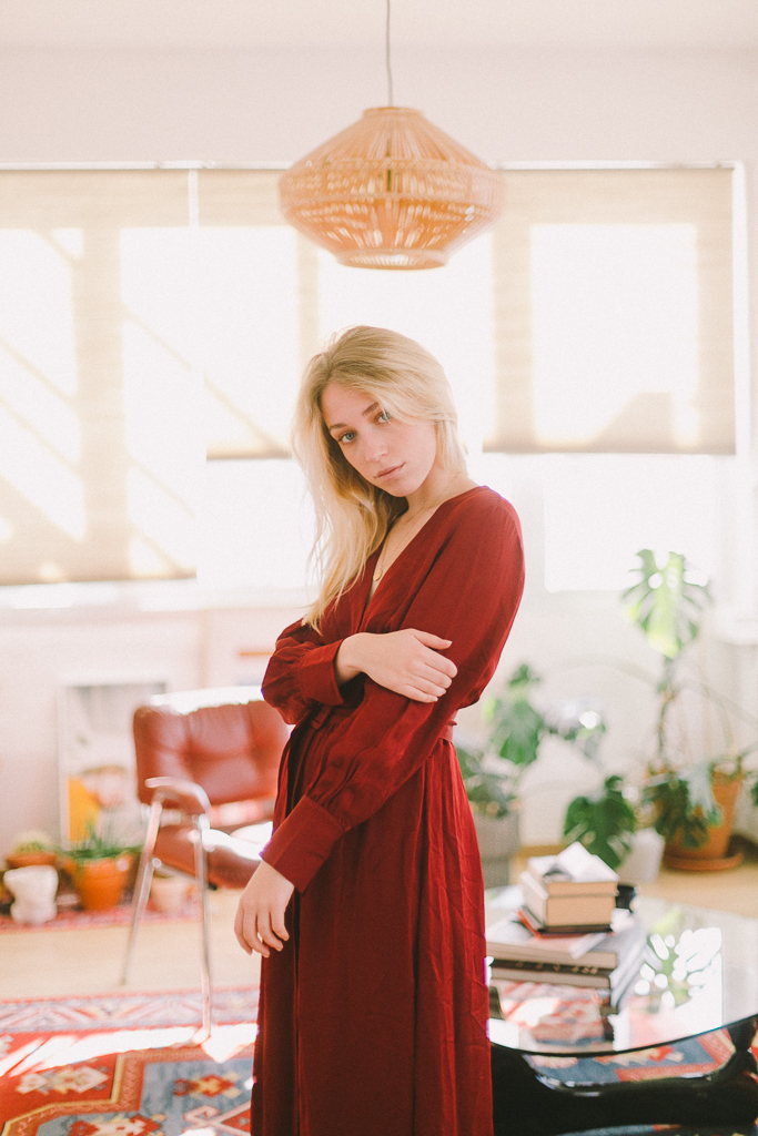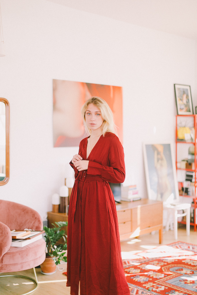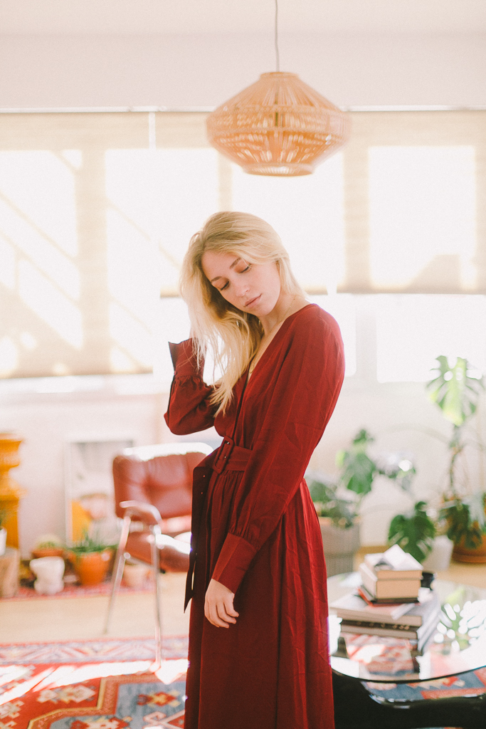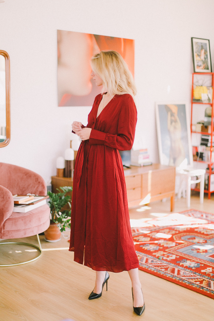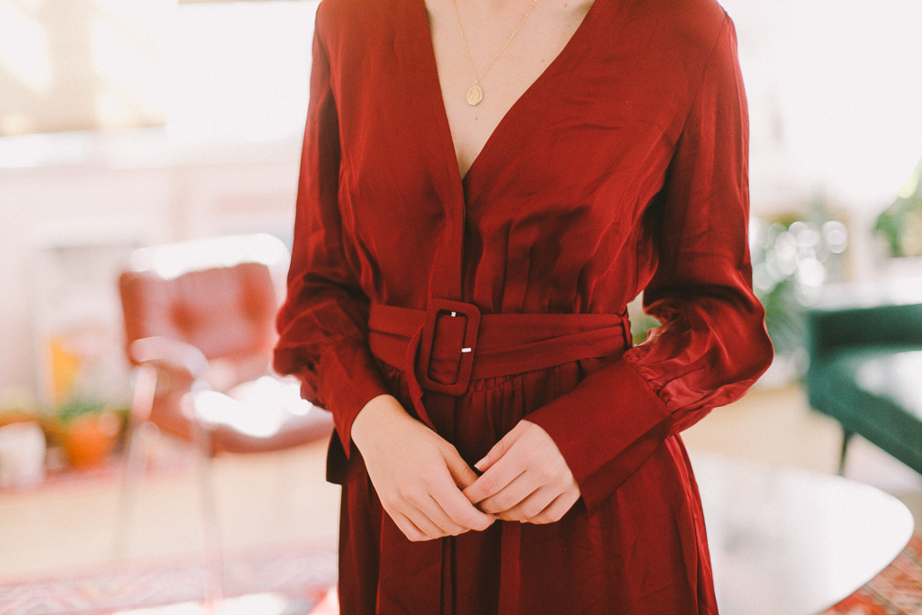 vestido cruzado con cinturón teja