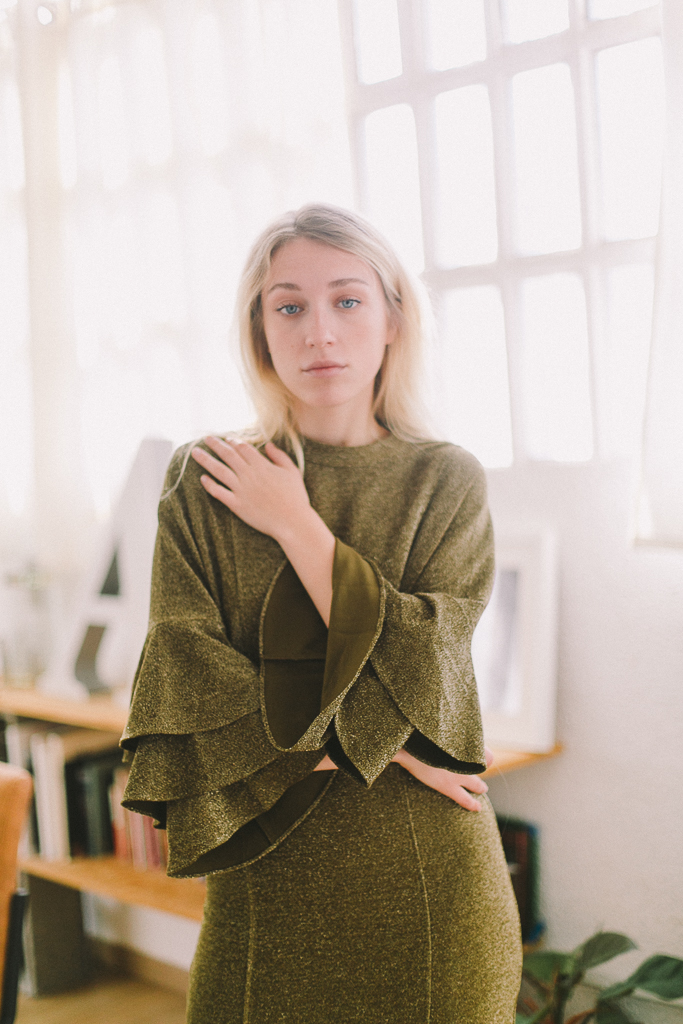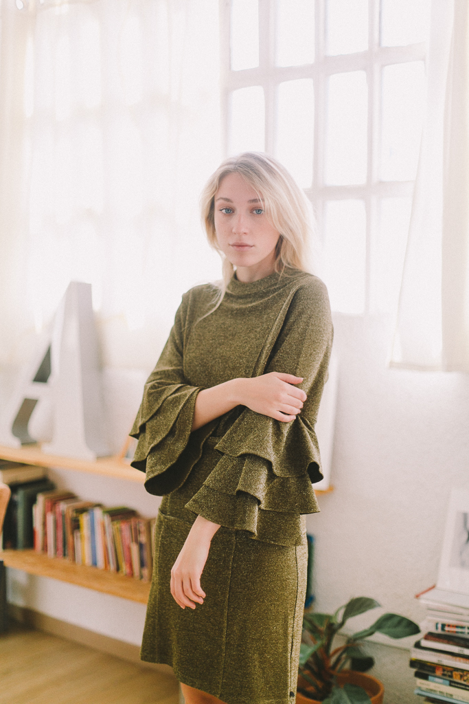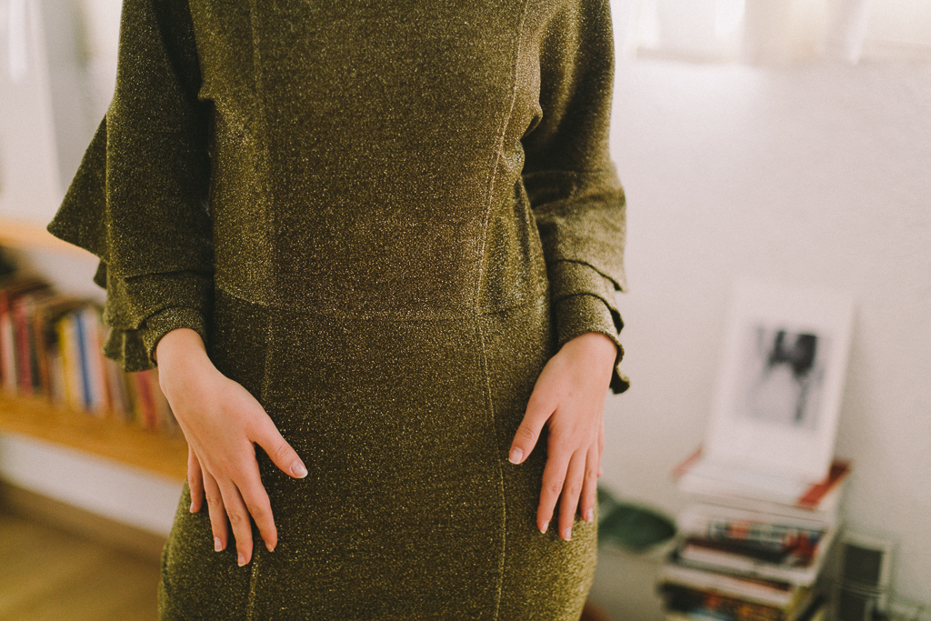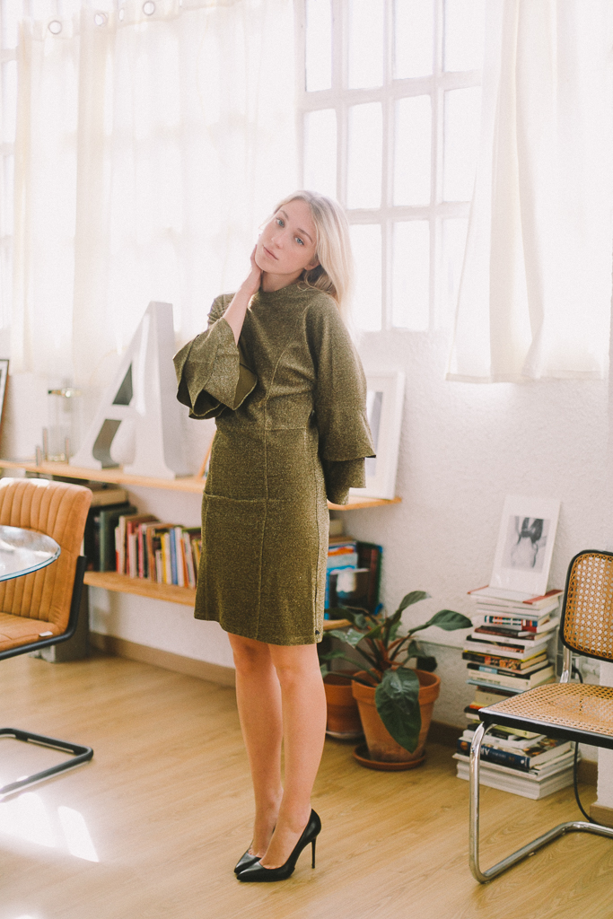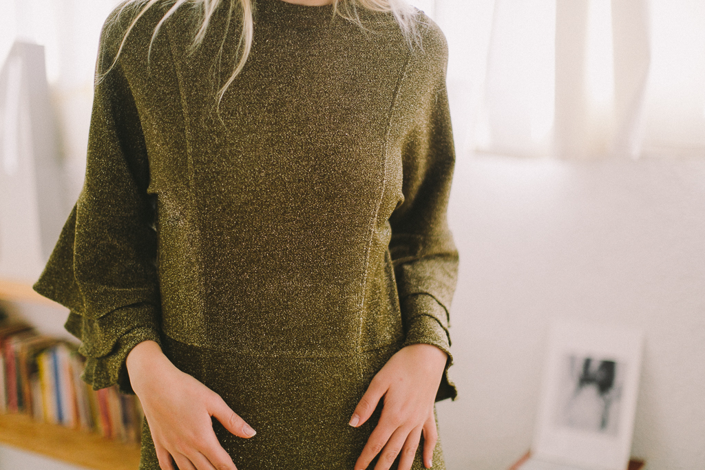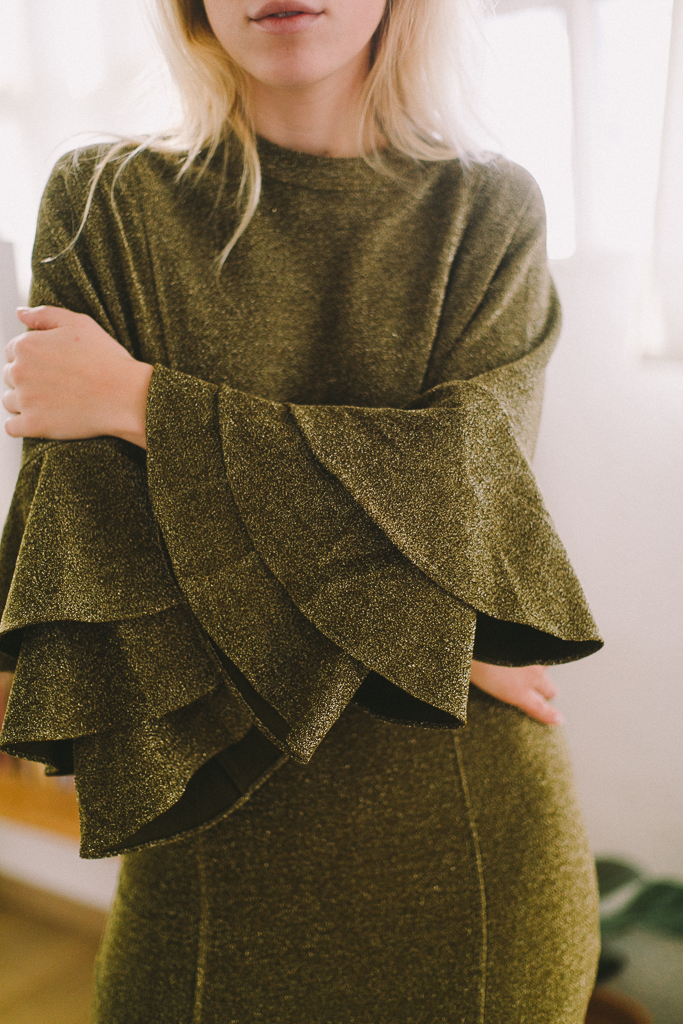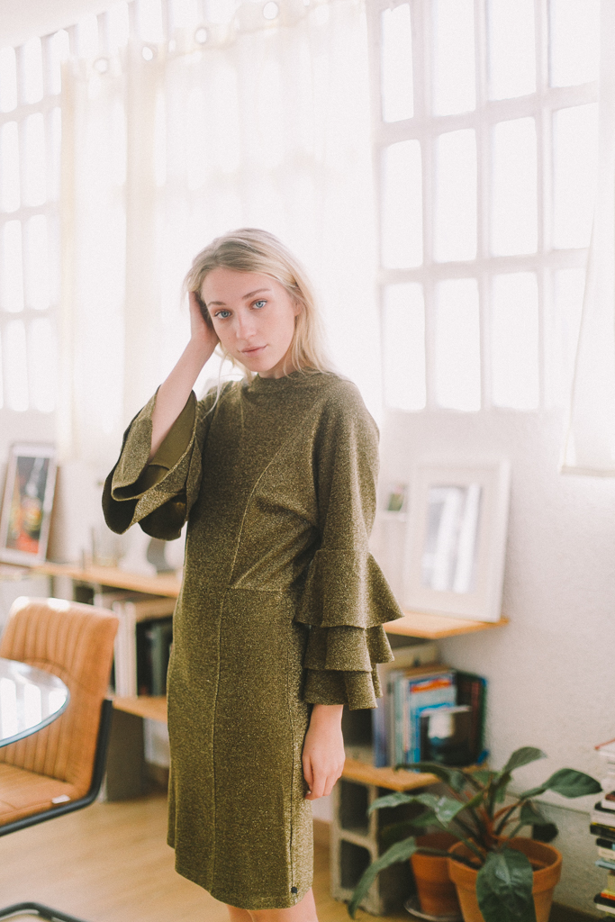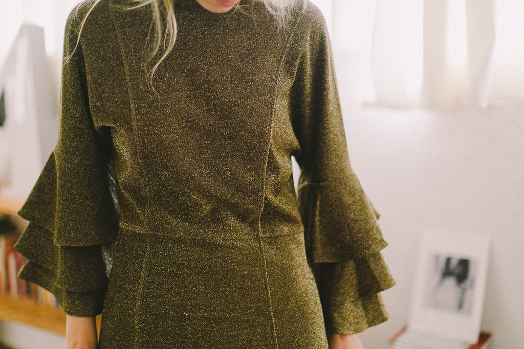 vestido dorado viejo con volantes manga de MAISON SCOTCH