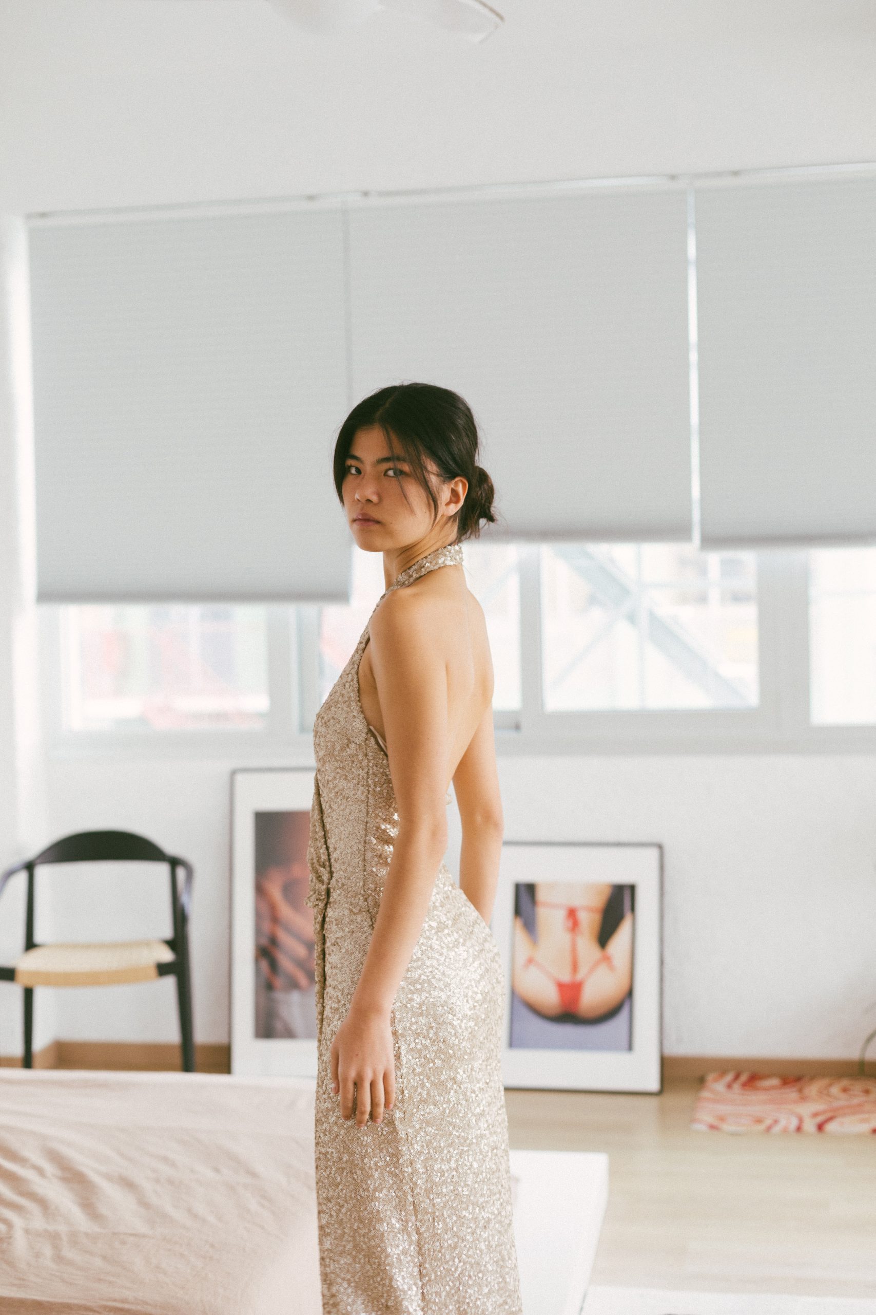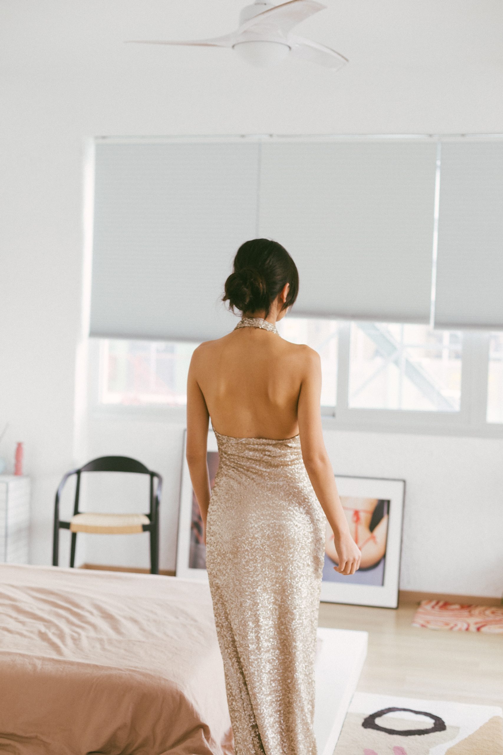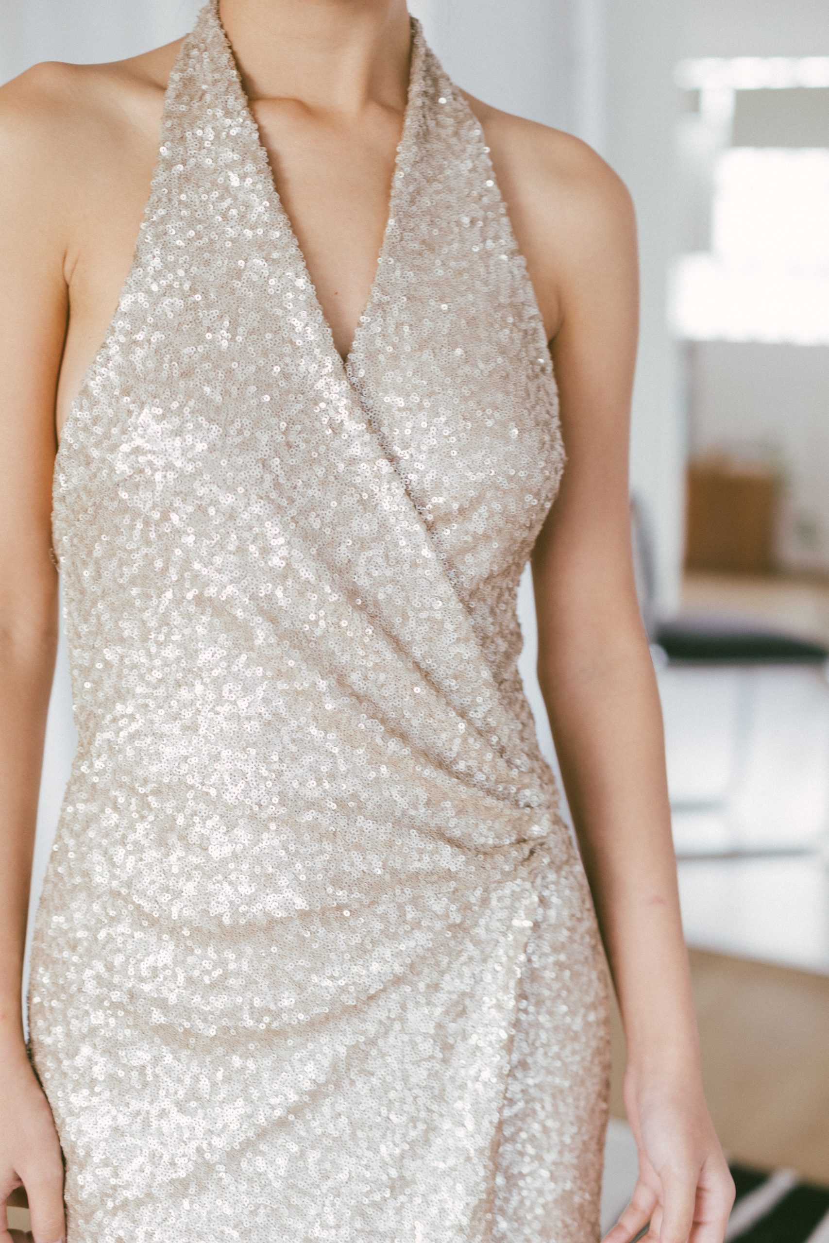 Vestido largo cuzado lentejuelas doradas