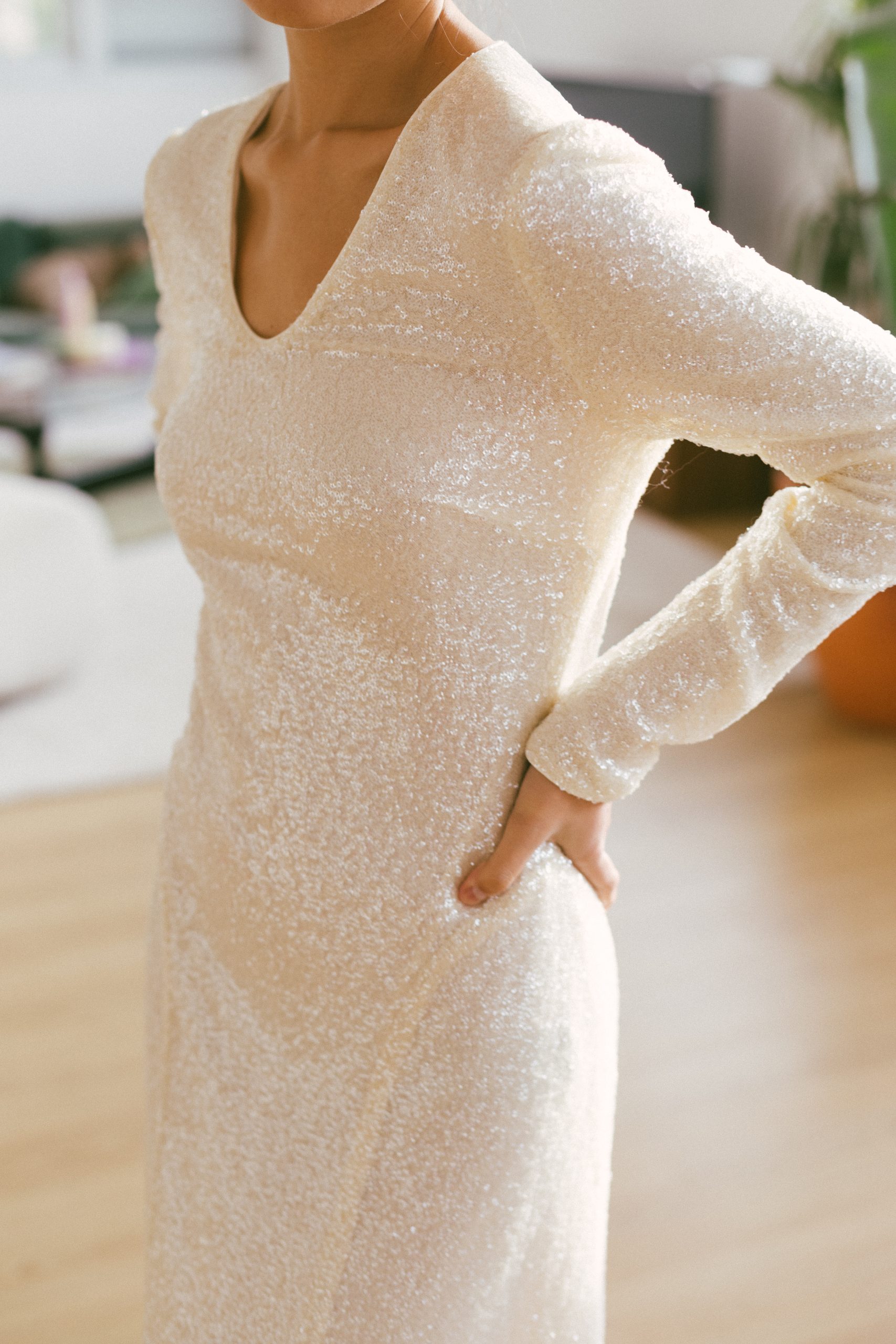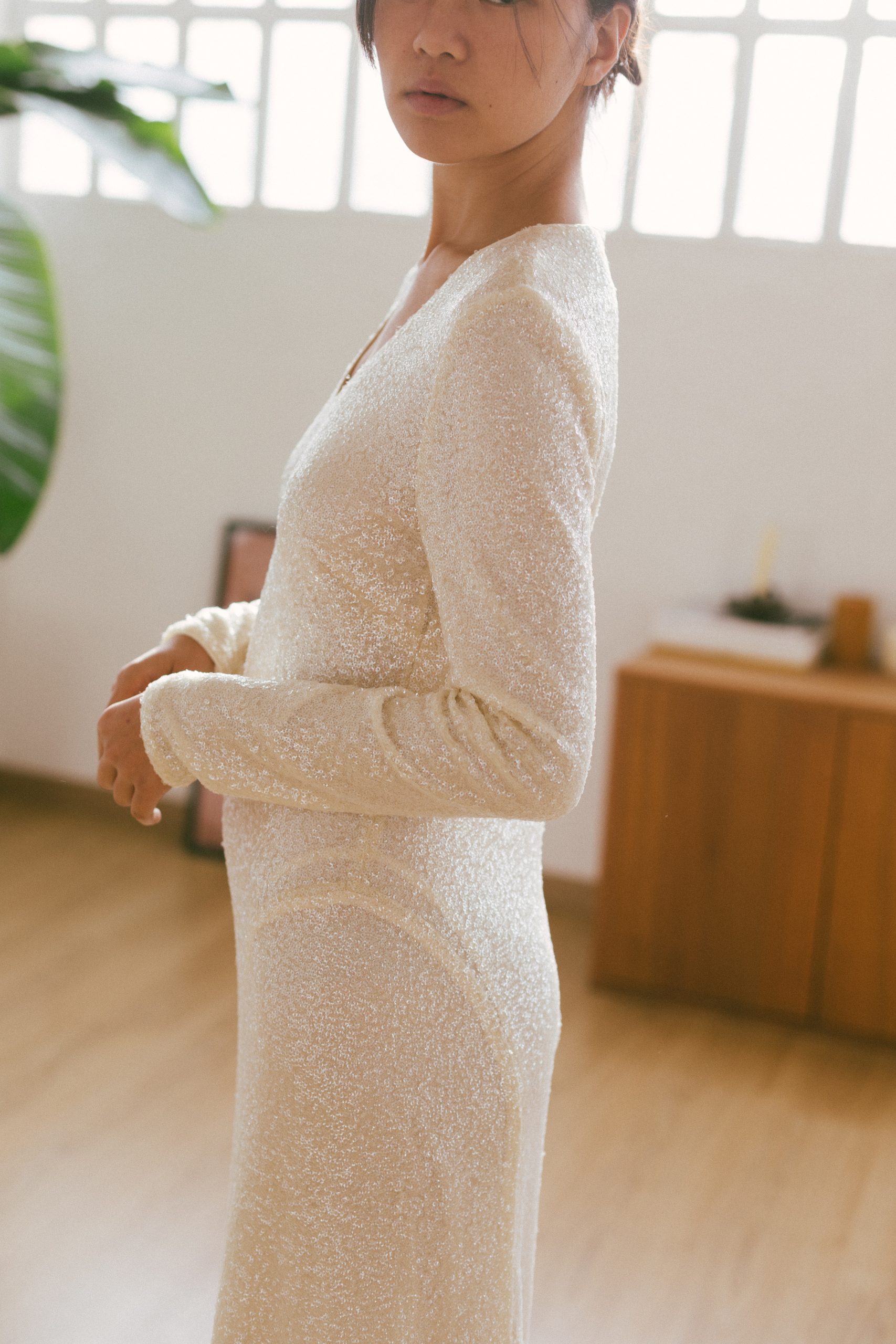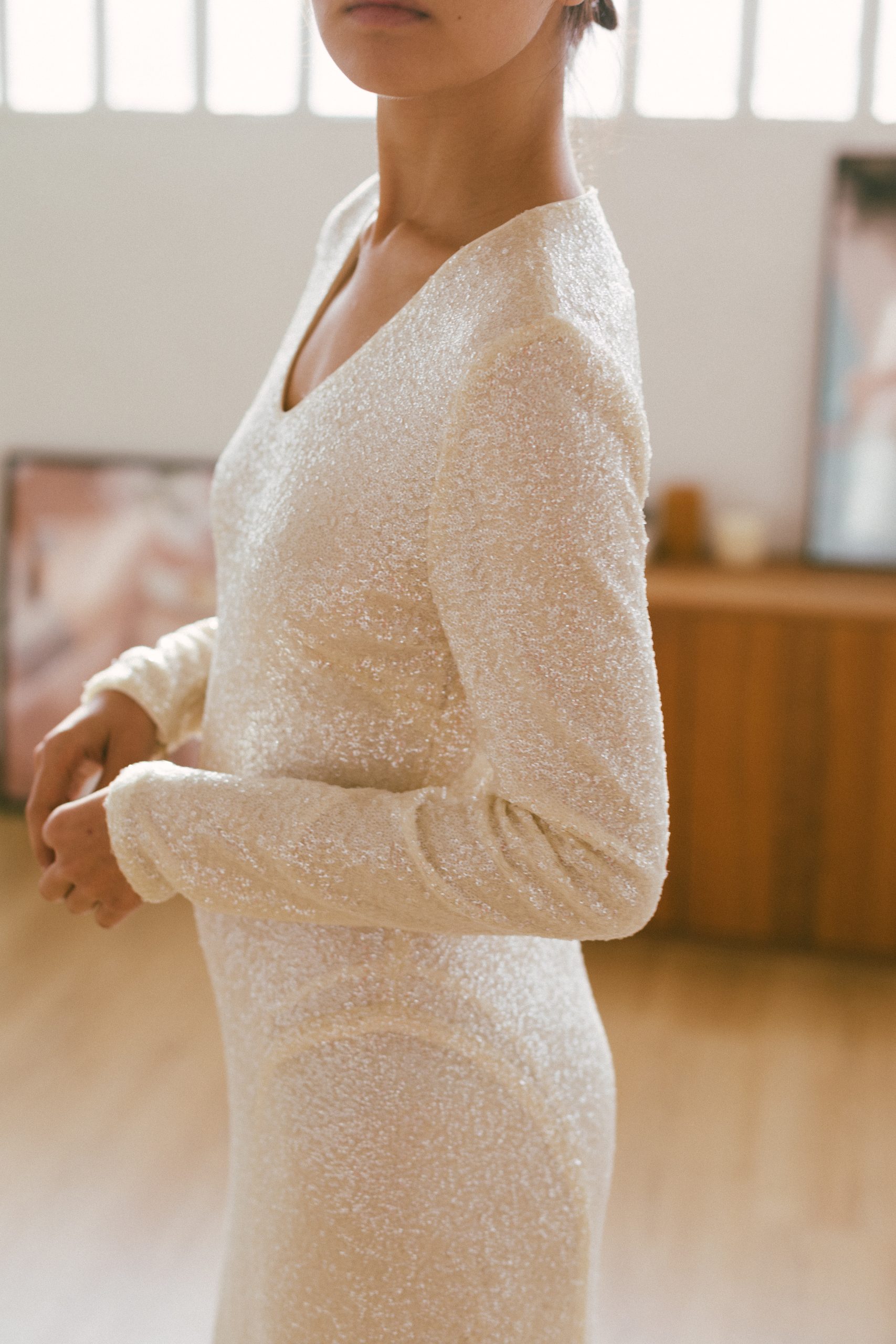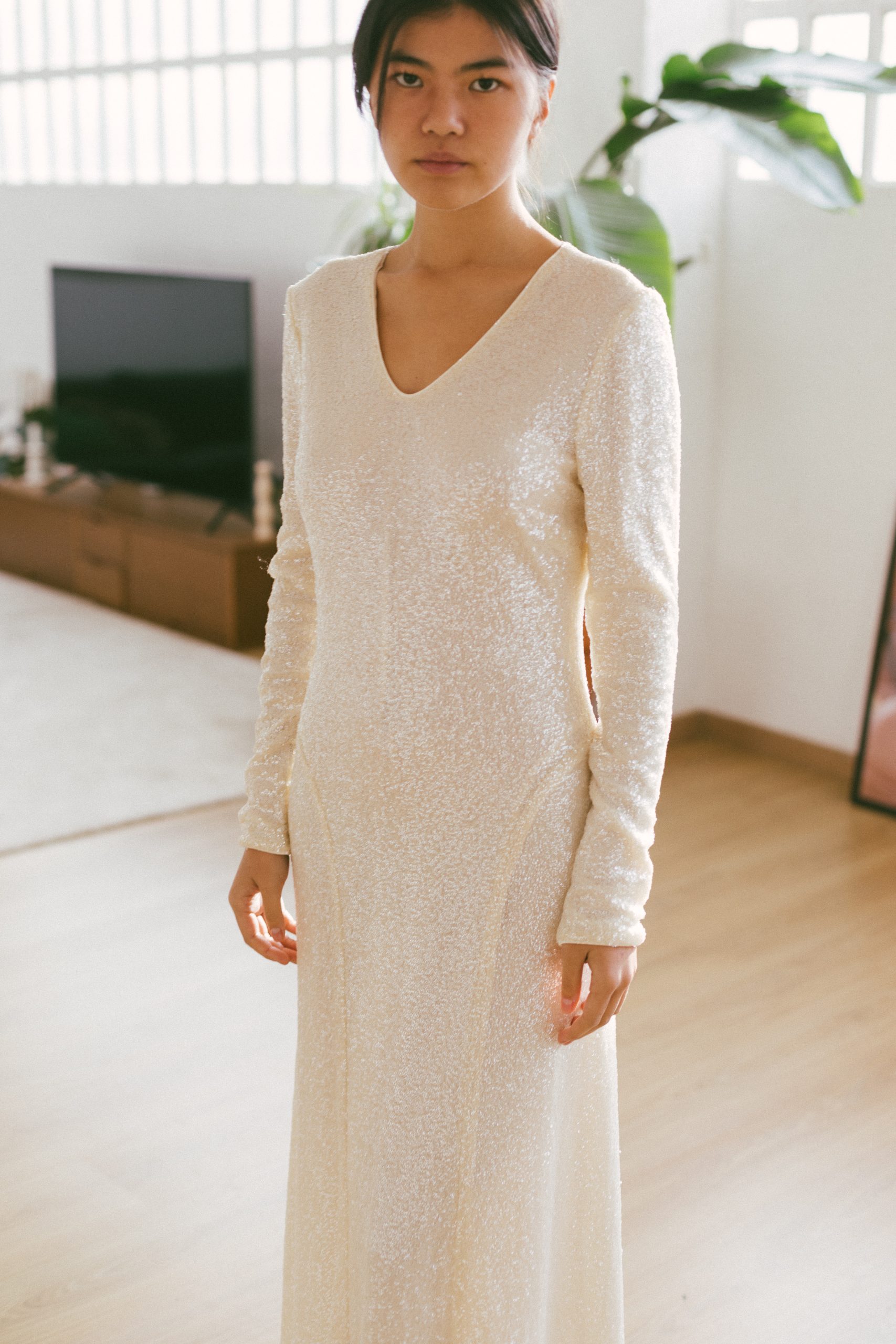 Vestido largo lentejuelas blancas manga larga-36-TWINSET