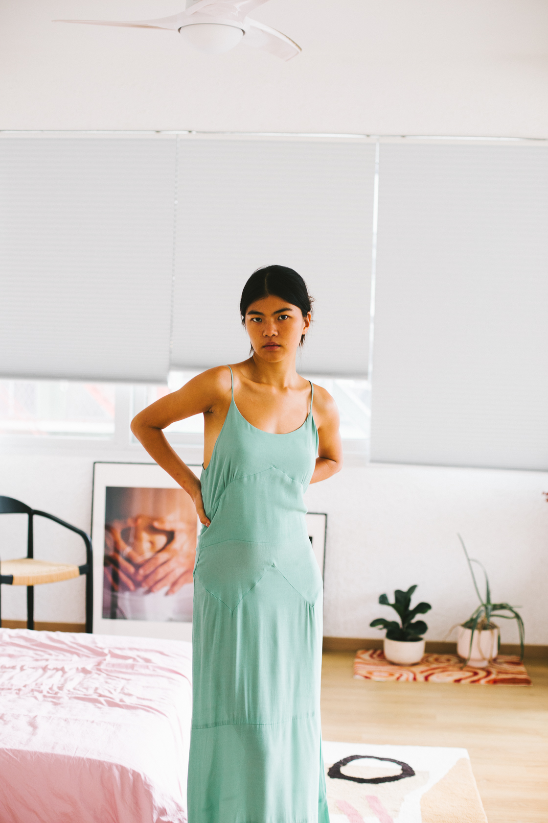 Vestido largo verde agua de tirantes- S- Valentina Garí