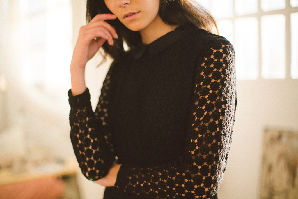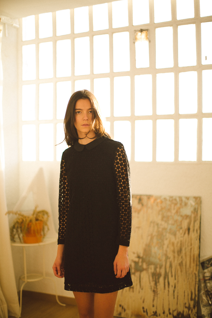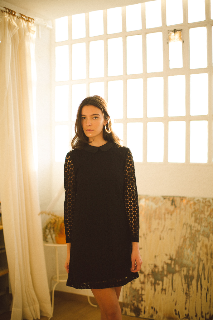 vestido negro encaje con cuello de & other stories