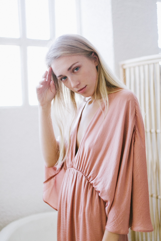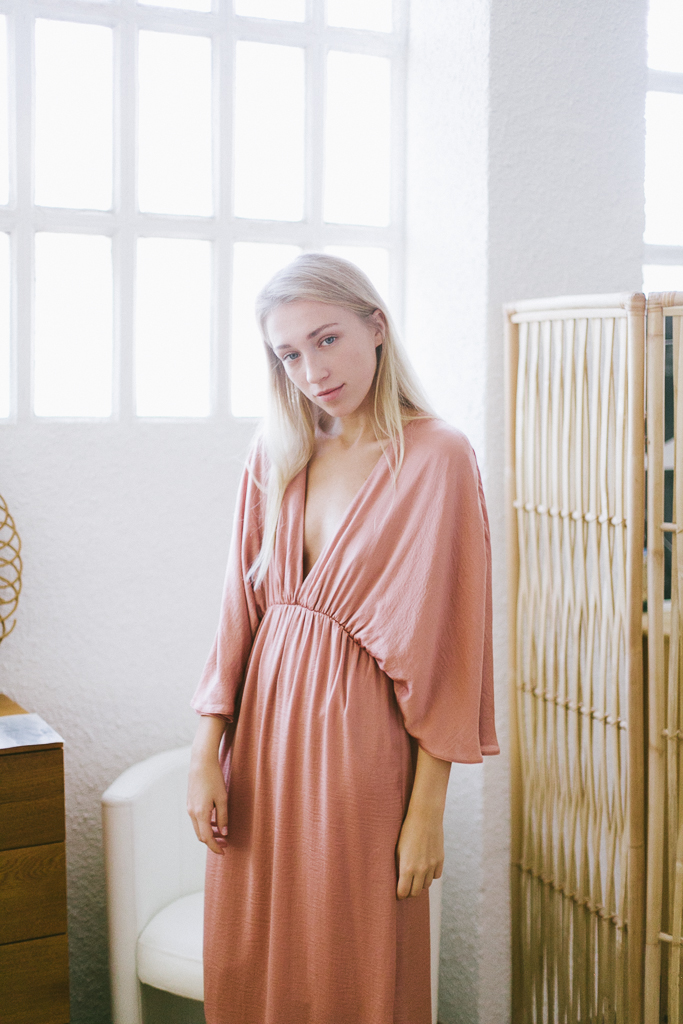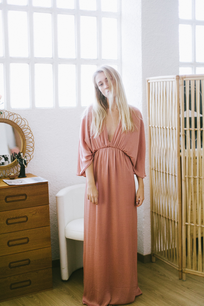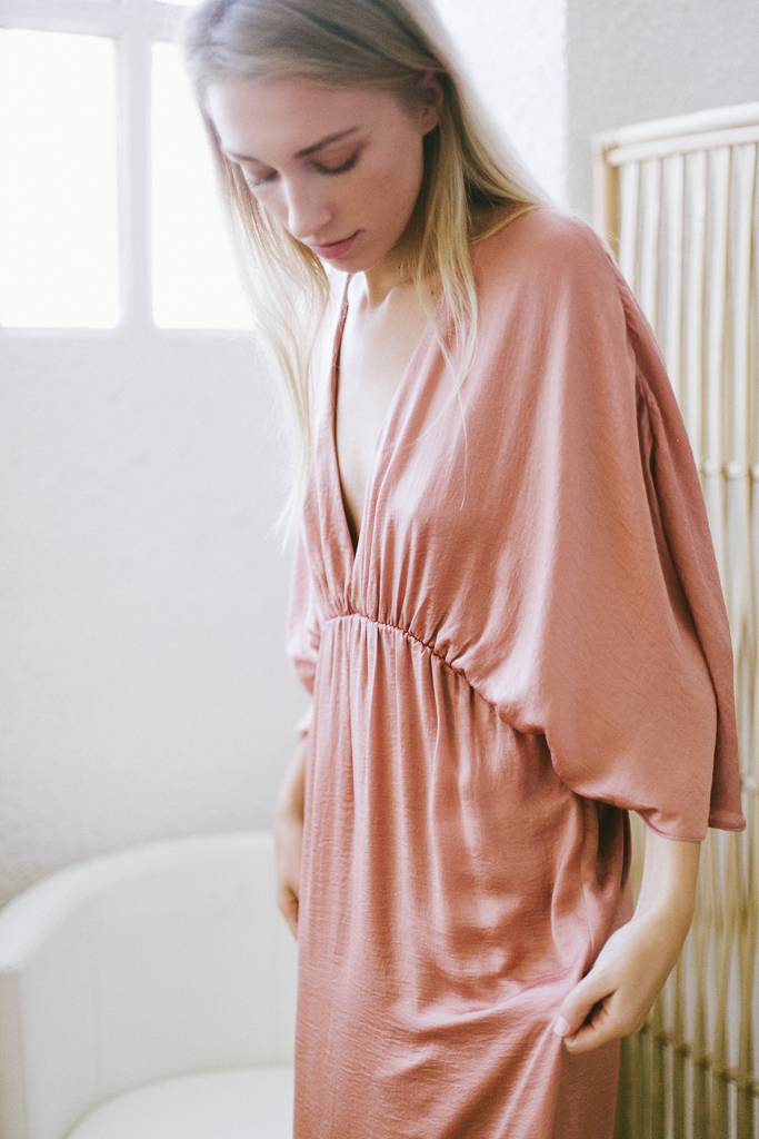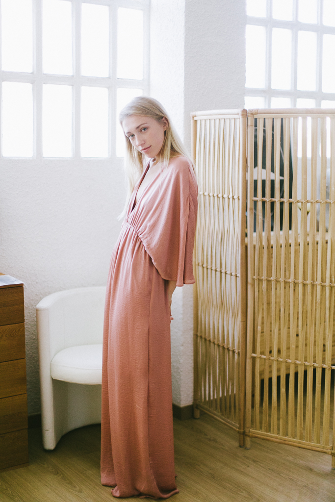 vestido satén rosa con mangas mariposa